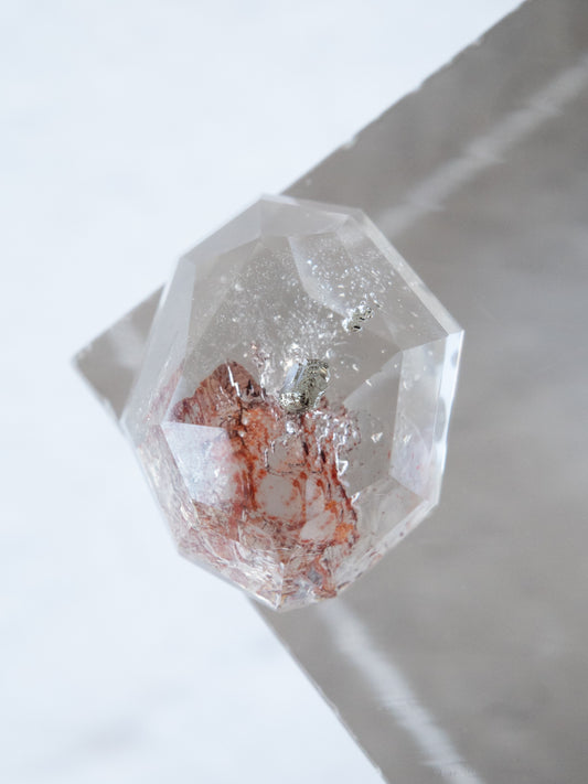 こちらは手磨り研磨師の大城かん奈さんがカットを担当してくださっている、通称『カンナカットシリーズ』。職人としての熟練した技術だけでなく、磨きながら石の個性と対話をし、一つ一つにフォーカスして魅力を引き出す素晴らしいセンスを持ち合わせた研磨師さんです。マニュアル化された研磨方法に囚われないダイナミックなカットは、唯一無二のモダンなフォルムがを生み出します。