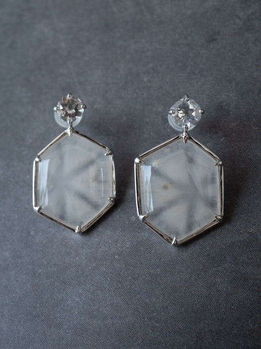 雪の結晶トラピッチェクォーツのスタッドピアス