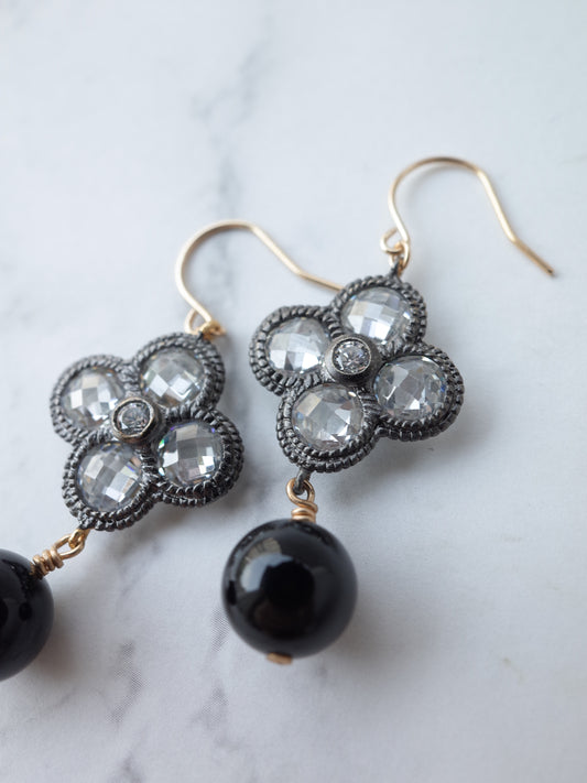 アメシストとロッククリスタルのバイカラーピアス - 1