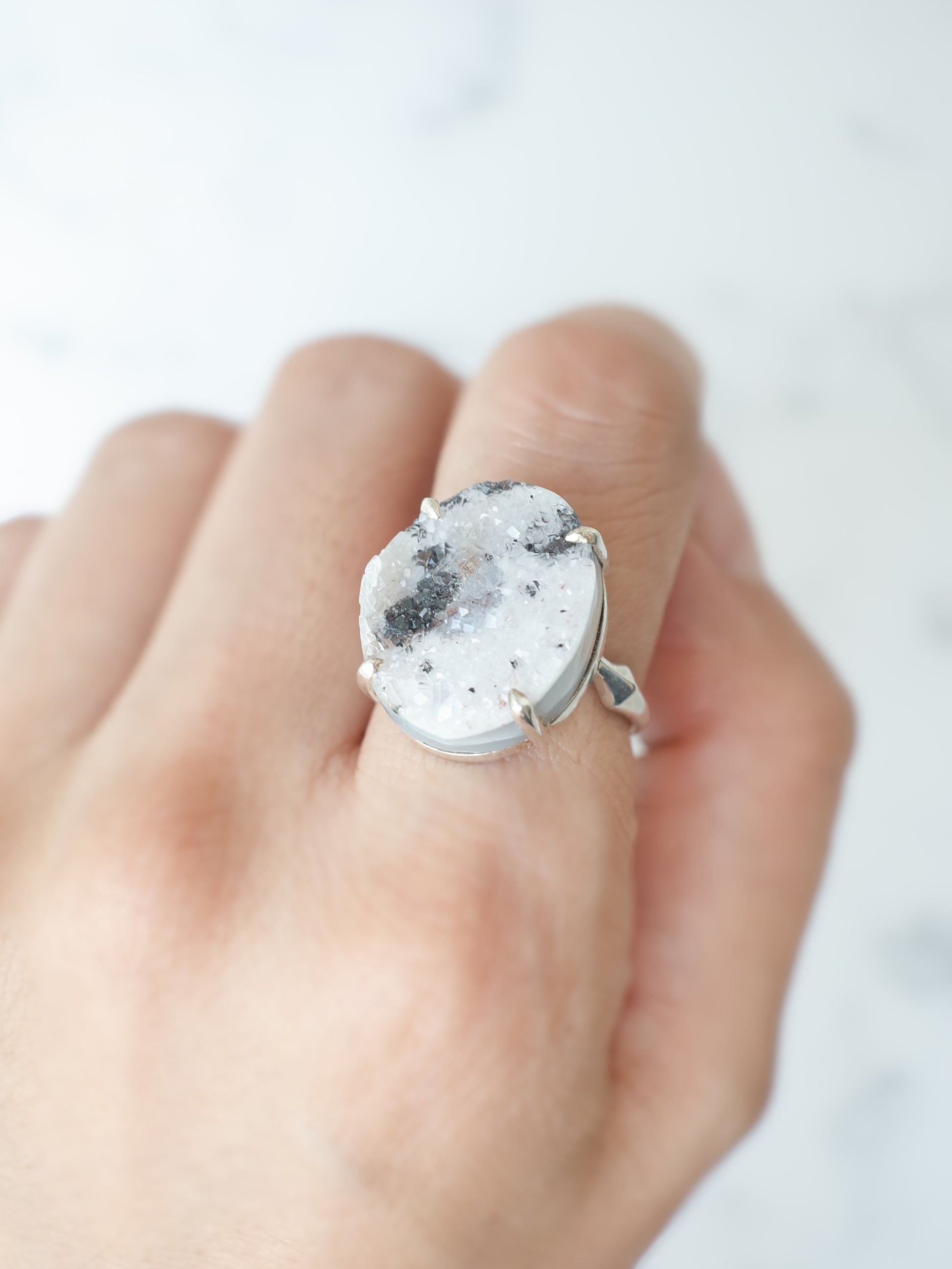 自然の "キラキラ" をそまま生かしてカットされたドゥルジーアゲートのリング。