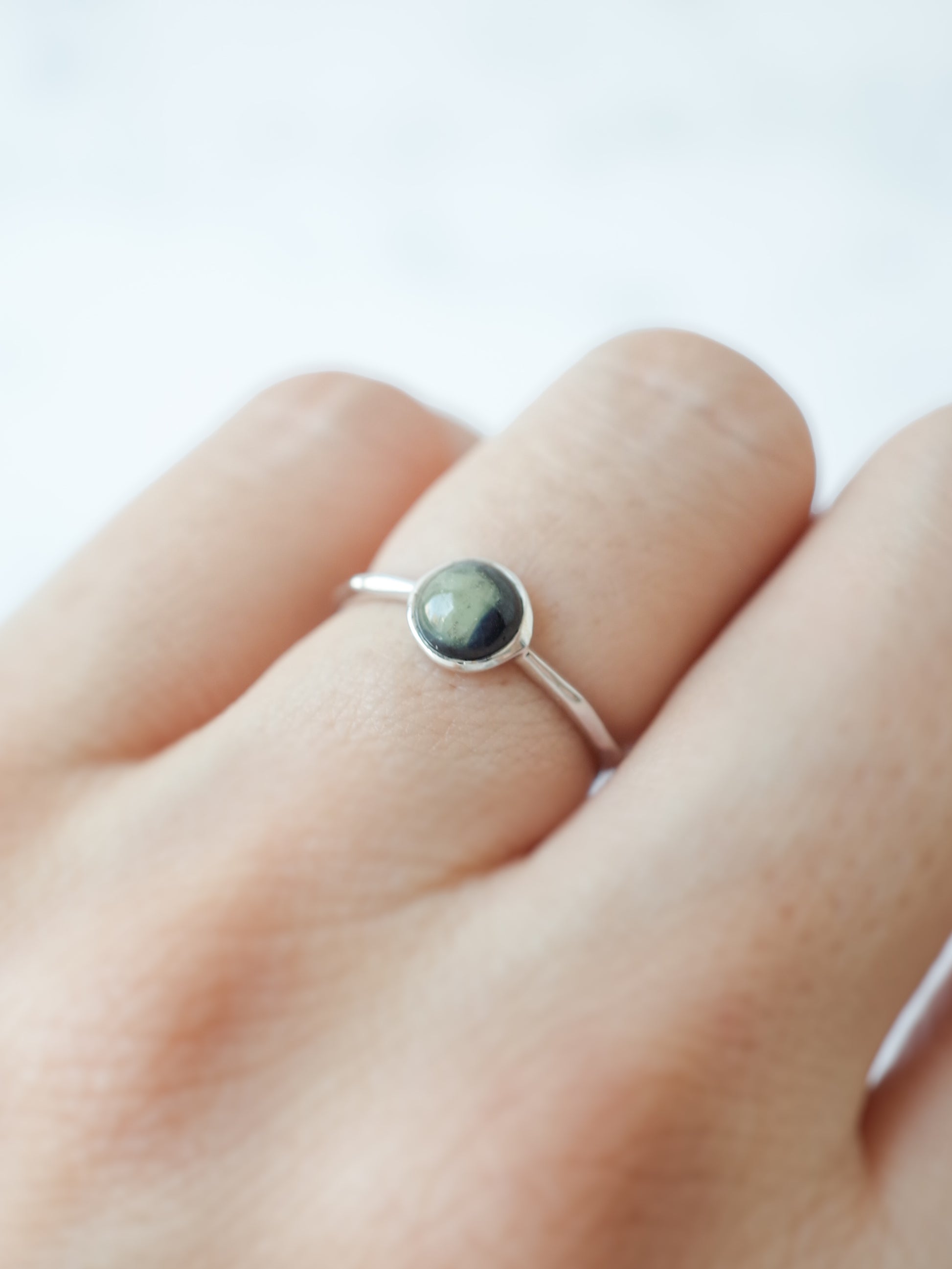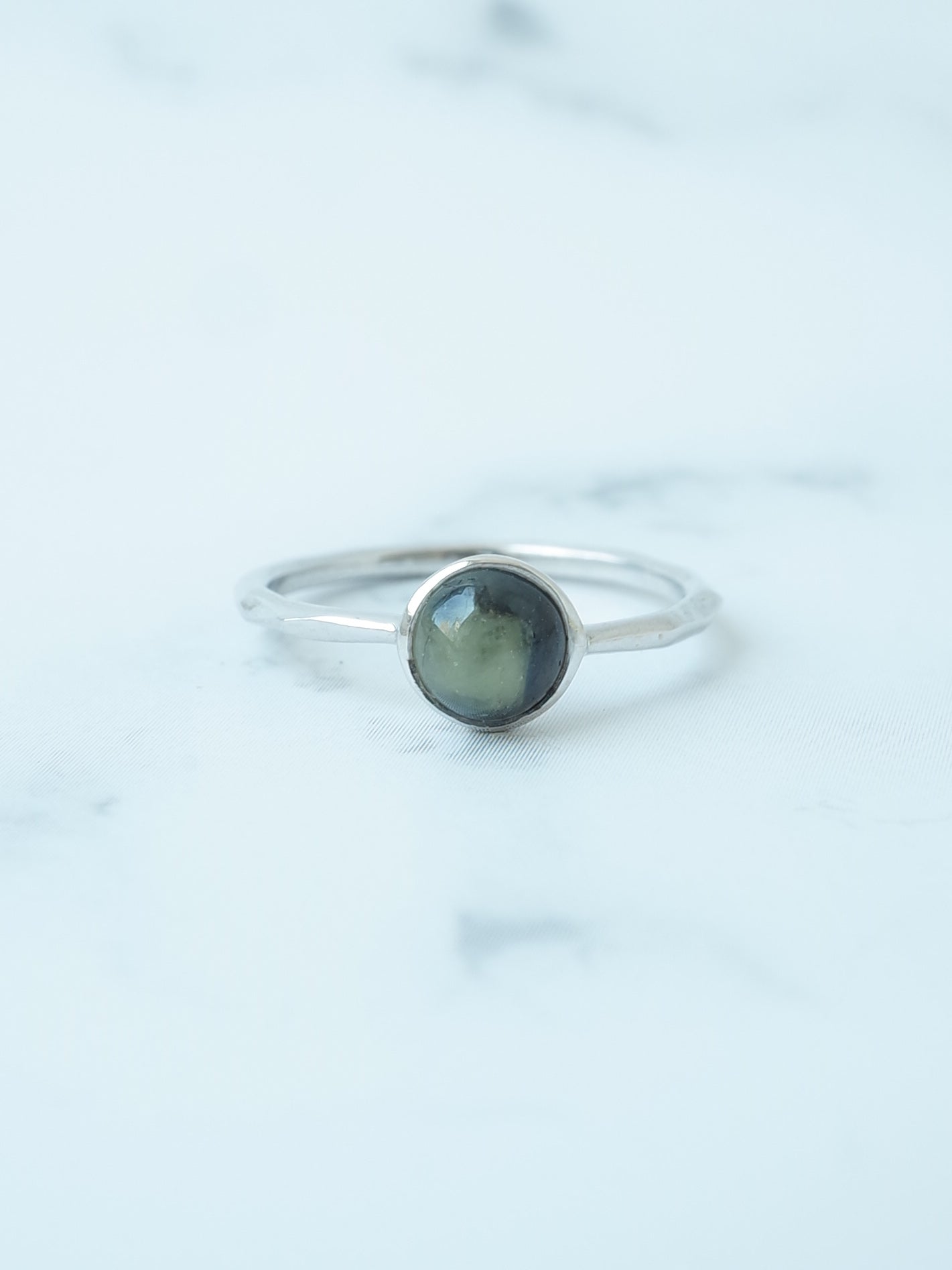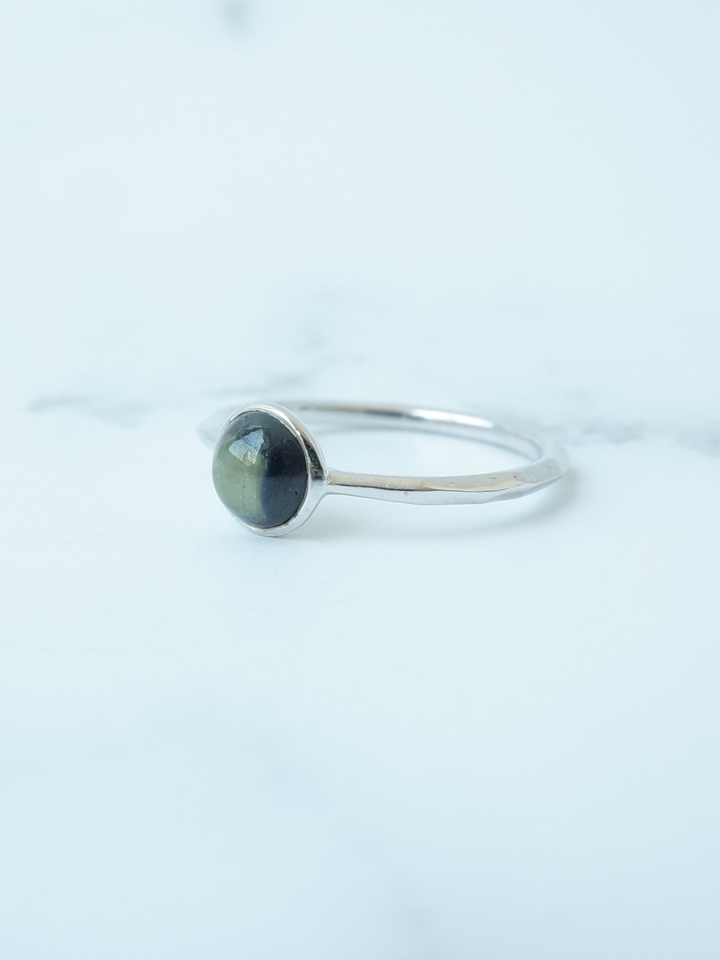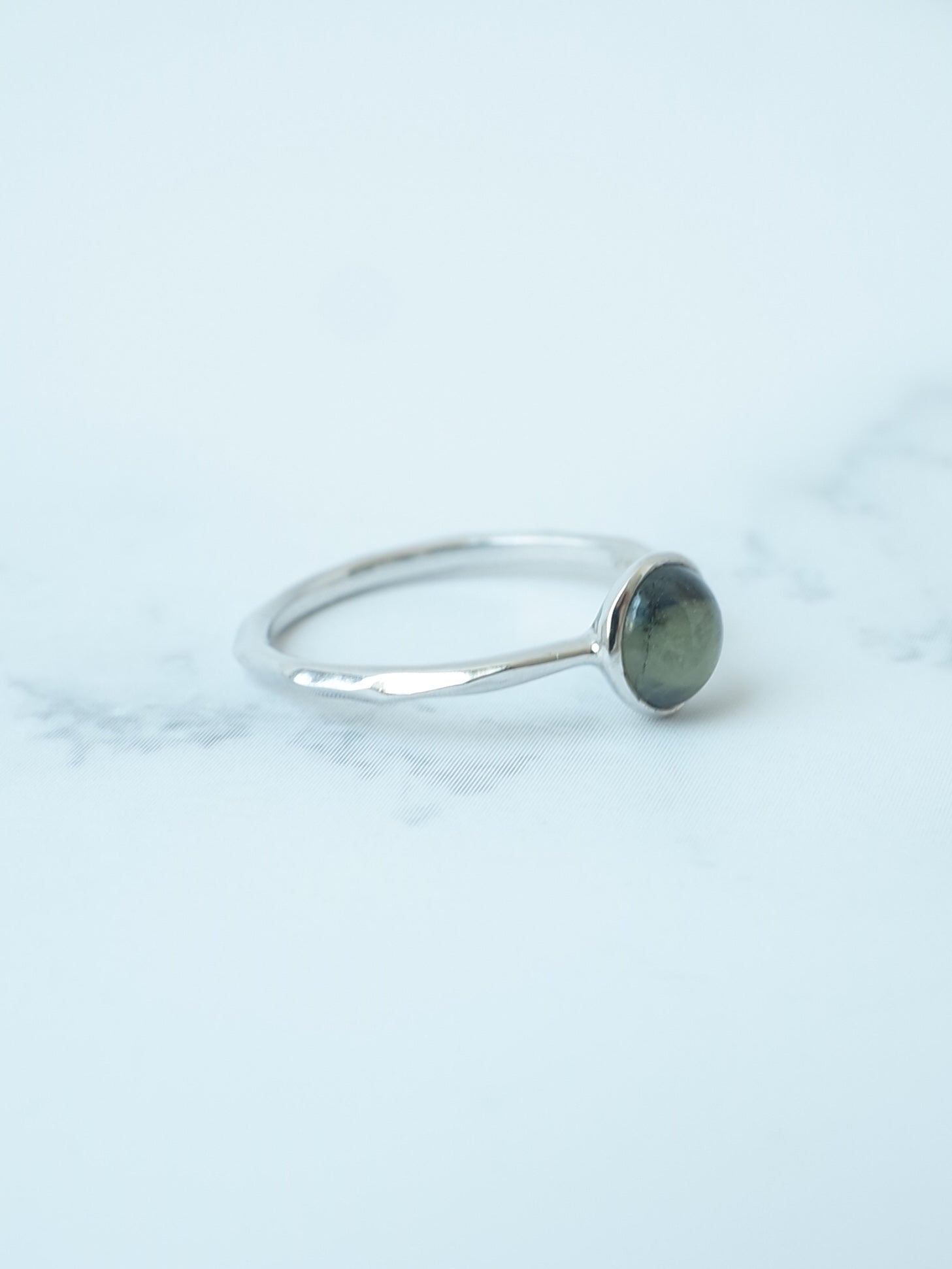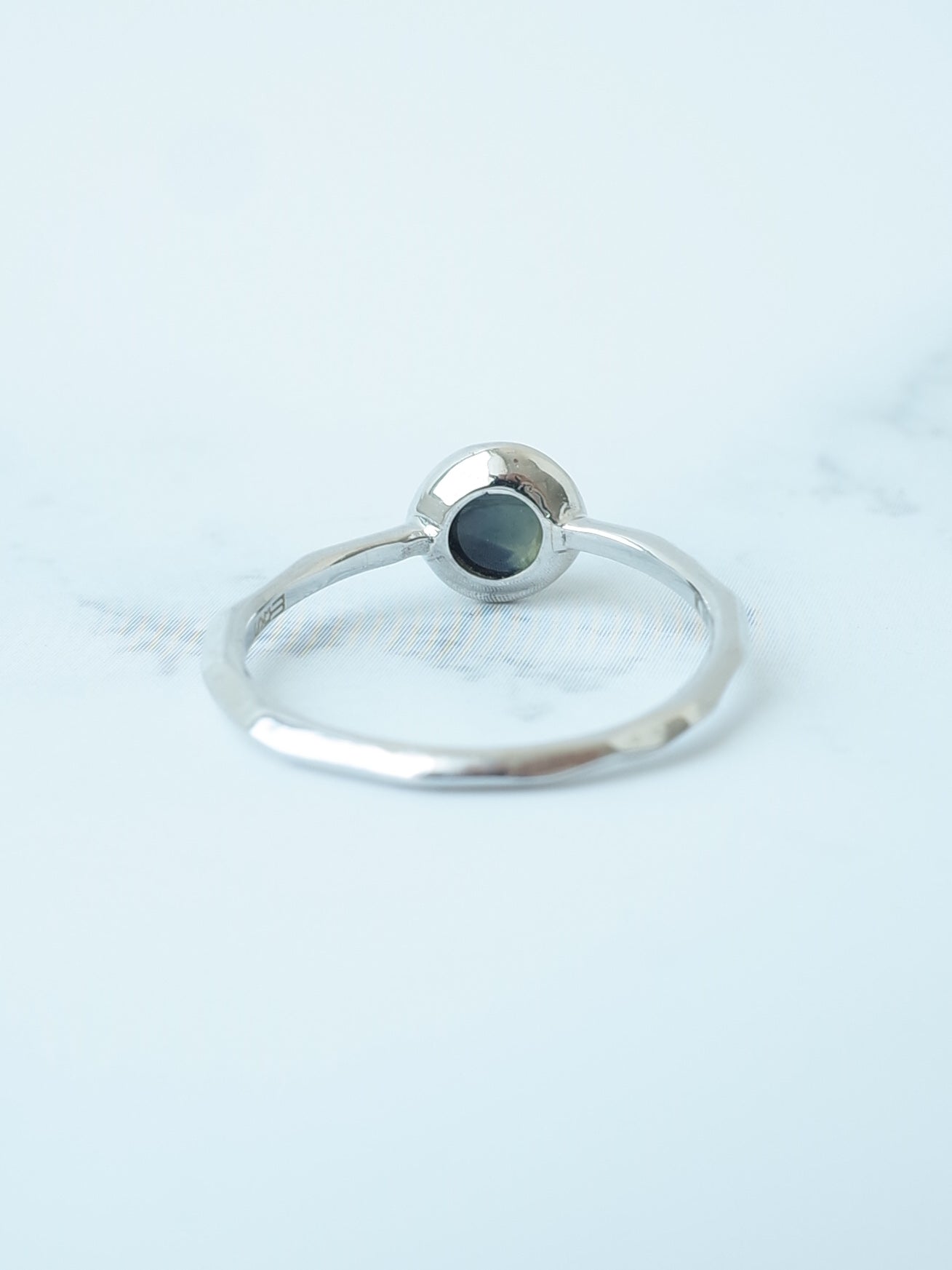 漆黒の夜空と闇を照らす月をイメージさせるとるようなバイカラーサファイア。MOEMI SUGIMURA ではこの宝石を 『Midnight Moon Sapphire』 と名付けて、ジュエリーへと仕立ててきました。夜空を閉じ込めたようなリングを是非お手元でお楽し見ください。