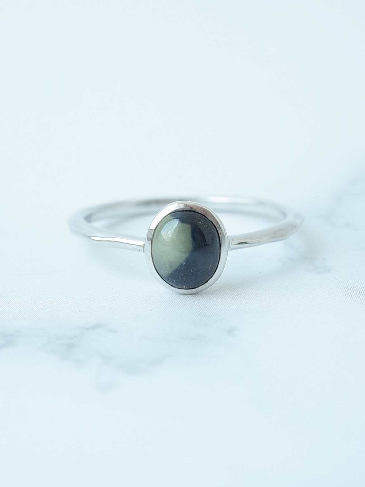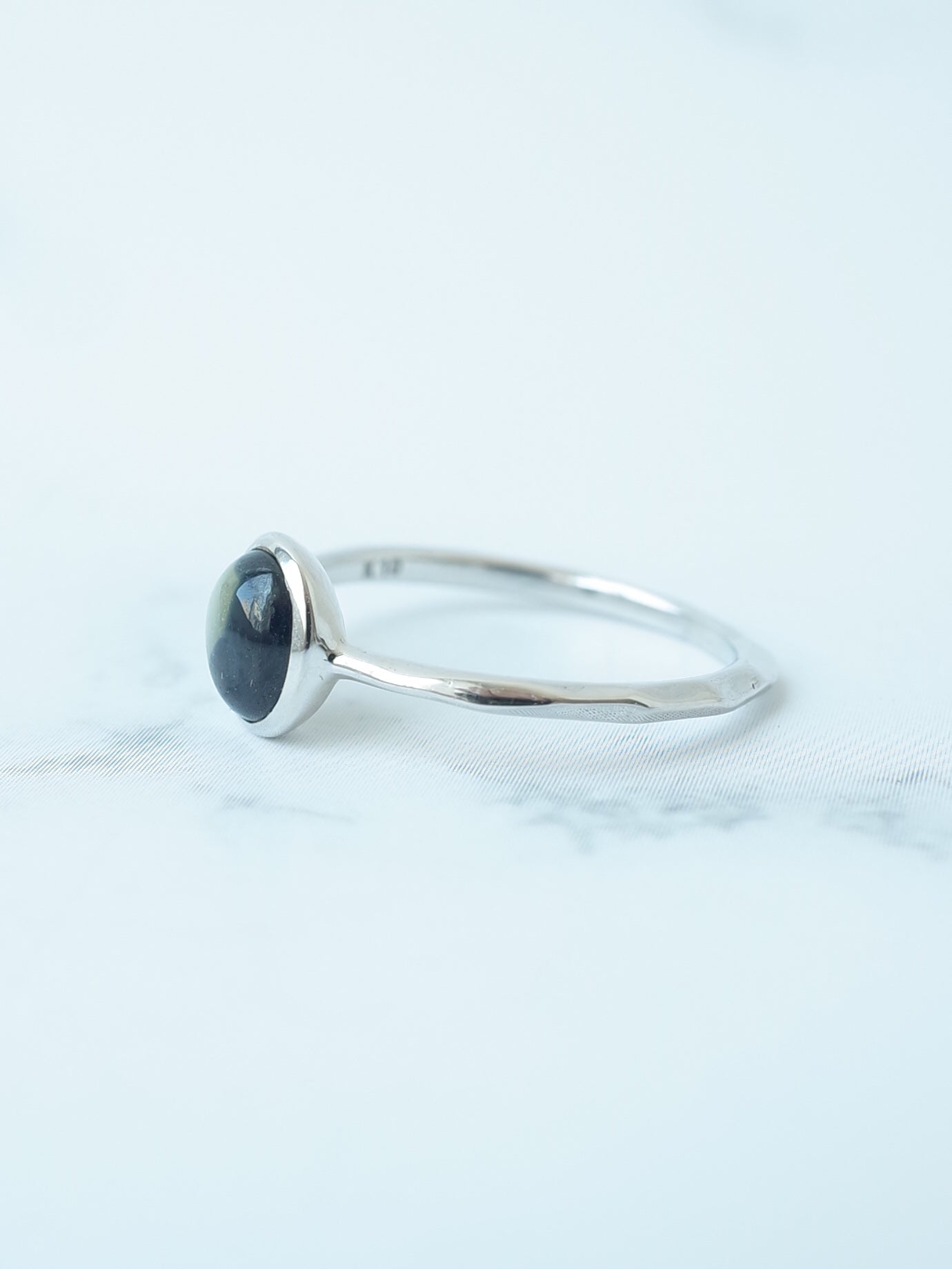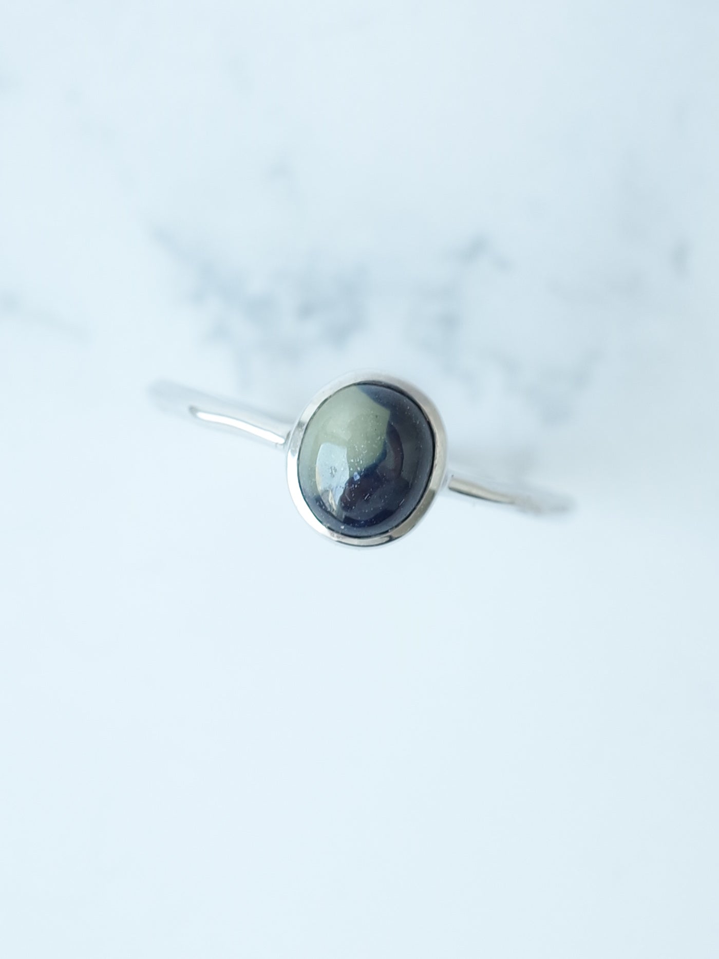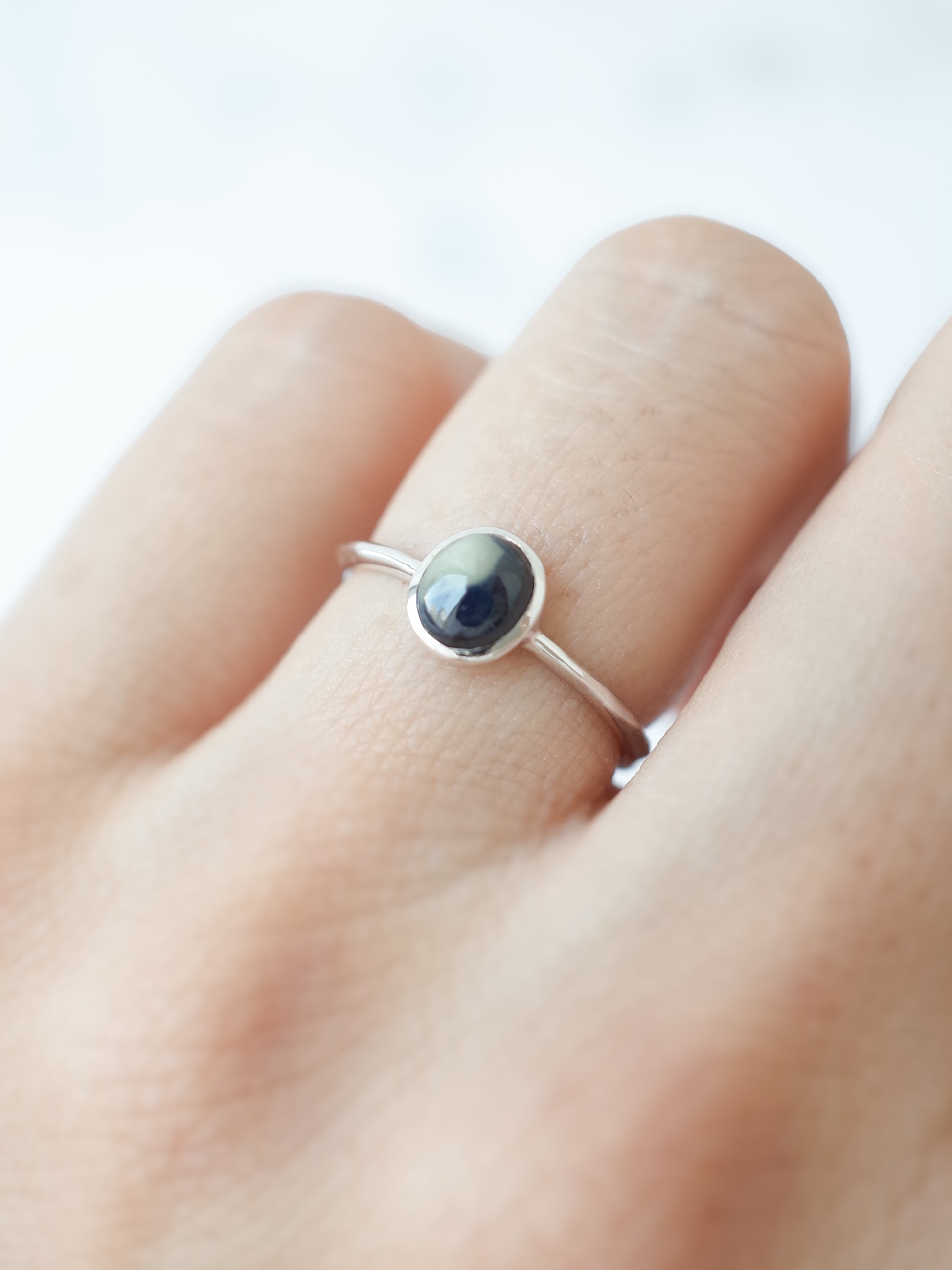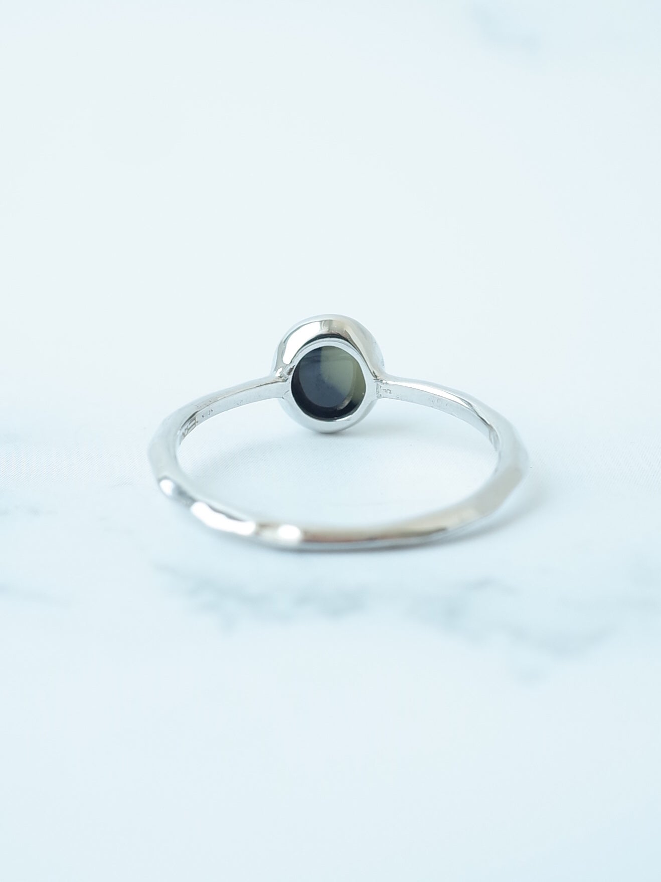 漆黒の夜空と闇を照らす月をイメージさせるとるようなバイカラーサファイア。MOEMI SUGIMURA ではこの宝石を 『Midnight Moon Sapphire』 と名付けて、ジュエリーへと仕立ててきました。夜空を閉じ込めたようなリングを是非お手元でお楽し見ください。
