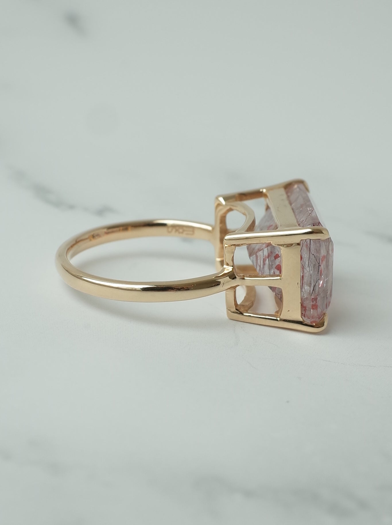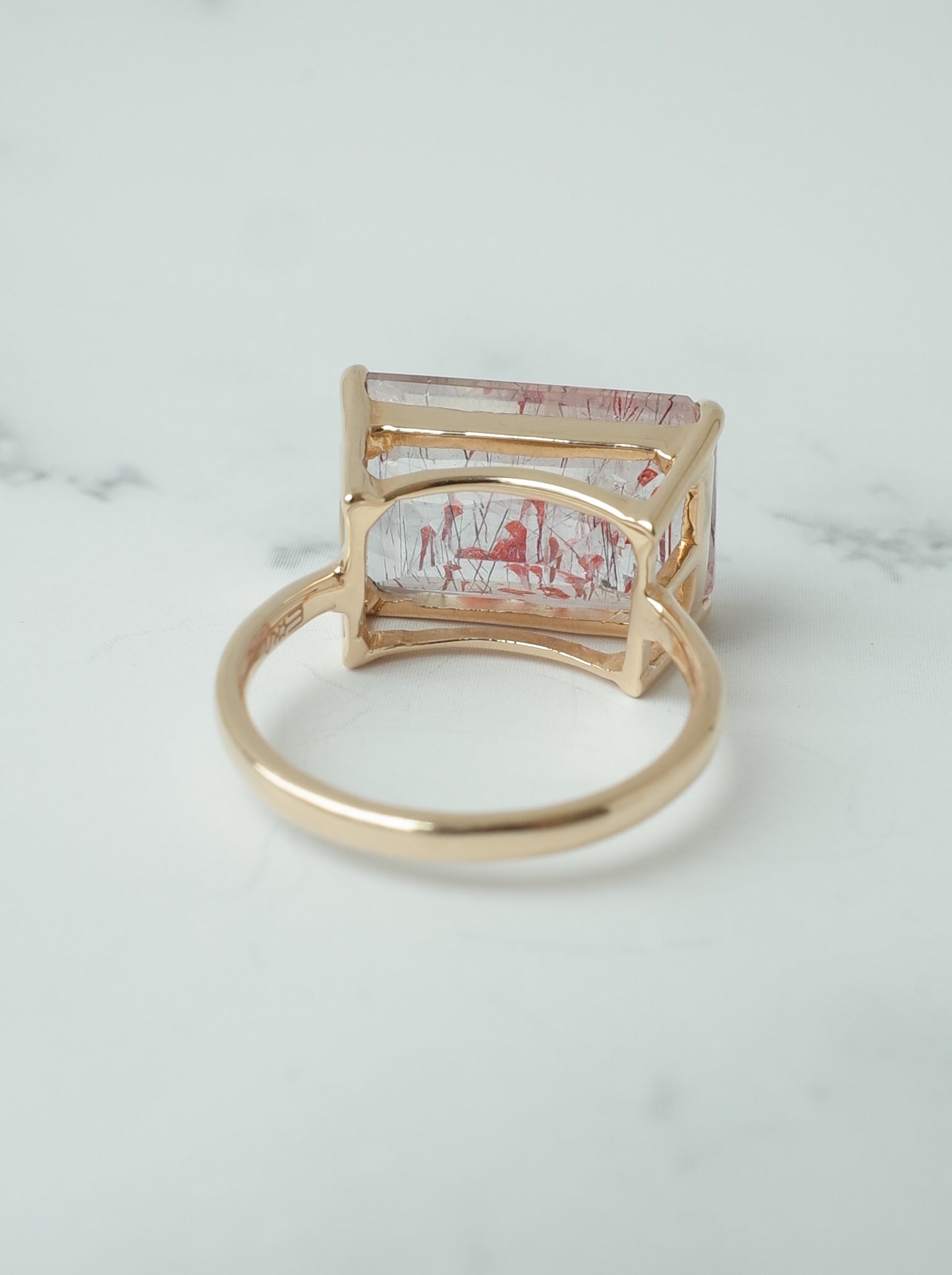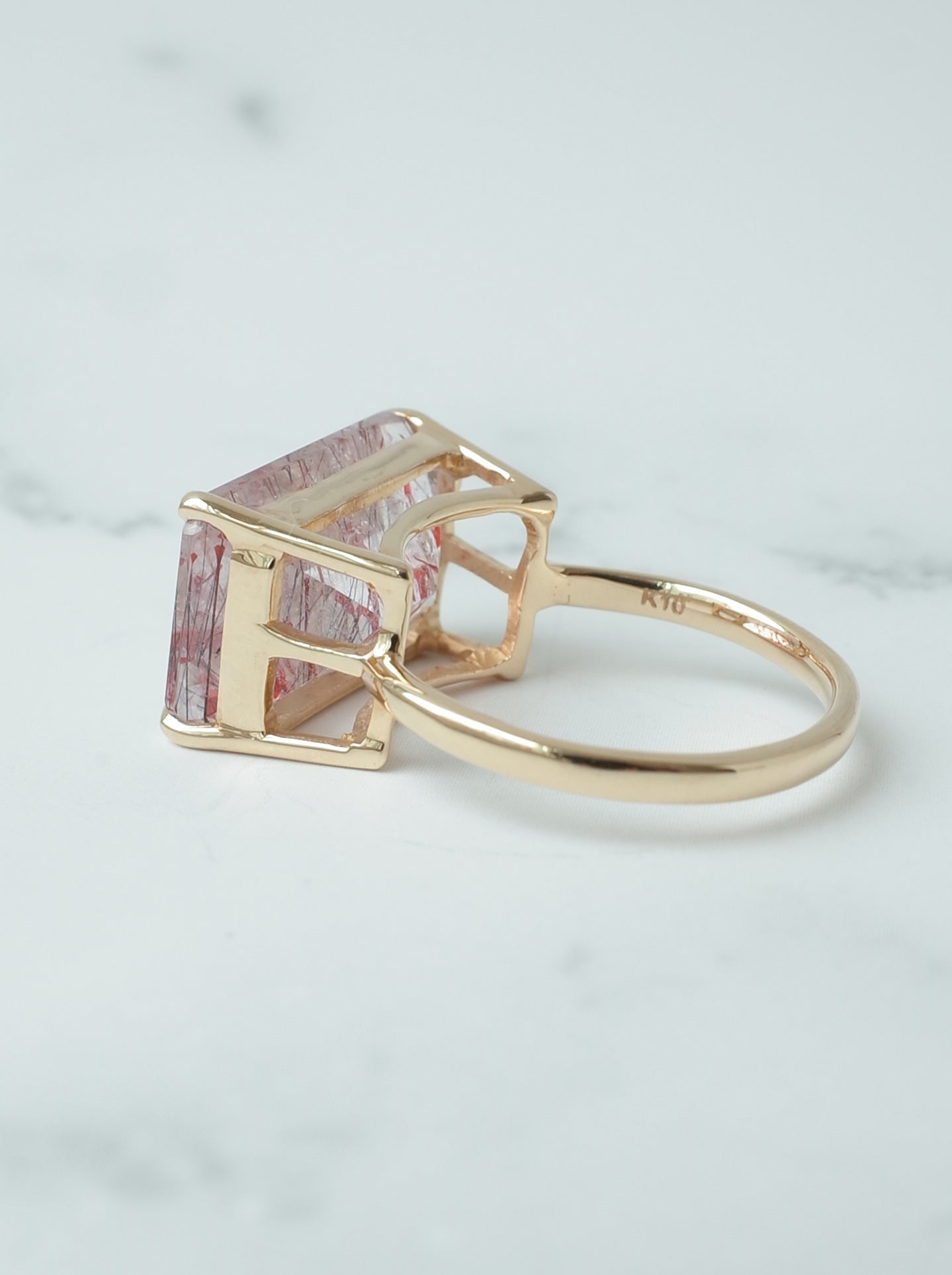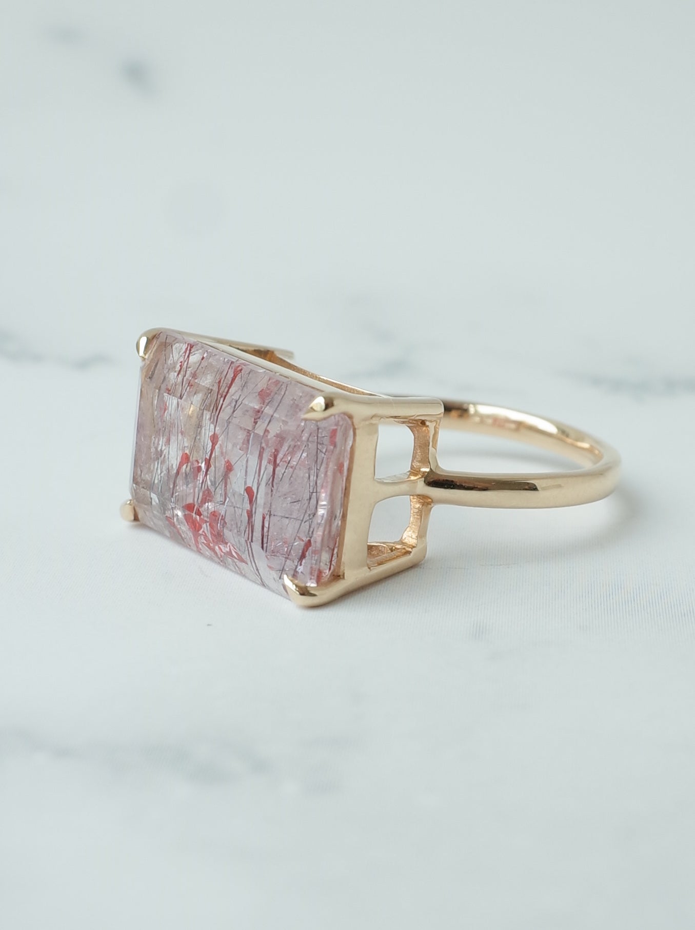 クォーツに内包された真っ赤なレピドクロサイトが宙を舞うような姿が魅力の一点。MOEMI SUGIMURA で人気の天然石です。ぜひお手元でキラキラとさせながらお楽しみください。