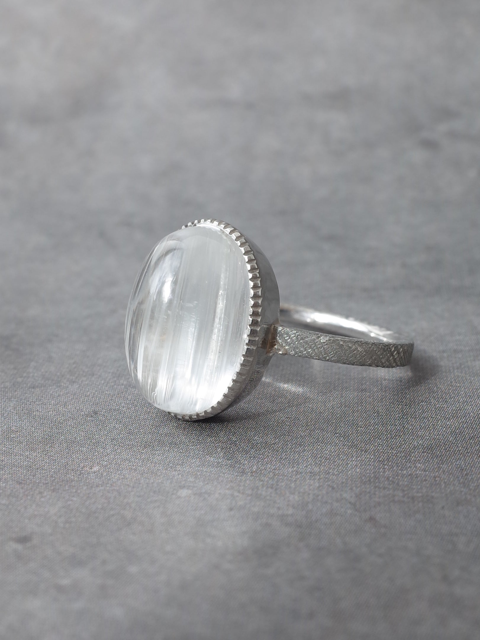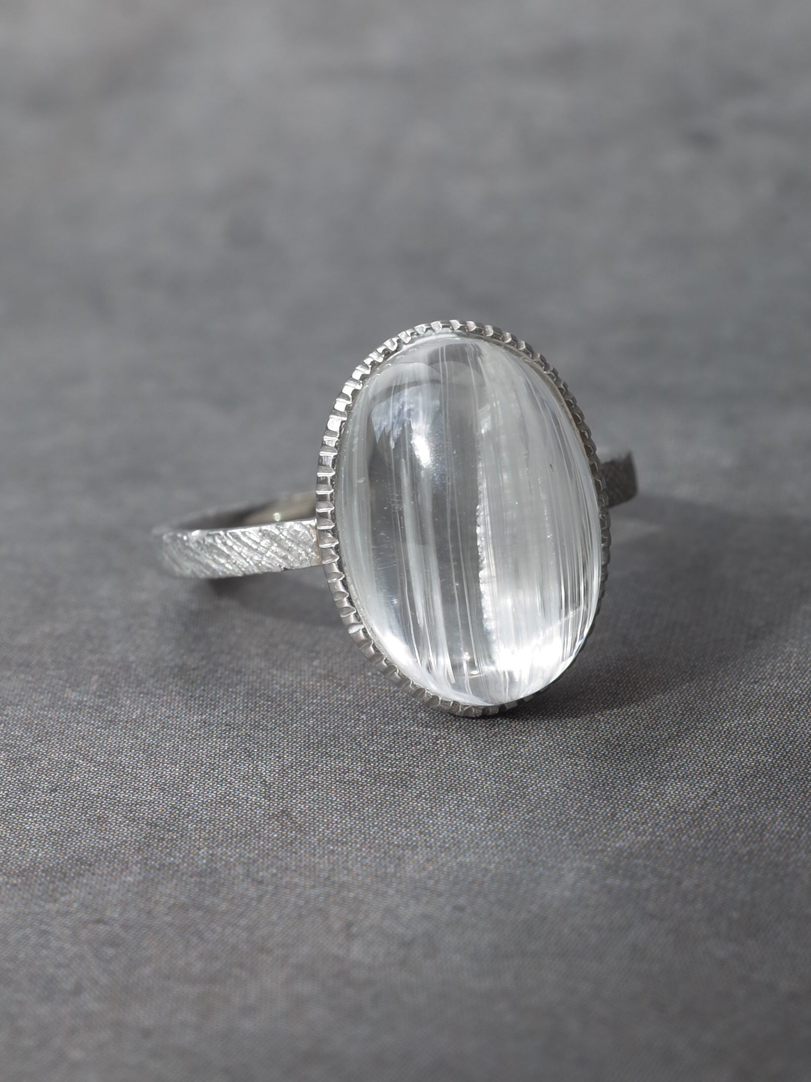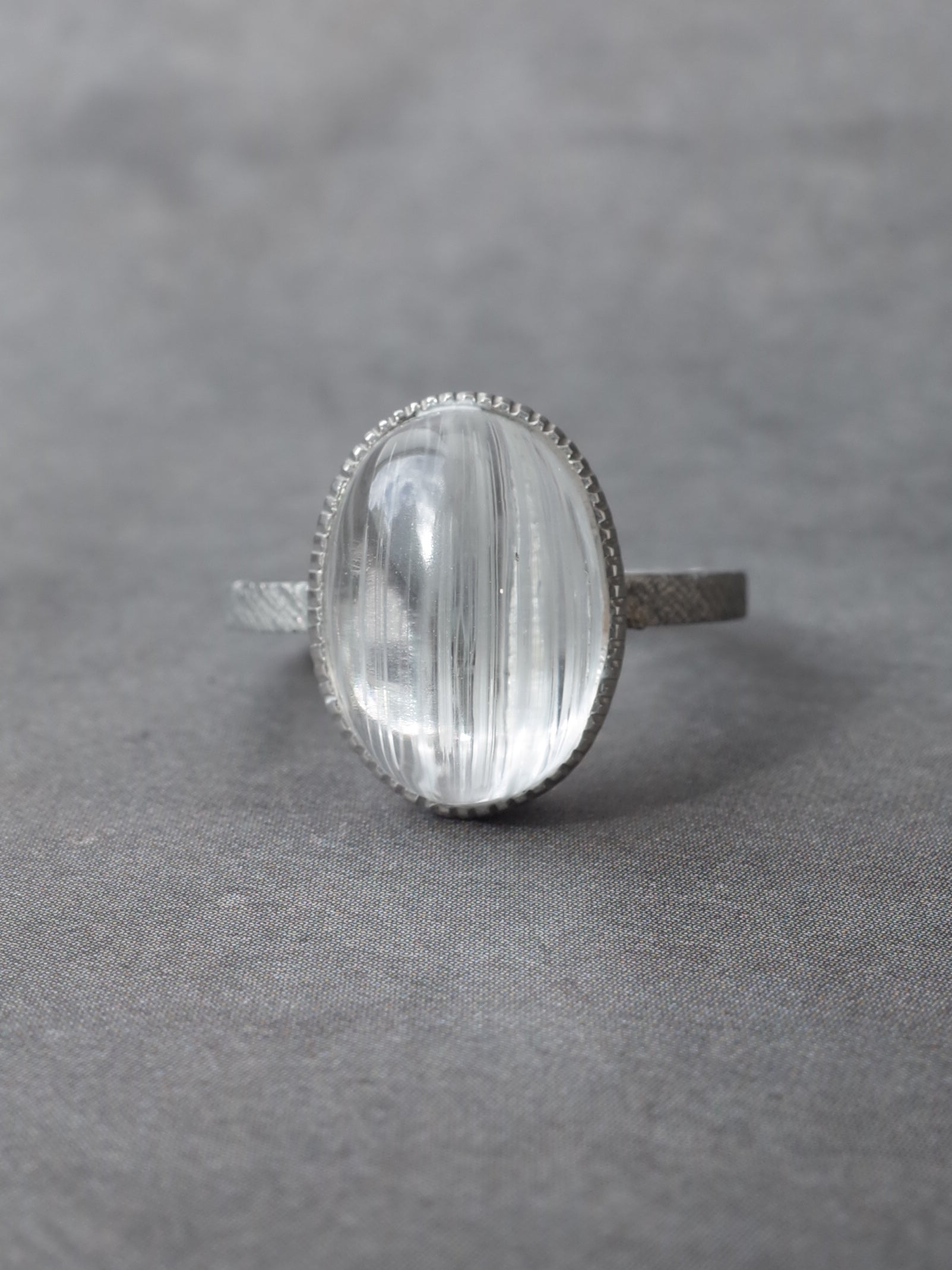 ひんやりと冷たい透明感と光のラインが魅力のキャッツアイトーパーズ。光を当てるとチューブ状のインクルージョンに反射して一本の光のラインが見られます。クォーツよりも硬度が高いため光沢も強く、神秘的で美しい一点です。
