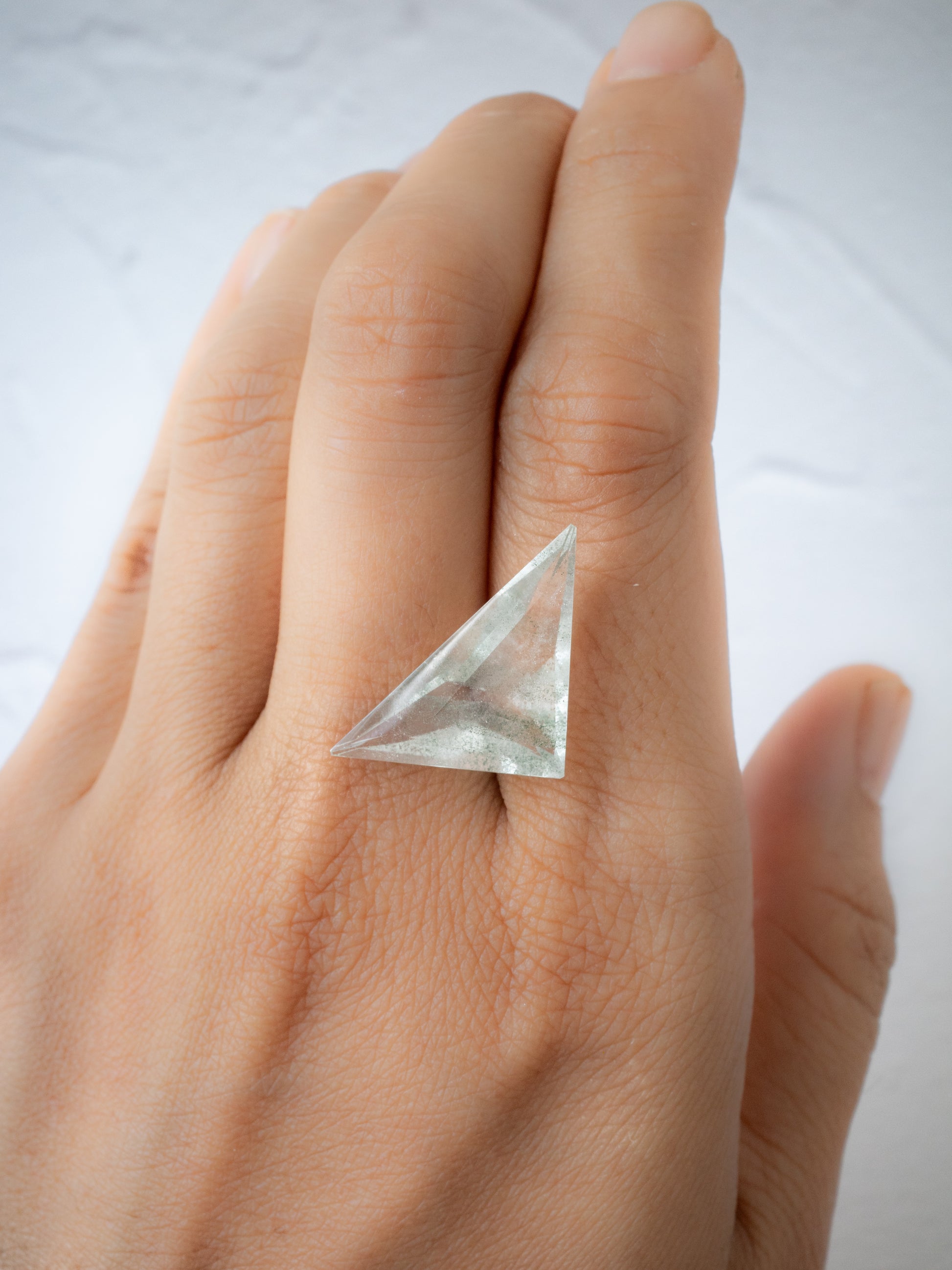 こちらは手磨り研磨師の大城かん奈さんがカットを担当してくださっている、通称『カンナカットシリーズ』。職人としての熟練した技術だけでなく、磨きながら石の個性と対話をし、一つ一つにフォーカスして魅力を引き出す素晴らしいセンスを持ち合わせた研磨師さんです。マニュアル化された研磨方法に囚われないダイナミックなカットは、唯一無二のモダンなフォルムがを生み出します。