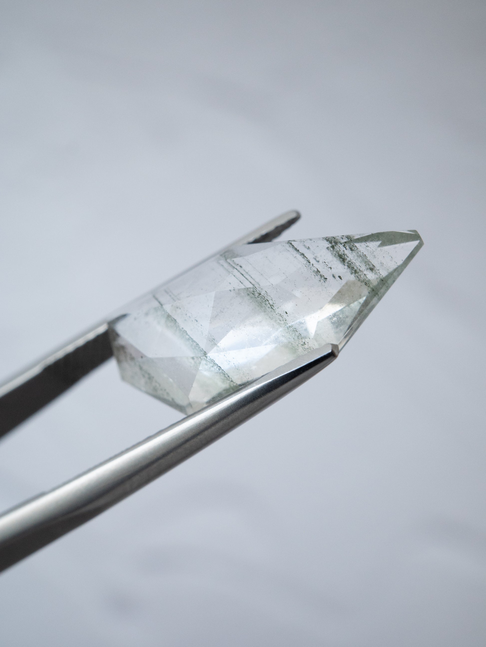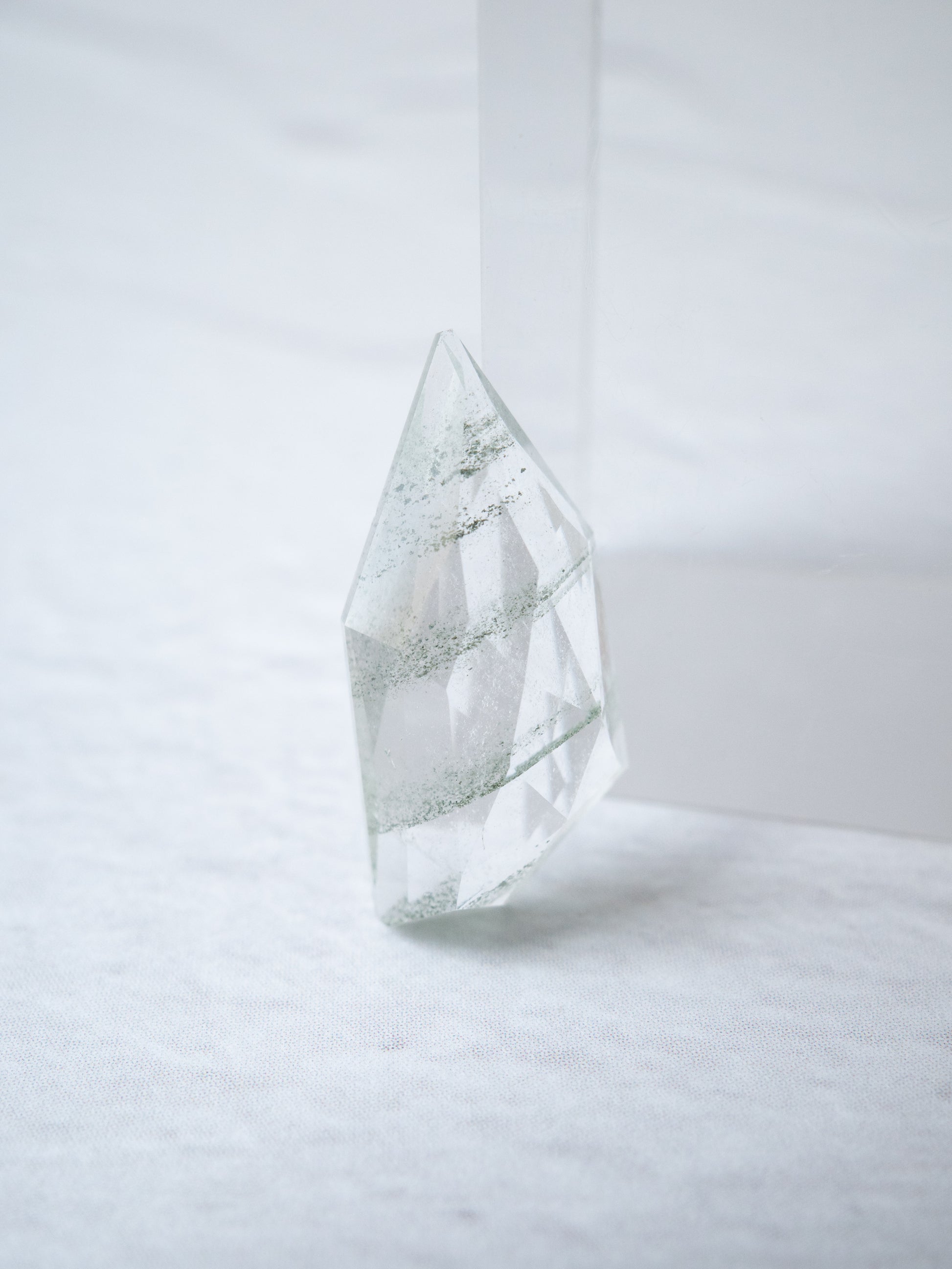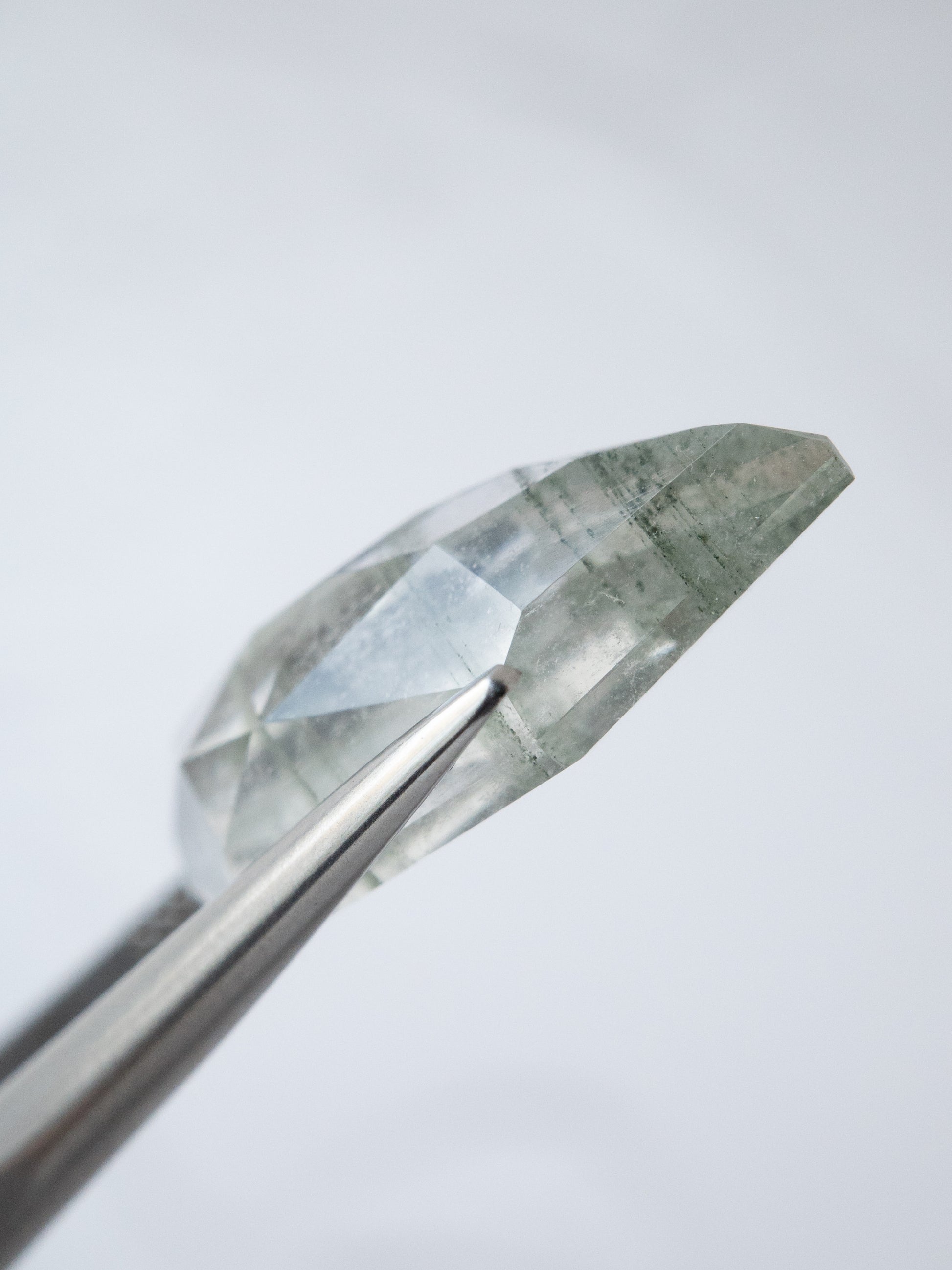 山梨県甲府市に伝統的に伝わる「手磨り」という技法は、高度な器具を使わずに手先の感覚のみで石を研磨していく昔ながらの研磨方法。計算された機械的なカットよりも臨機応変な対応ができるため、インクルージョンの魅力を最大限引き出せる手法でもあります。
