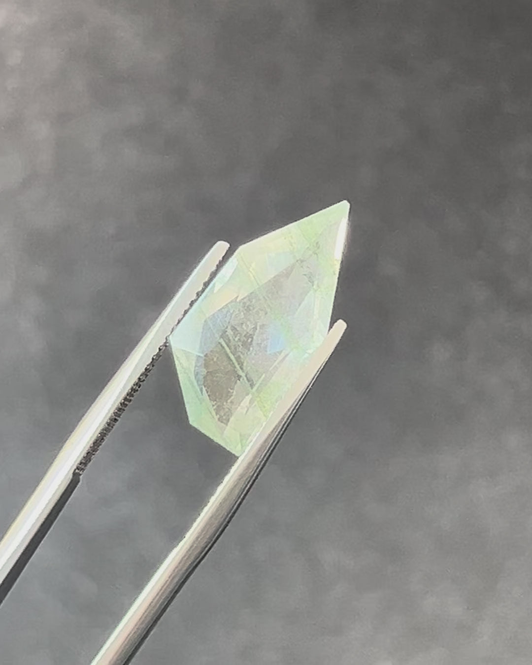 こちらは手磨り研磨師の大城かん奈さんがカットを担当してくださっている、通称『カンナカットシリーズ』。職人としての熟練した技術だけでなく、磨きながら石の個性と対話をし、一つ一つにフォーカスして魅力を引き出す素晴らしいセンスを持ち合わせた研磨師さんです。マニュアル化された研磨方法に囚われないダイナミックなカットは、唯一無二のモダンなフォルムがを生み出します。