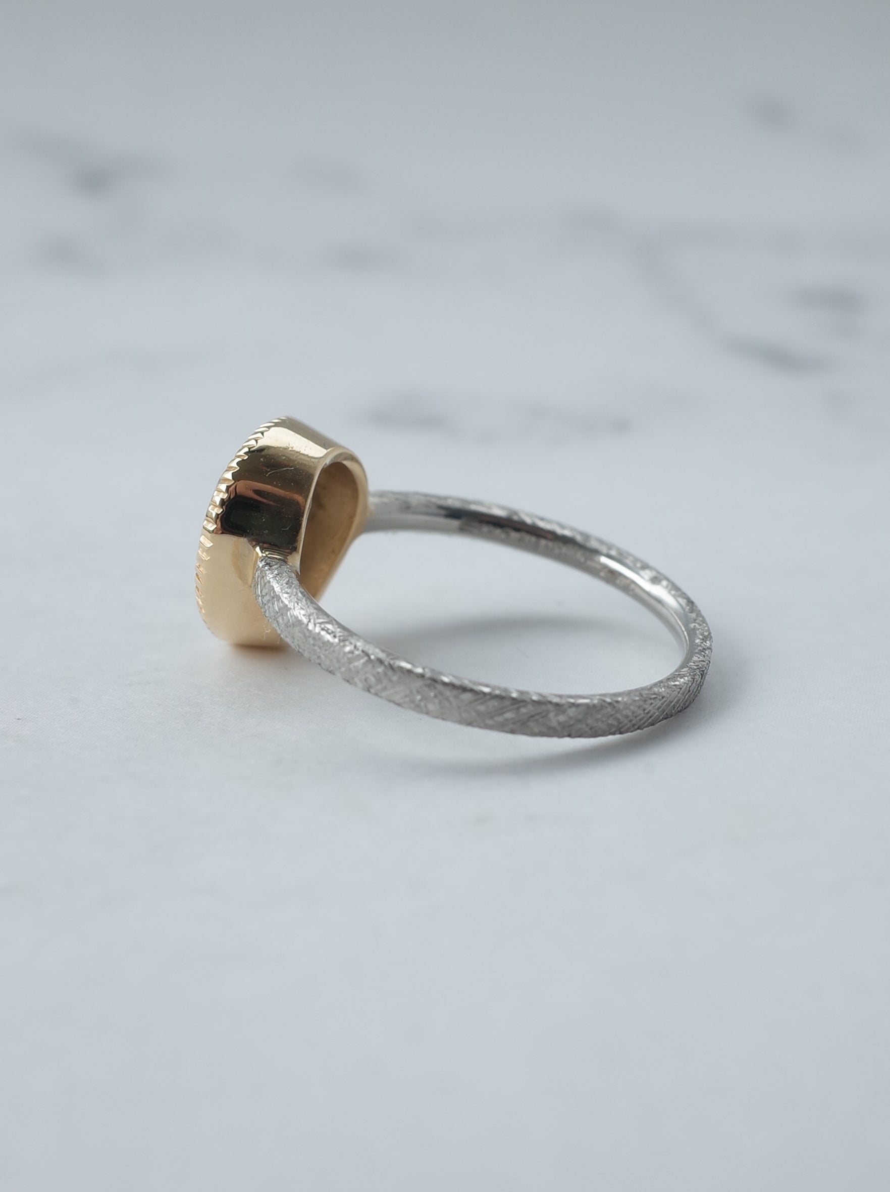 地金はK18YG/Pt950 のコンビネーションになっていますので、どちらの色味ともコーディネートしやすくお洒落に見せてくれます。