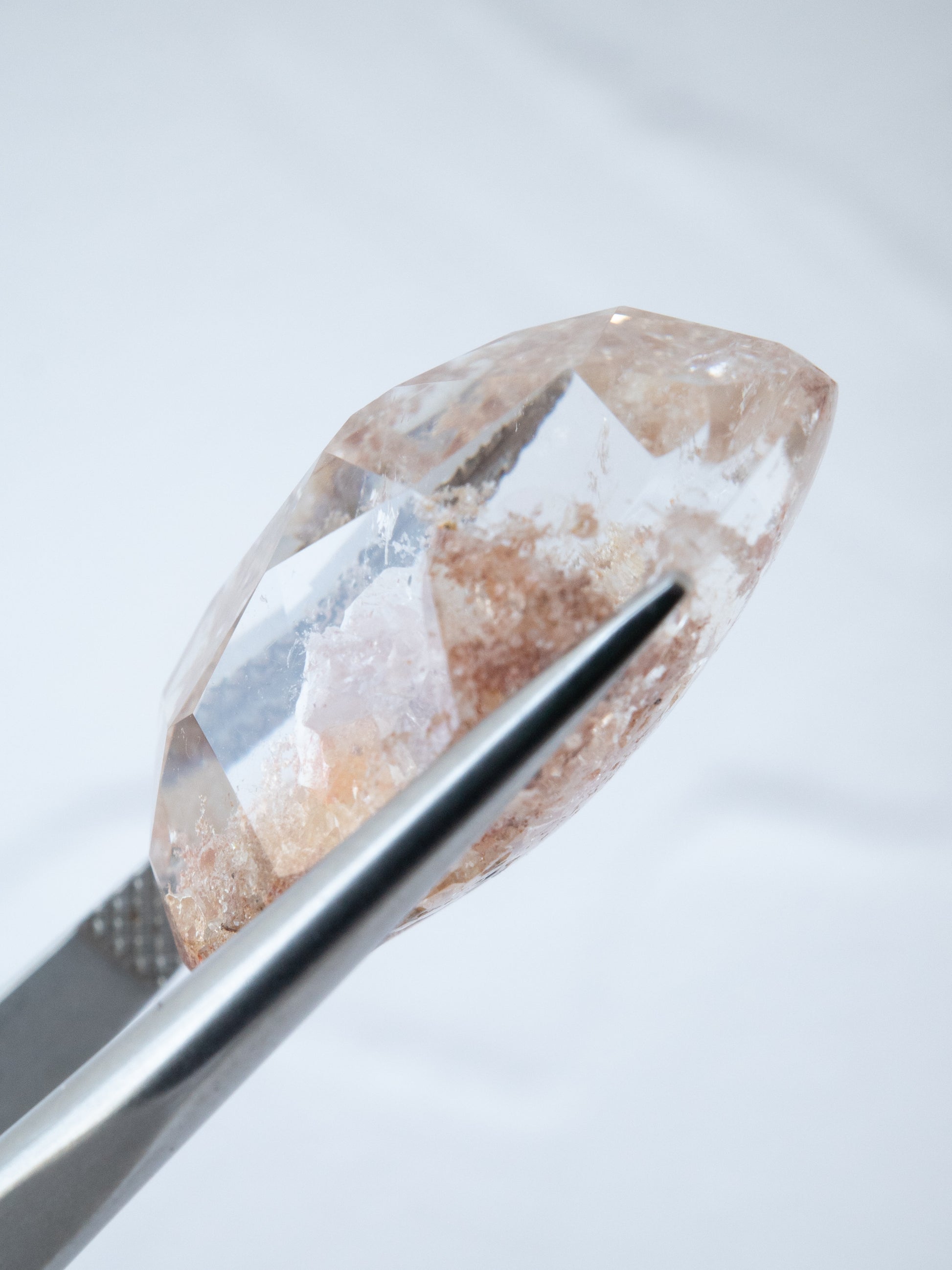 山梨県甲府市に伝統的に伝わる「手磨り」という技法は、高度な器具を使わずに手先の感覚のみで石を研磨していく昔ながらの研磨方法。計算された機械的なカットよりも臨機応変な対応ができるため、インクルージョンの魅力を最大限引き出せる手法でもあります。