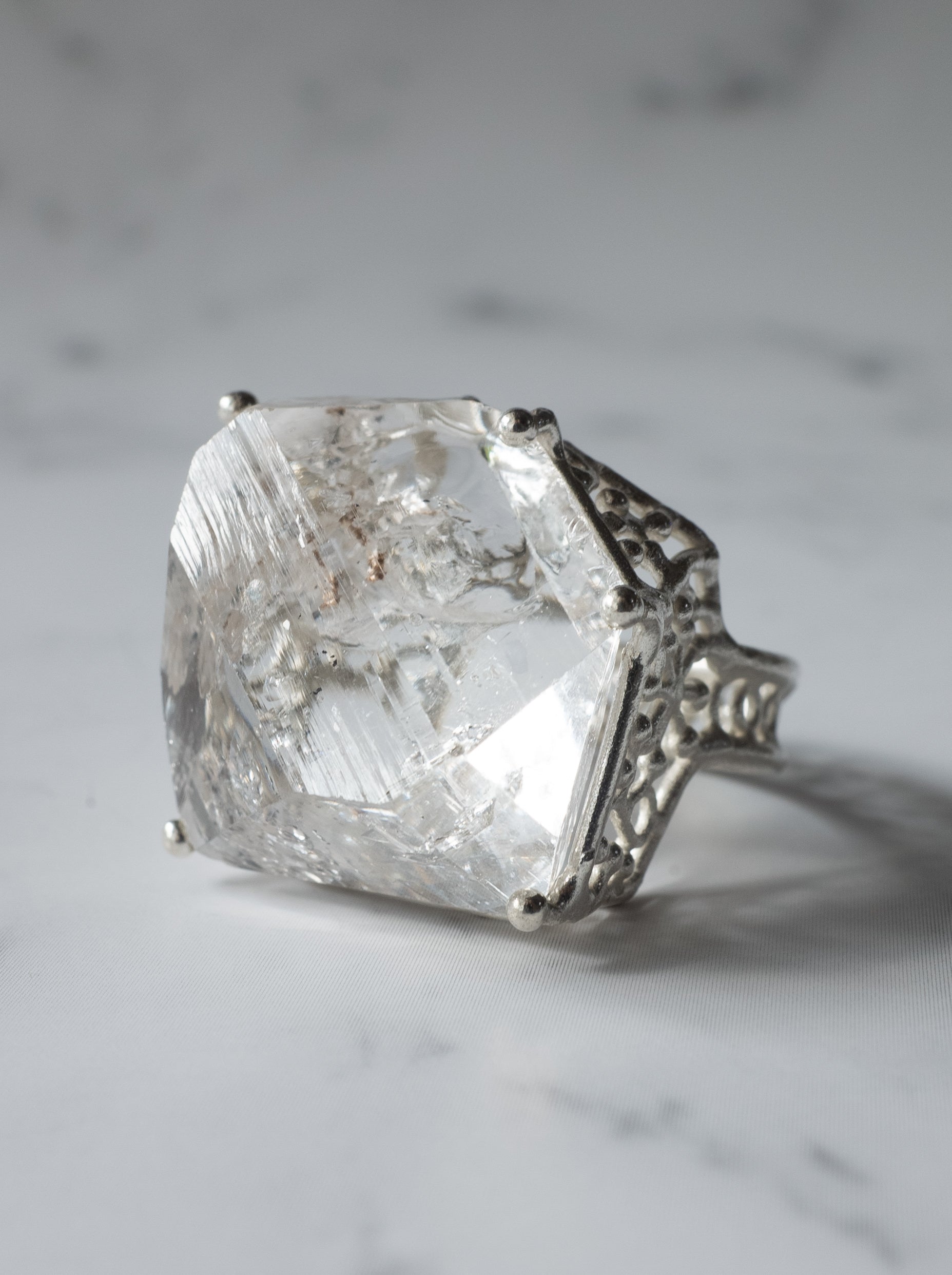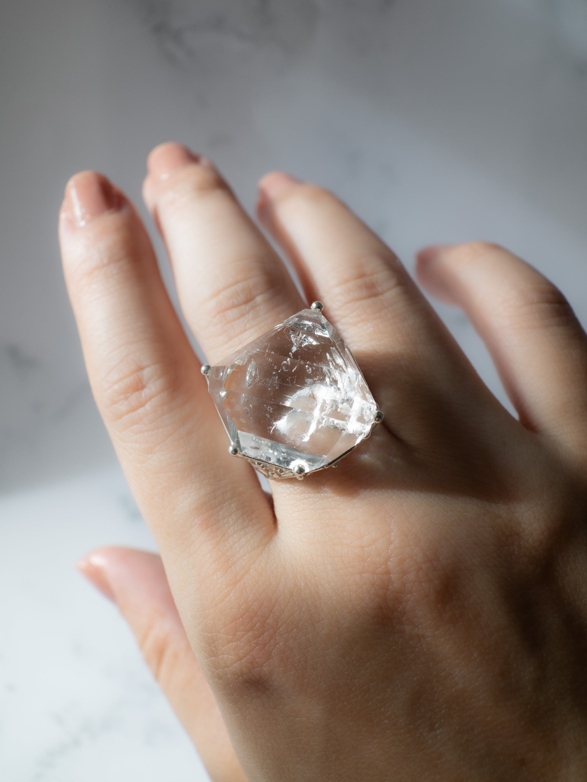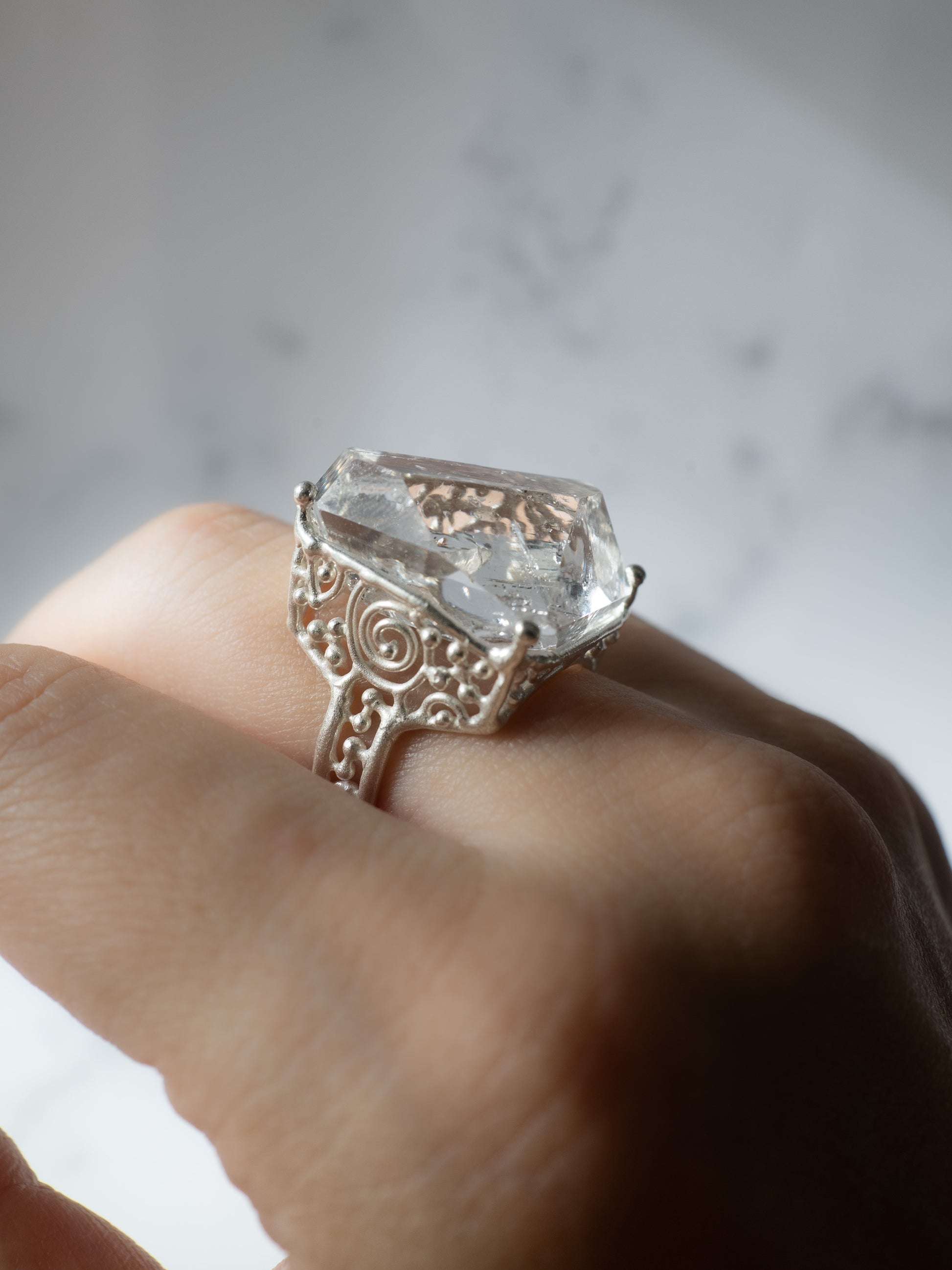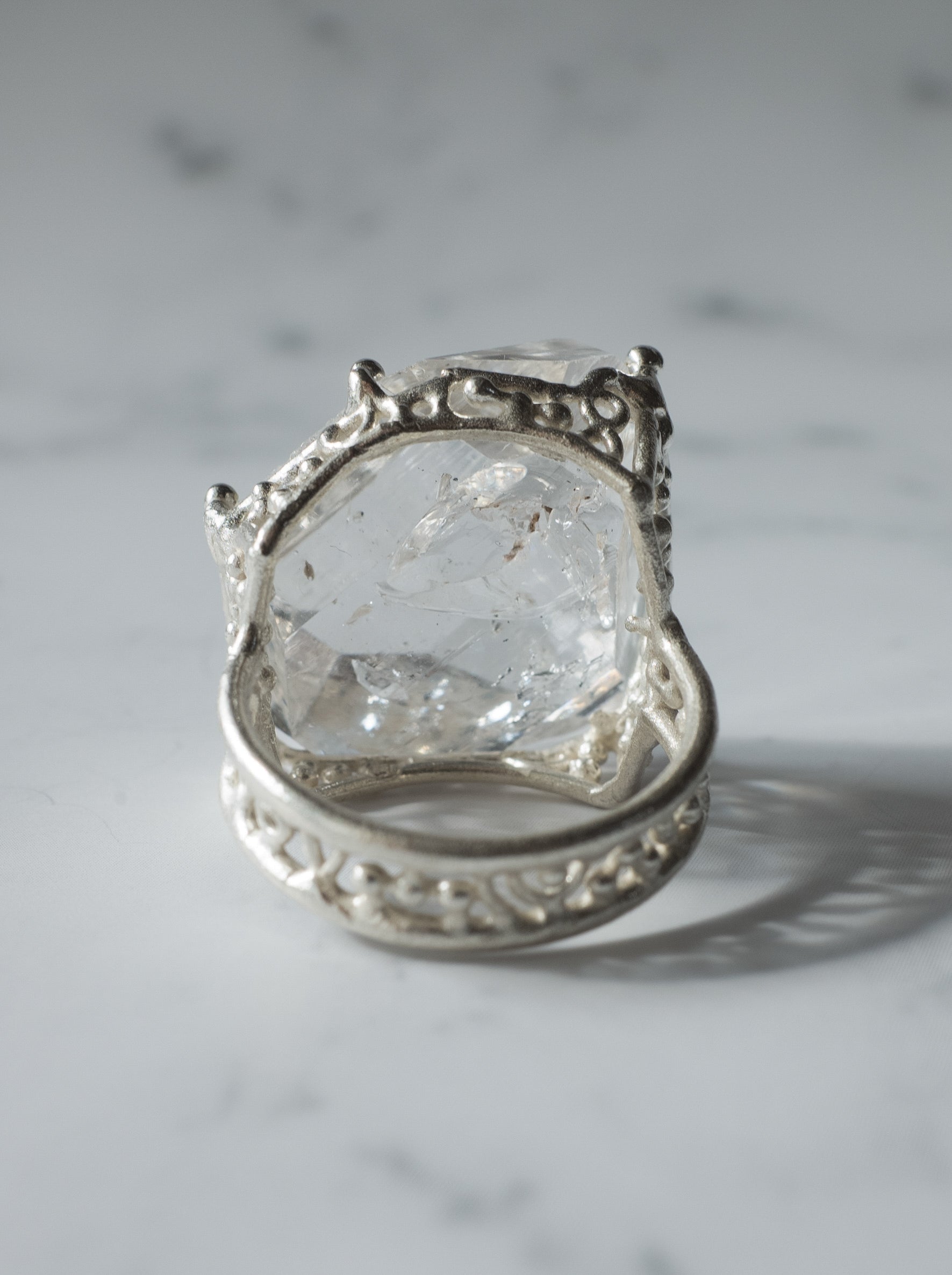 ※こちらの商品はデザインの特性上、石裏の部分にゆとりがある為、サイズ棒で計測したサイズと、実際の着用サイズに若干の差がございます。当店の表示サイズは着用感に合わせて記載しておりますが、個人差がありますことご了承ください。