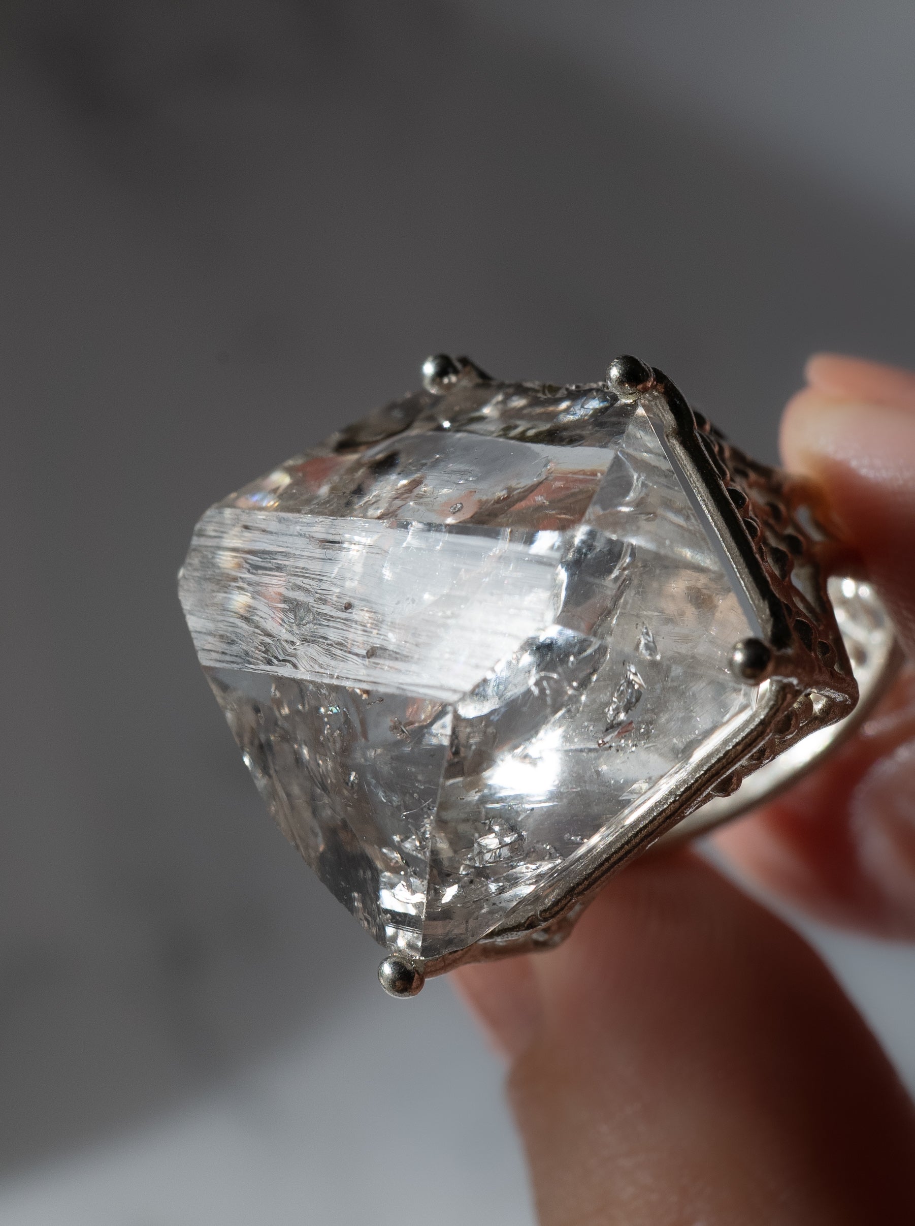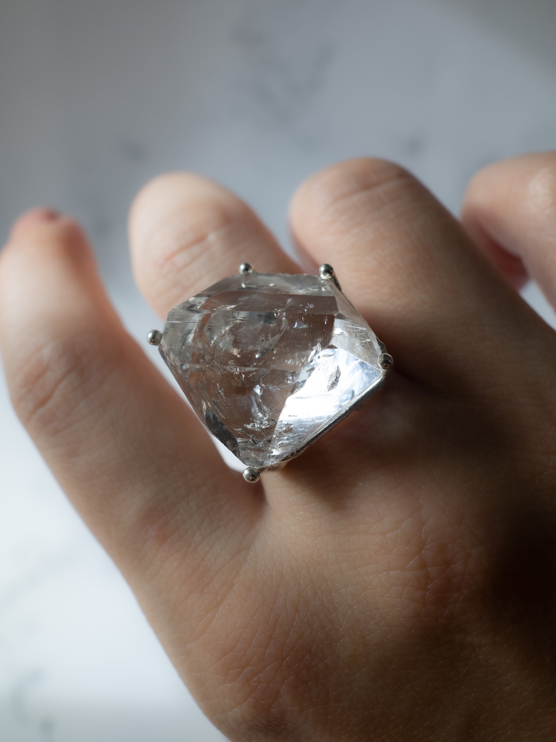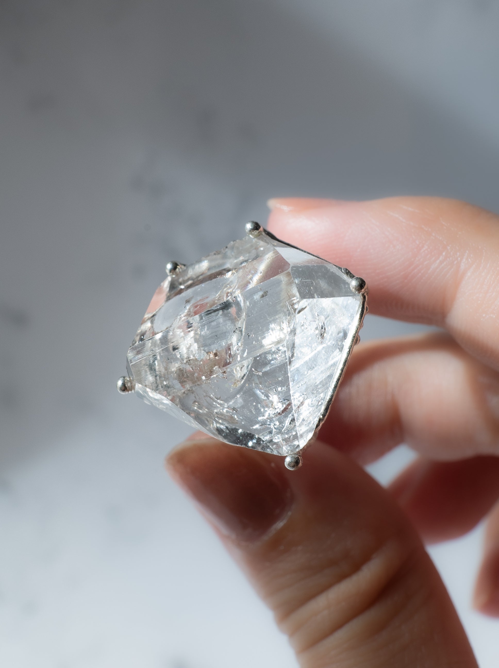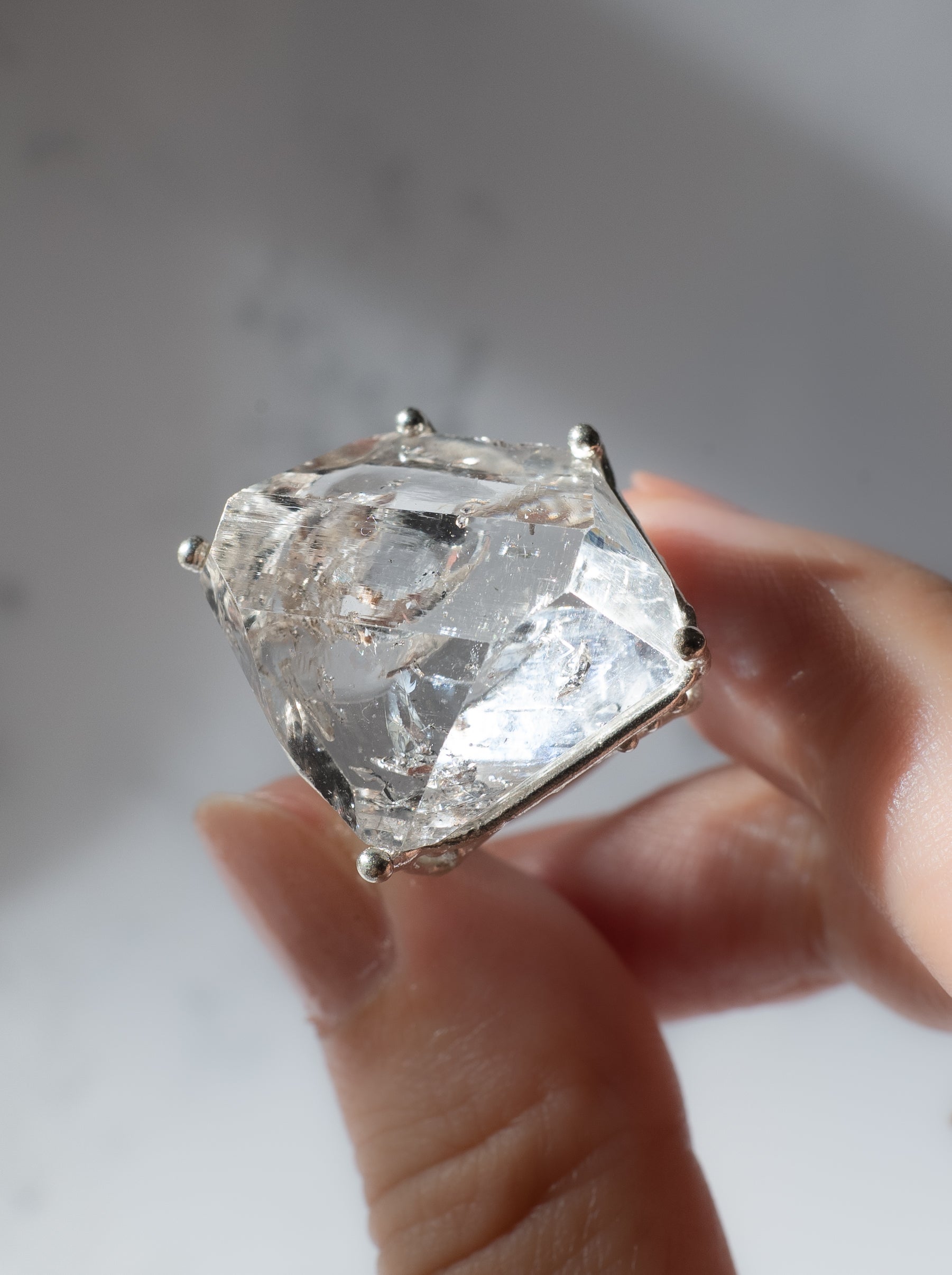 ※こちらの商品はデザインの特性上、石裏の部分にゆとりがある為、サイズ棒で計測したサイズと、実際の着用サイズに若干の差がございます。当店の表示サイズは着用感に合わせて記載しておりますが、個人差がありますことご了承ください。