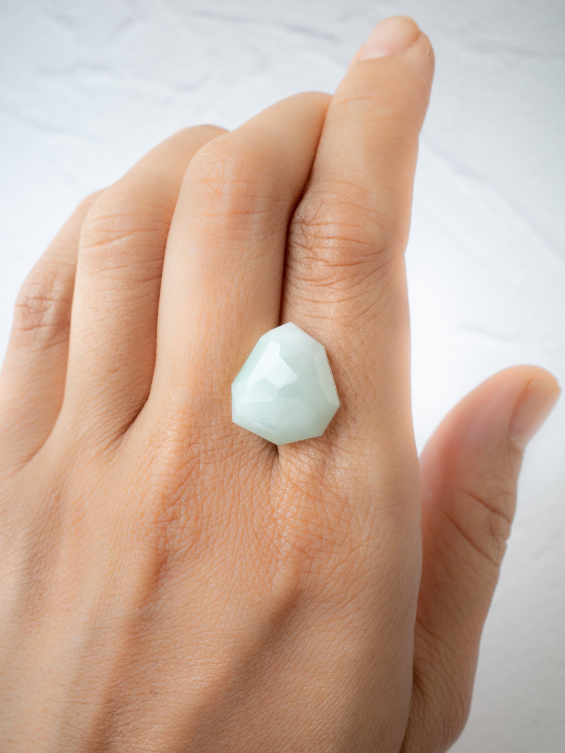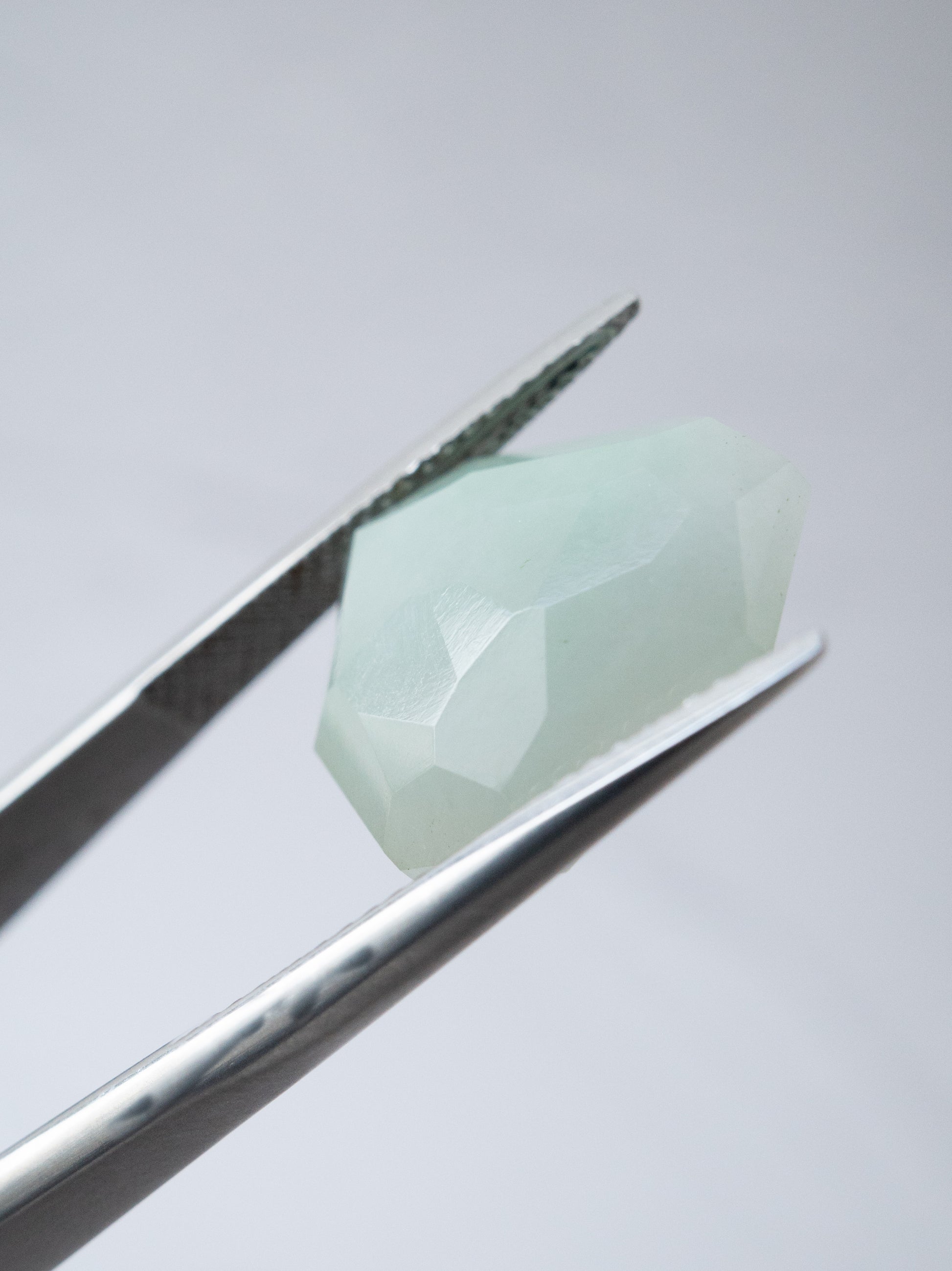 こちらは手磨り研磨師の大城かん奈さんがカットを担当してくださっている、通称『カンナカットシリーズ』。職人としての熟練した技術だけでなく、磨きながら石の個性と対話をし、一つ一つにフォーカスして魅力を引き出す素晴らしいセンスを持ち合わせた研磨師さんです。マニュアル化された研磨方法に囚われないダイナミックなカットは、唯一無二のモダンなフォルムがを生み出します。