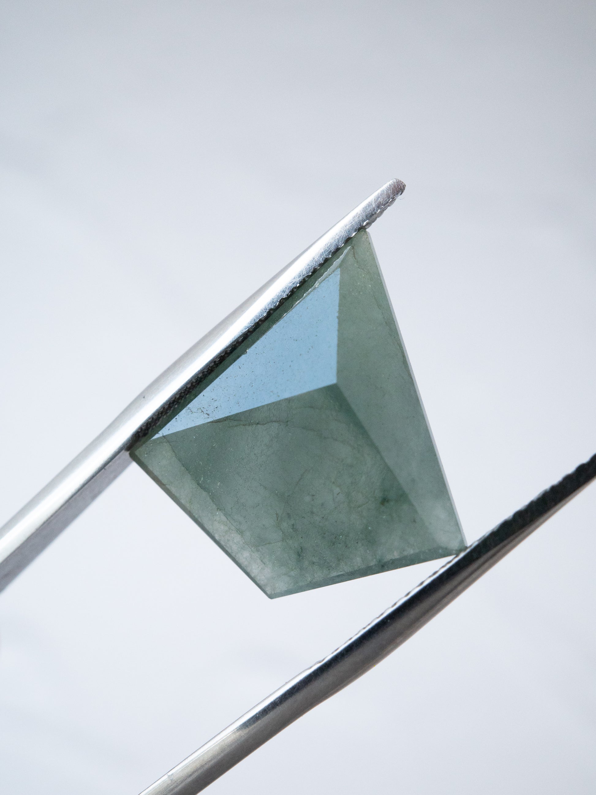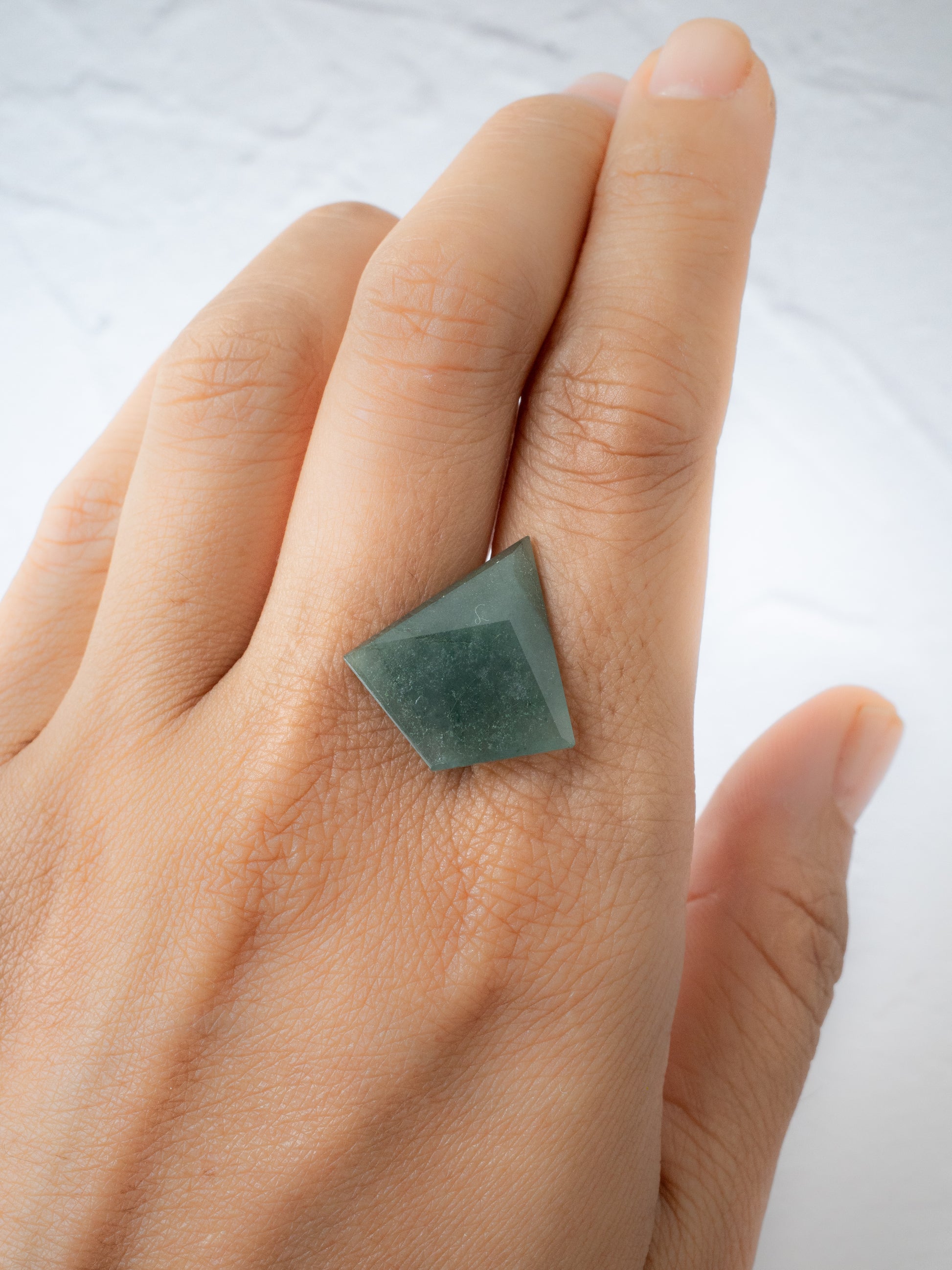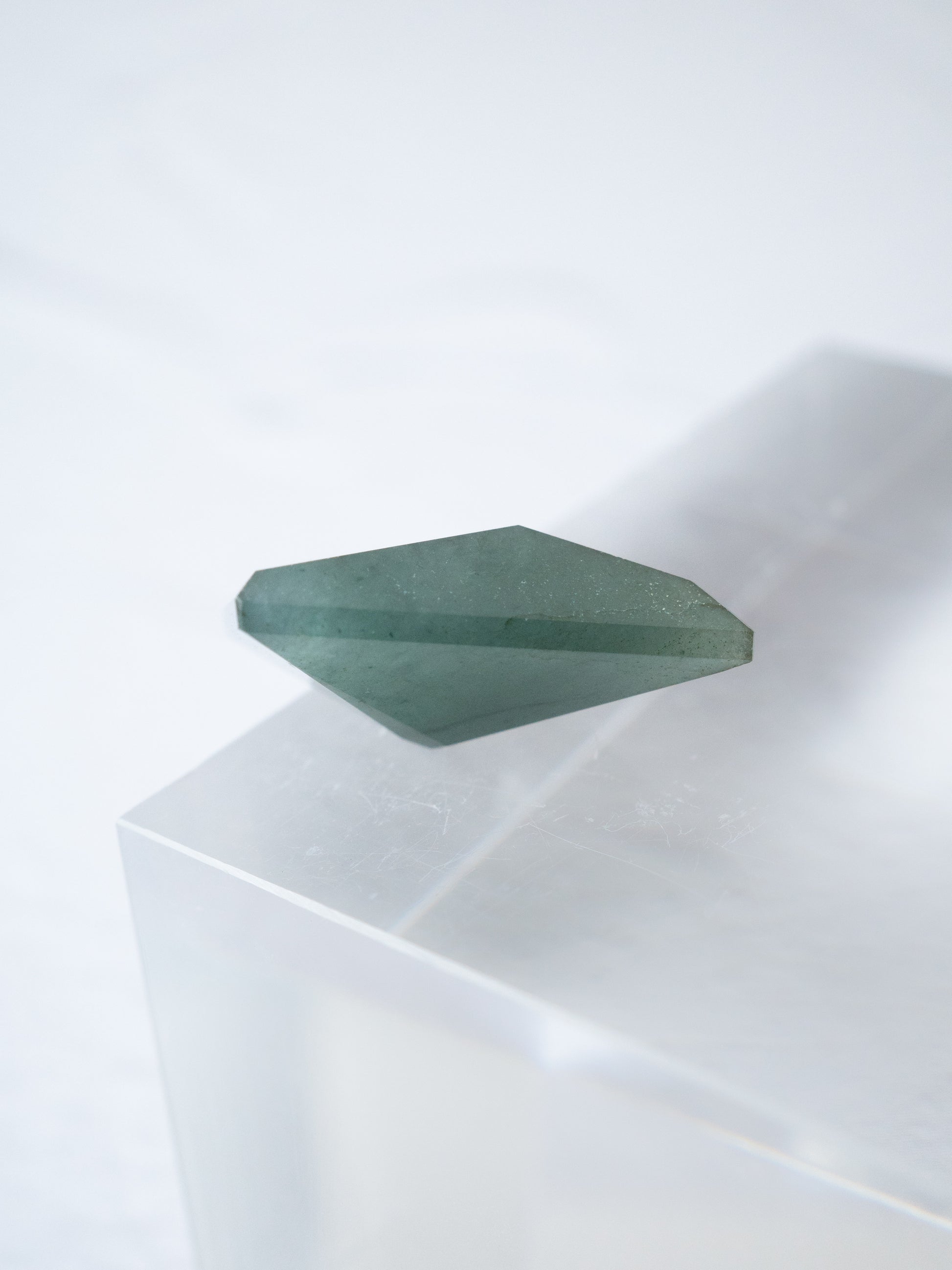 こちらは手磨り研磨師の大城かん奈さんがカットを担当してくださっている、通称『カンナカットシリーズ』。職人としての熟練した技術だけでなく、磨きながら石の個性と対話をし、一つ一つにフォーカスして魅力を引き出す素晴らしいセンスを持ち合わせた研磨師さんです。マニュアル化された研磨方法に囚われないダイナミックなカットは、唯一無二のモダンなフォルムがを生み出します。