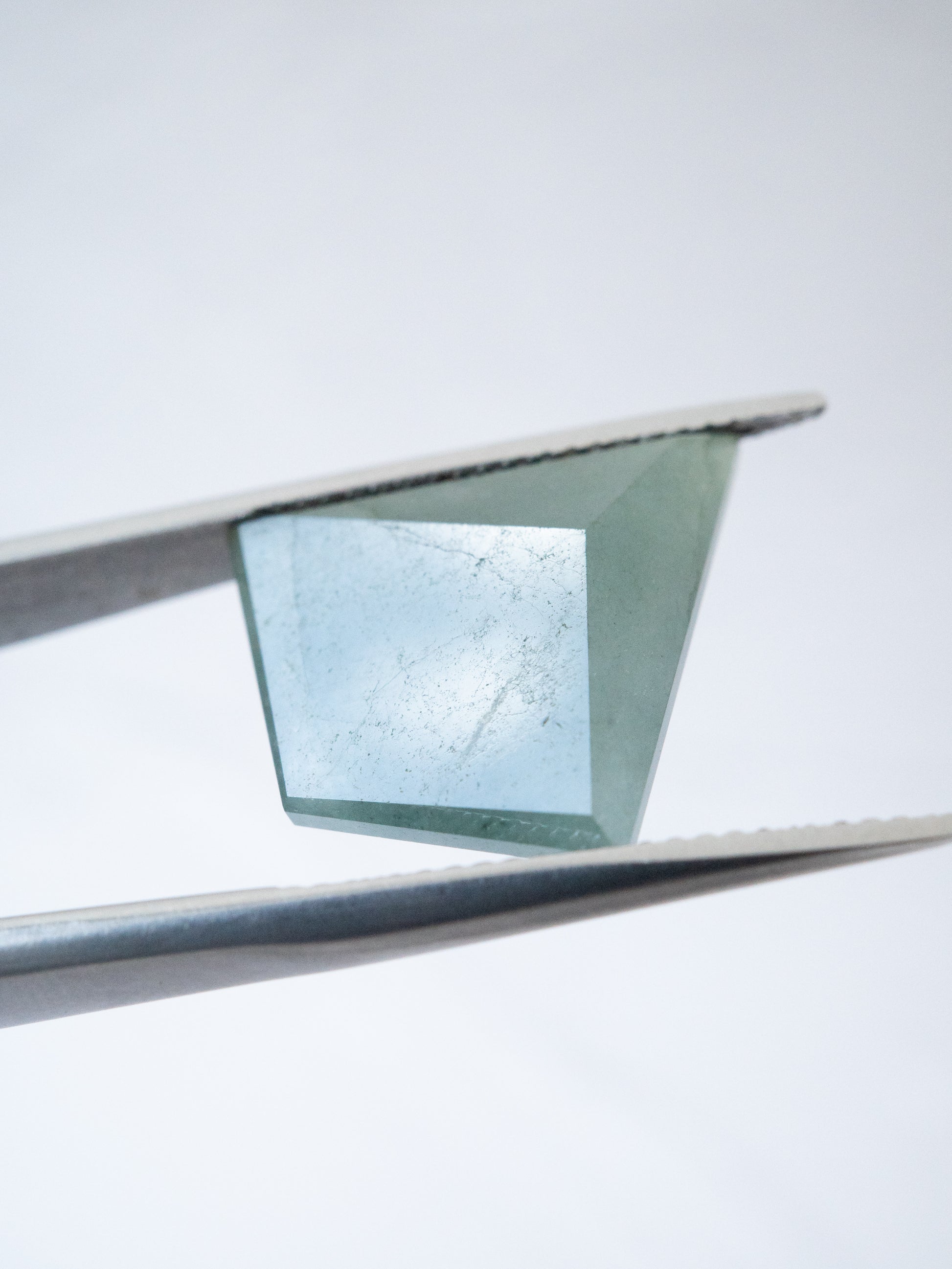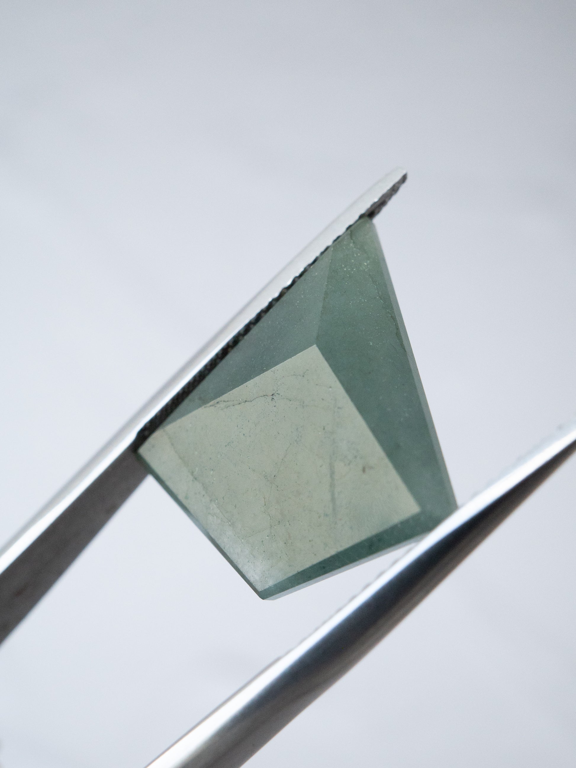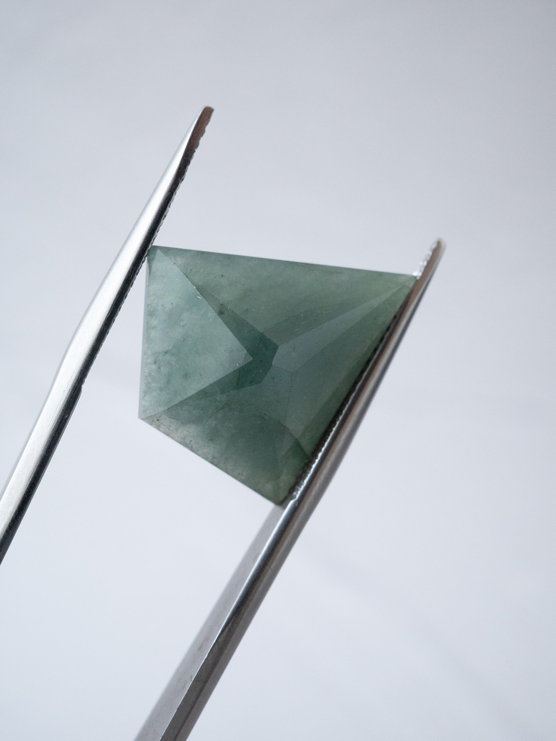 こちらは手磨り研磨師の大城かん奈さんがカットを担当してくださっている、通称『カンナカットシリーズ』。職人としての熟練した技術だけでなく、磨きながら石の個性と対話をし、一つ一つにフォーカスして魅力を引き出す素晴らしいセンスを持ち合わせた研磨師さんです。マニュアル化された研磨方法に囚われないダイナミックなカットは、唯一無二のモダンなフォルムがを生み出します。
