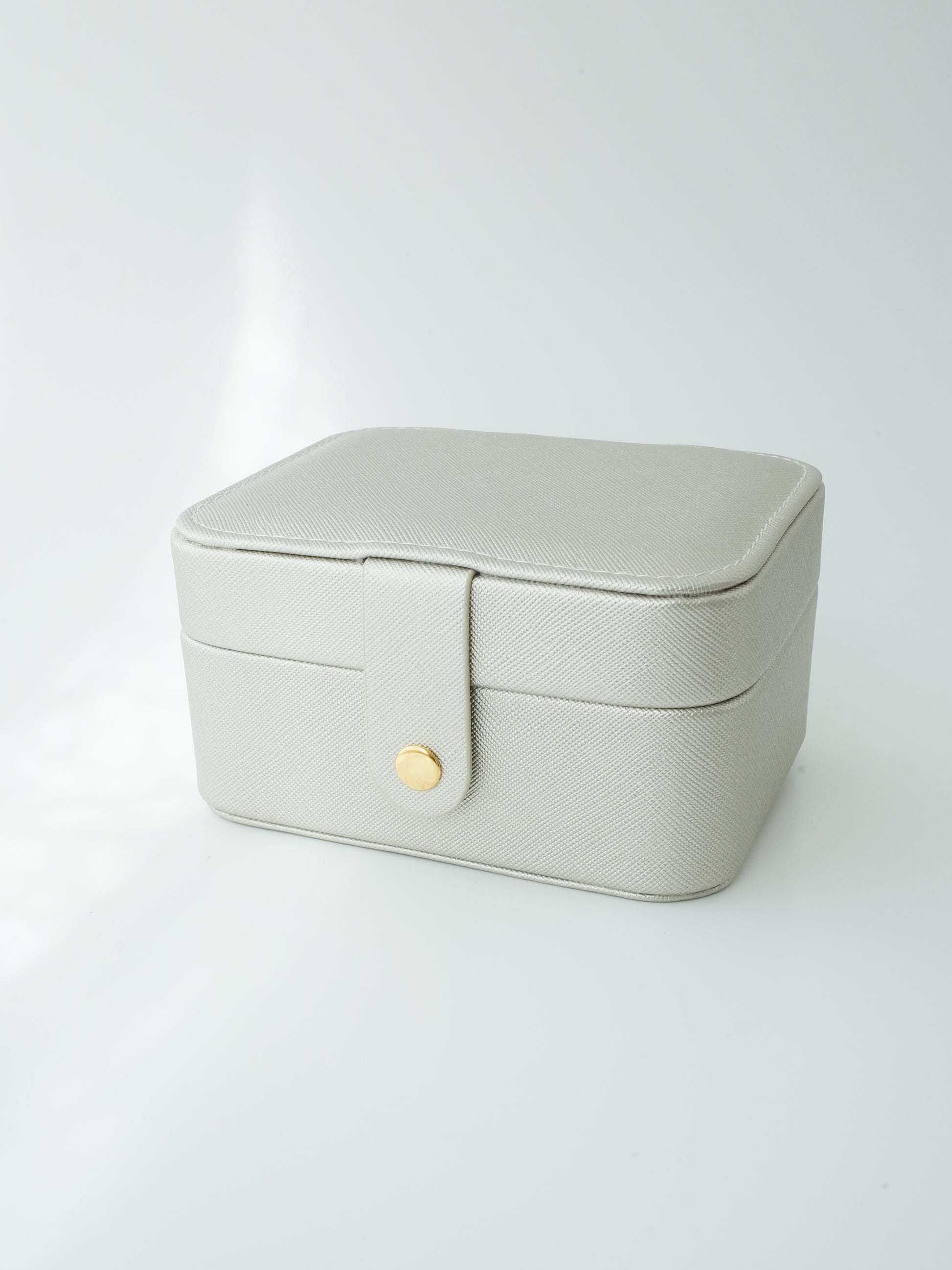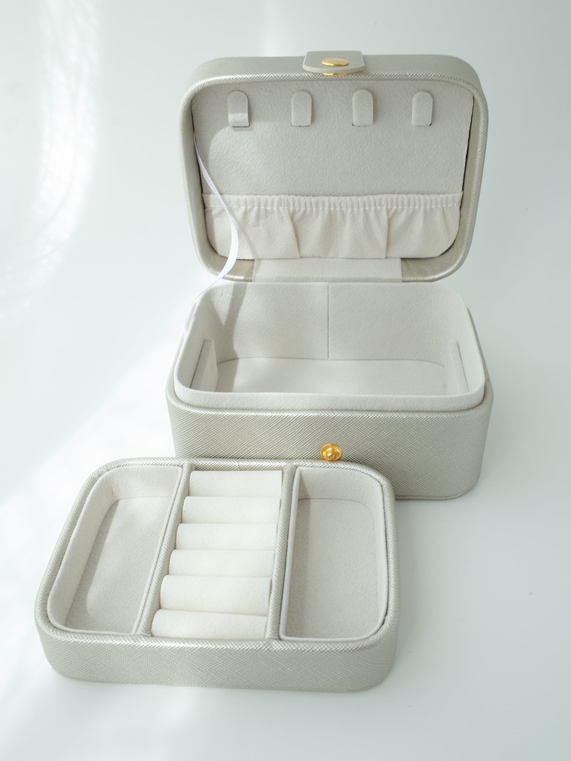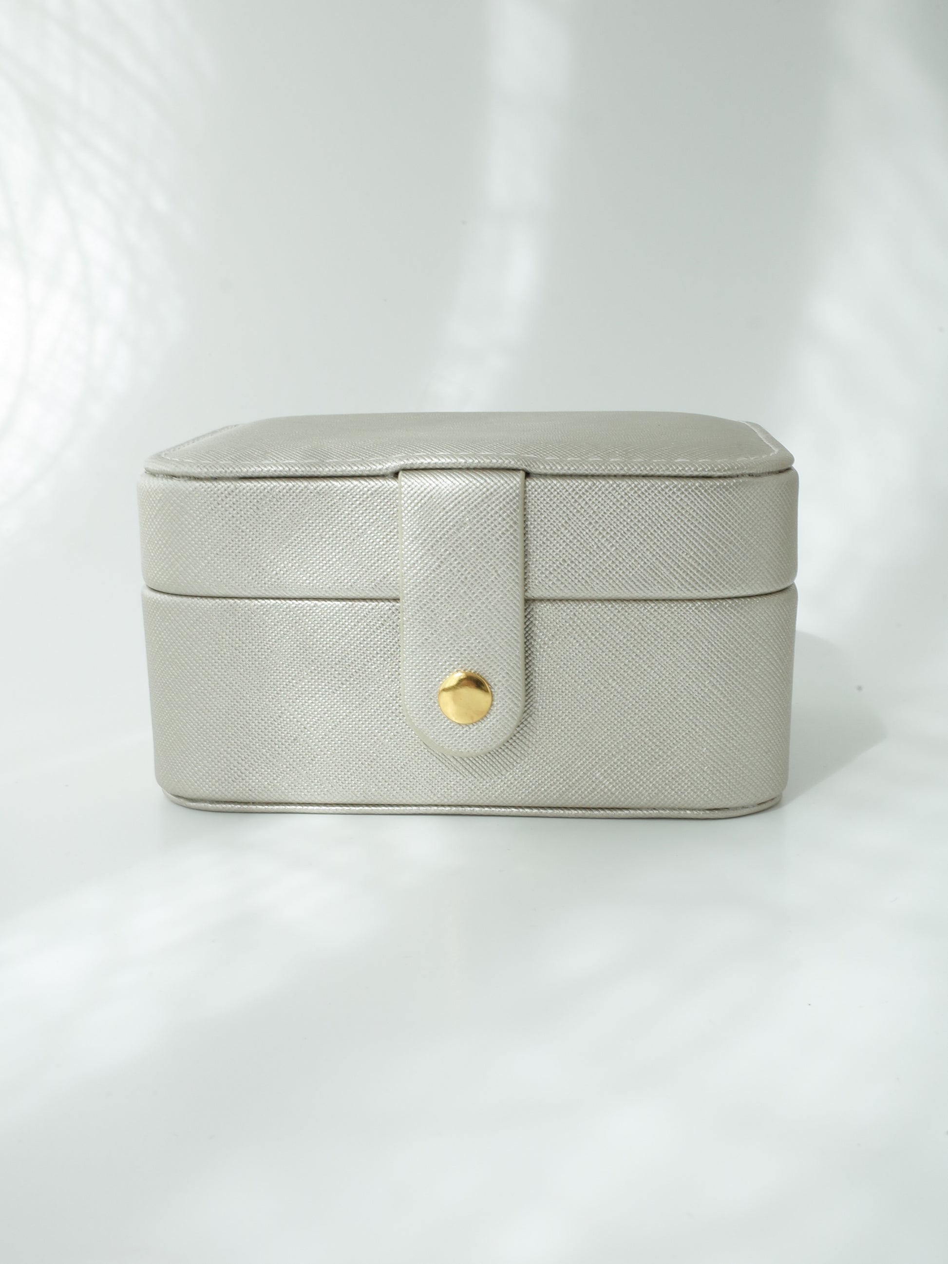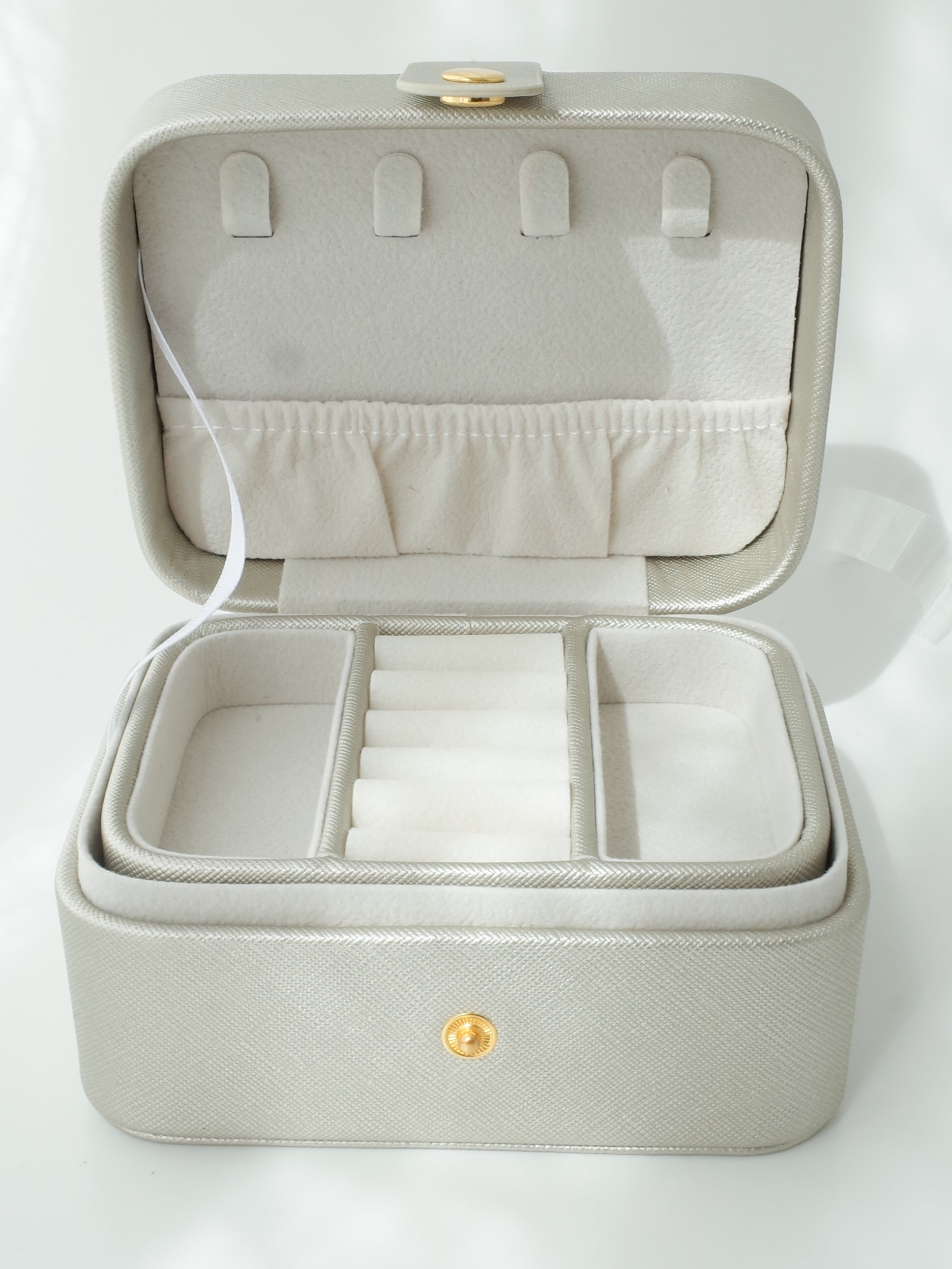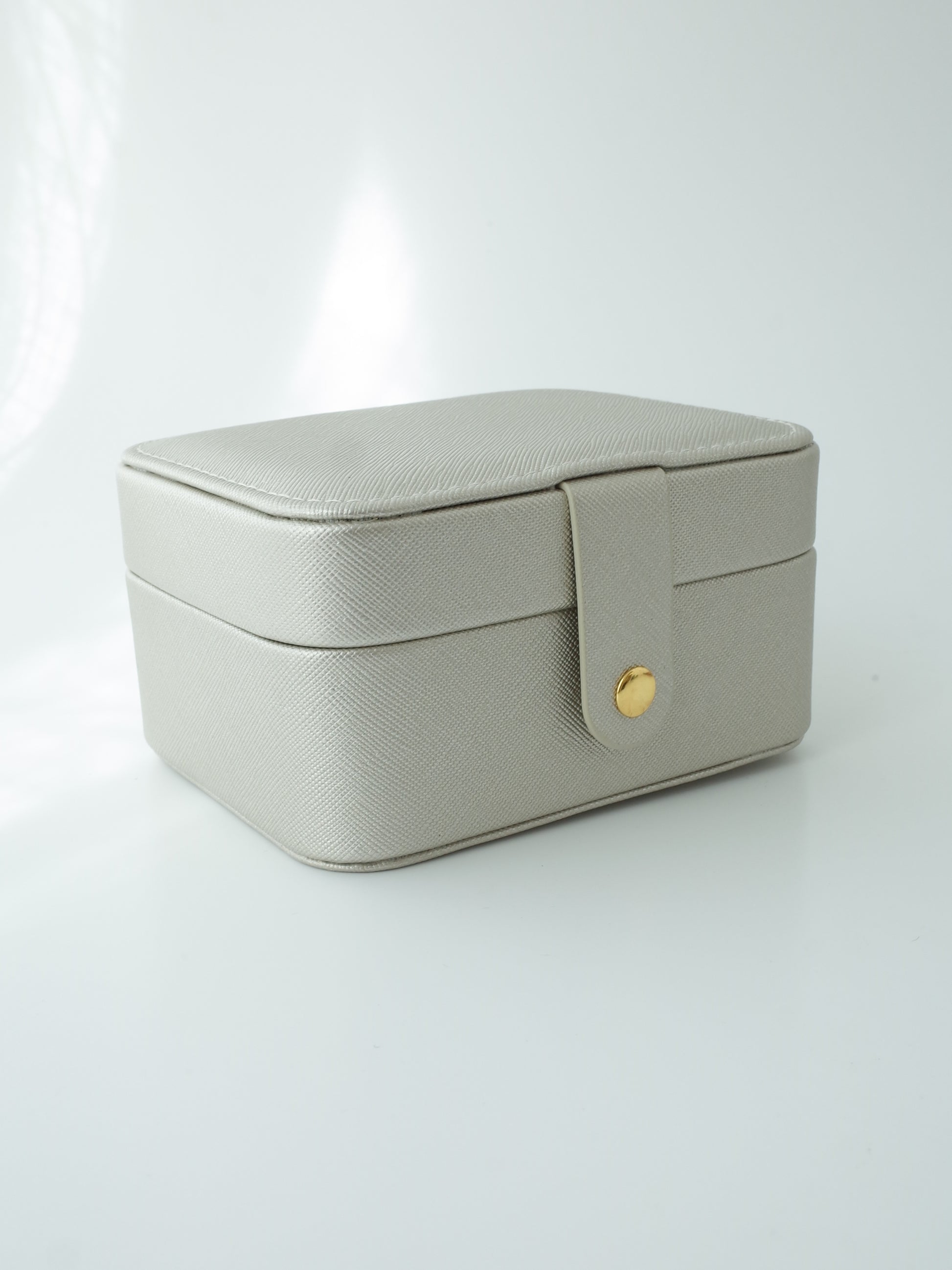 落ち着いたシャンパンゴールドがシンプルで洗練された印象で、自宅でのジュエリー収納はもちろん、旅行や外出時のアクセサリーケースとしても便利なサイズです。