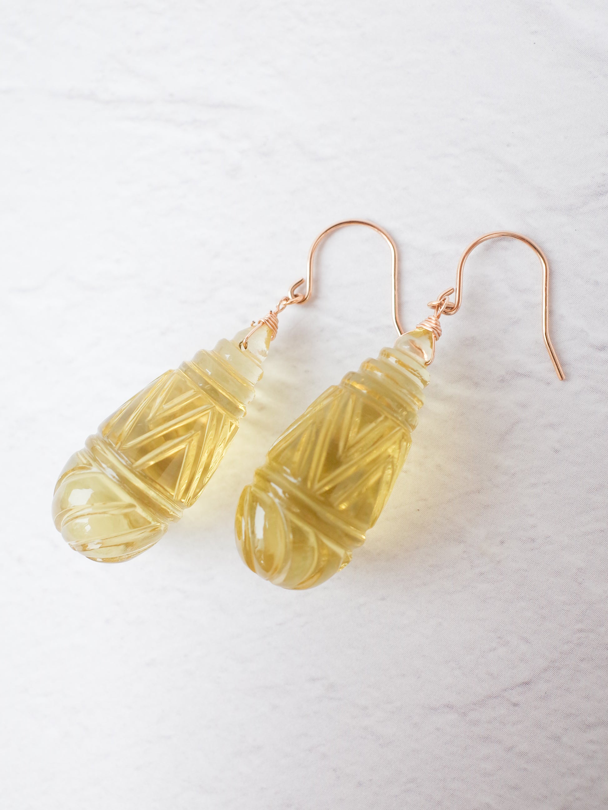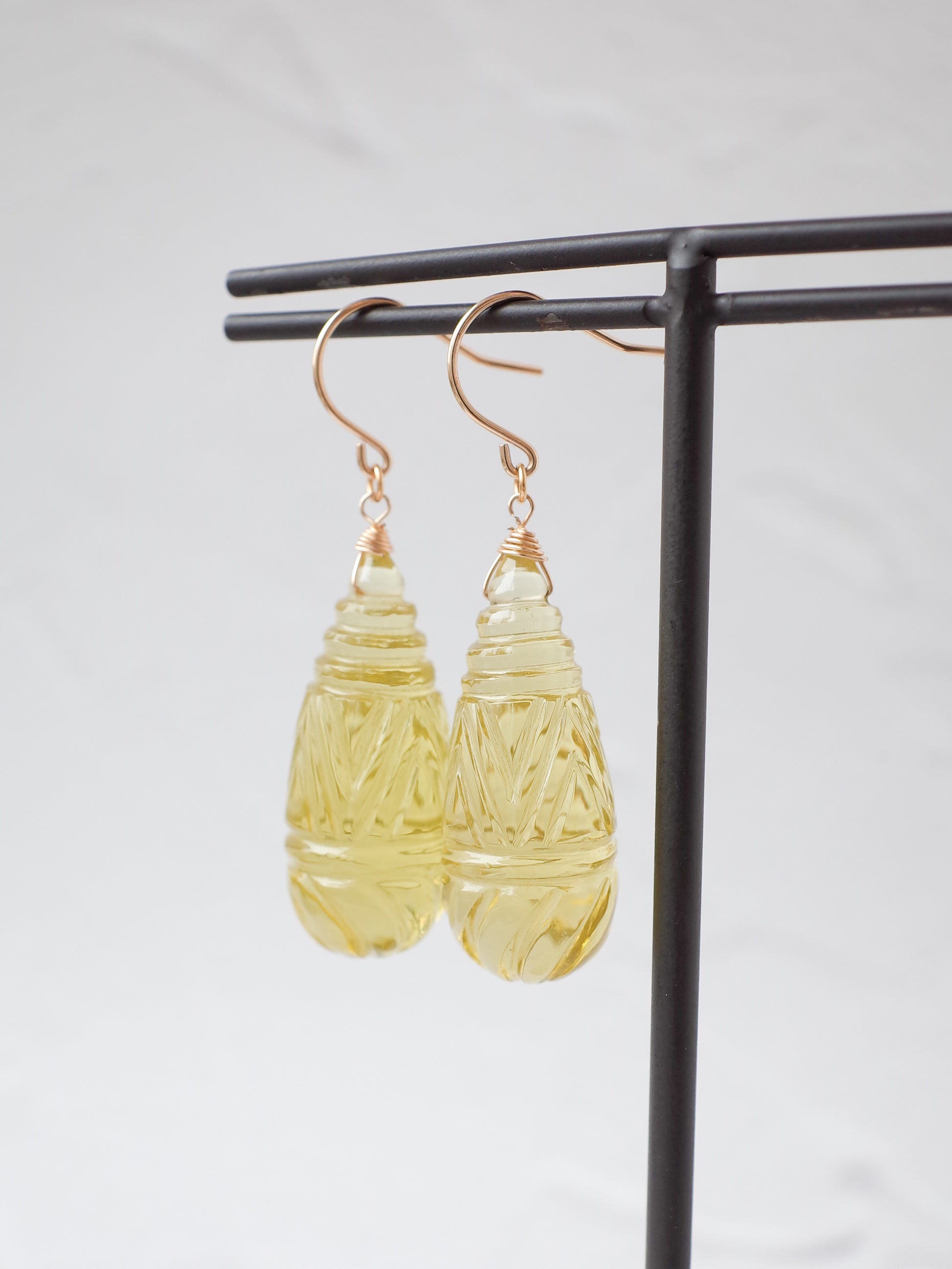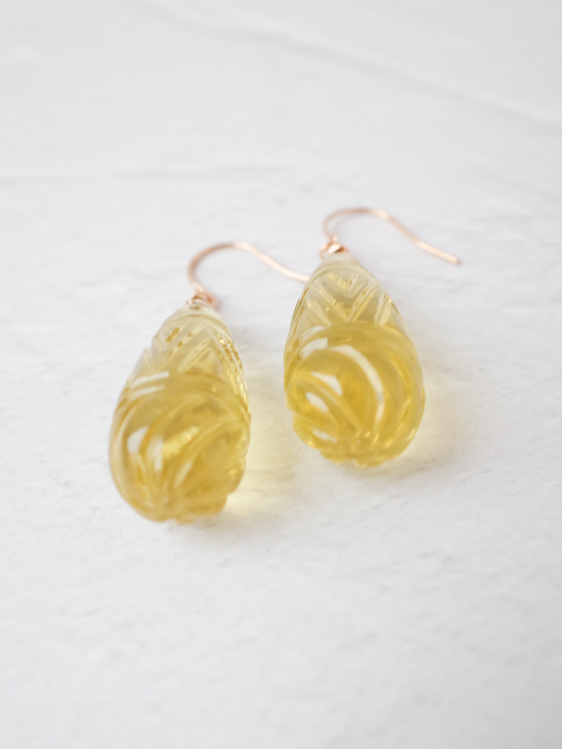 インドの伝統的模様を天然石に彫り入れたピアスシリーズ。シンプルなフックタイプのドロップピアスですが、独特のムガールパターンや、カービングによる陰影が、さりげない個性を演出してくれます。