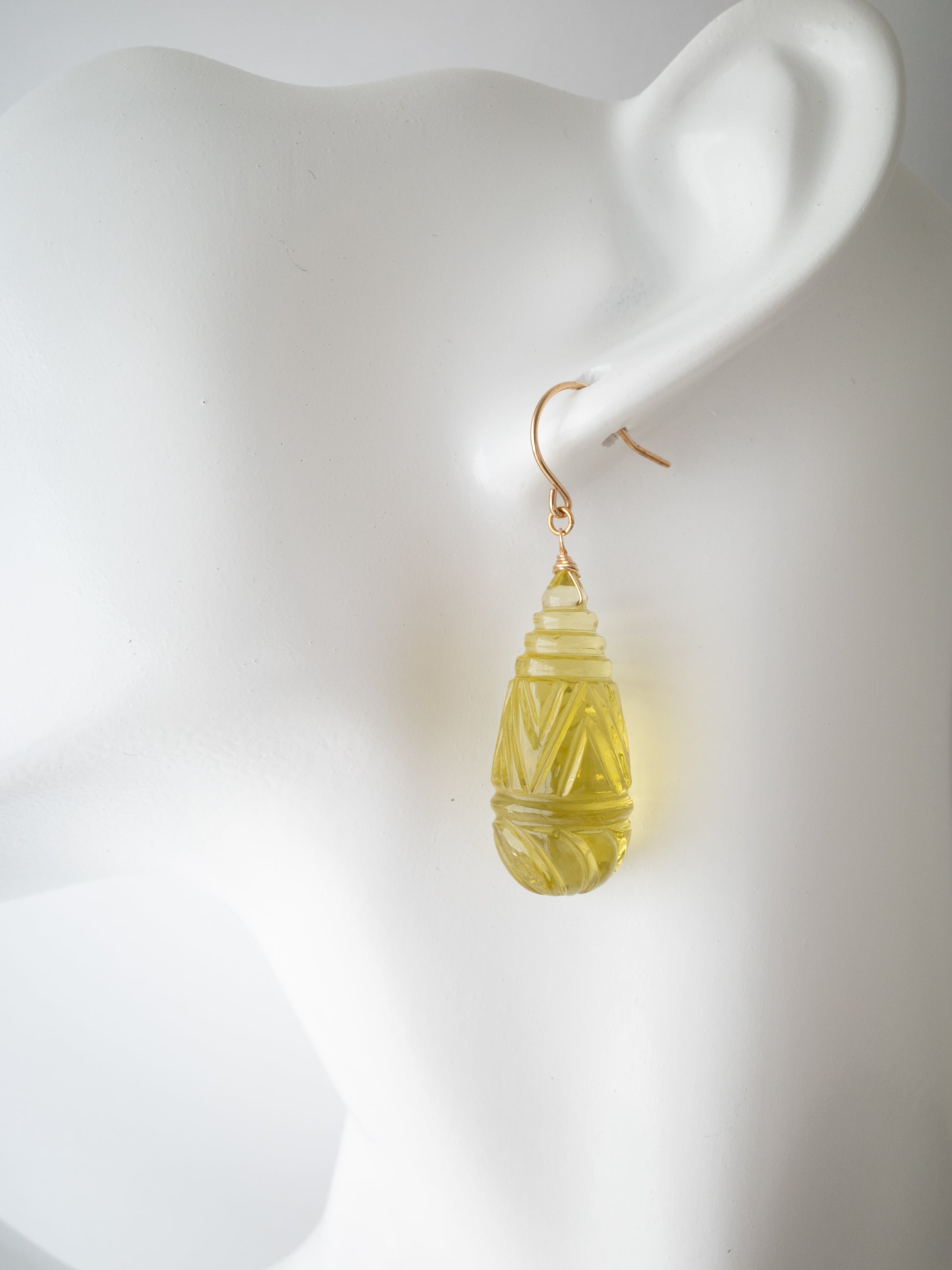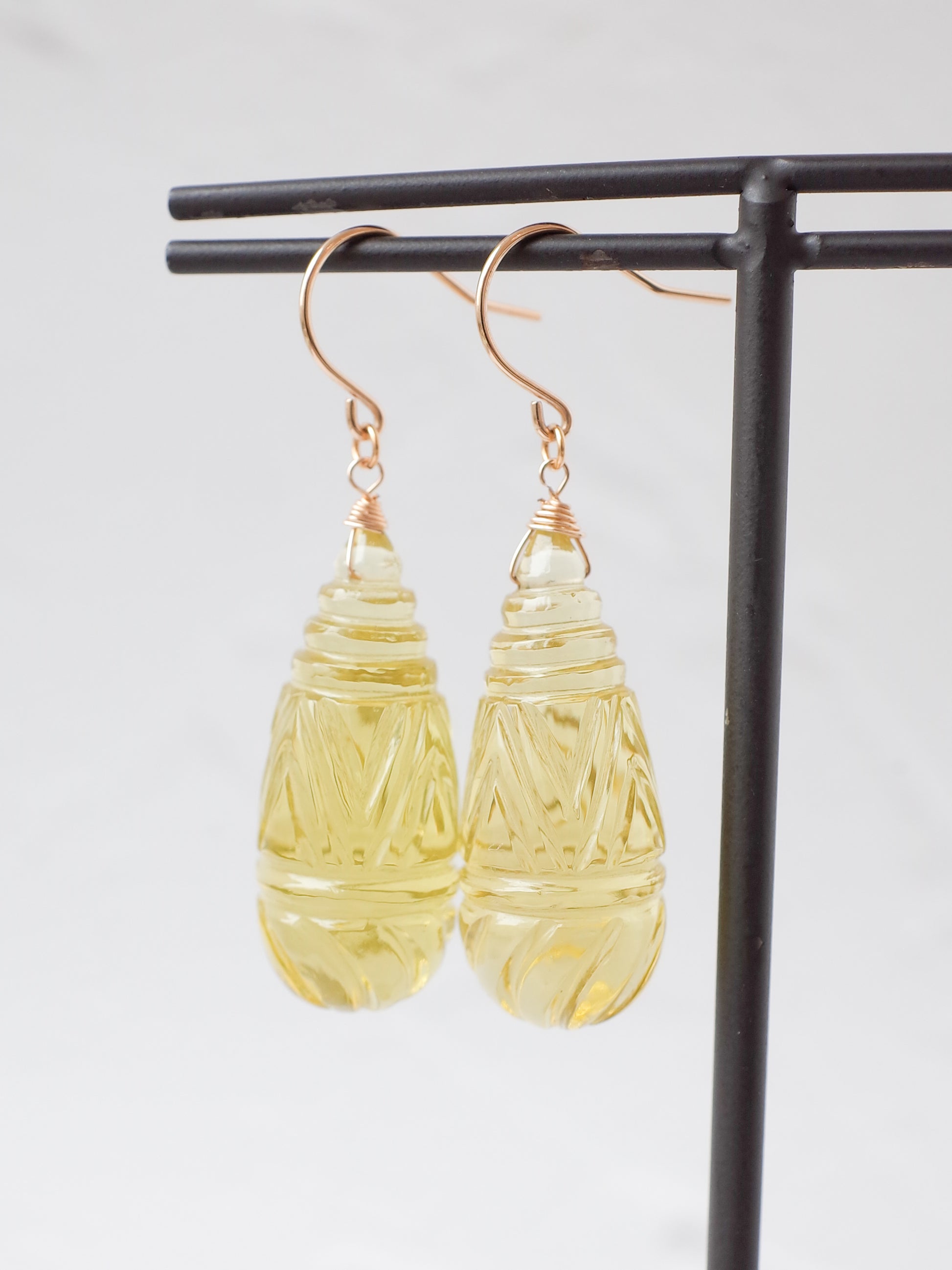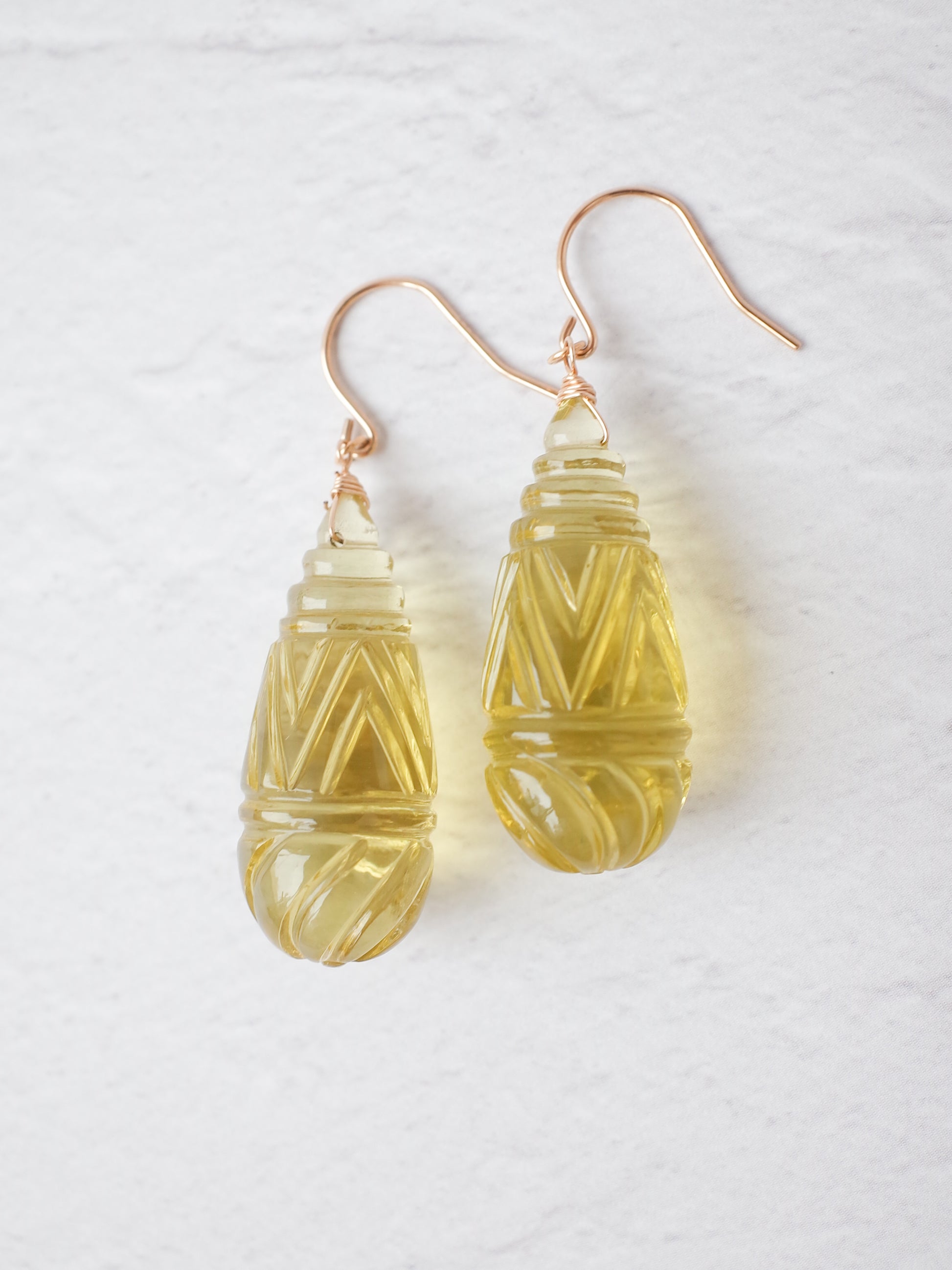 インドの伝統的模様を天然石に彫り入れたピアスシリーズ。シンプルなフックタイプのドロップピアスですが、独特のムガールパターンや、カービングによる陰影が、さりげない個性を演出してくれます。