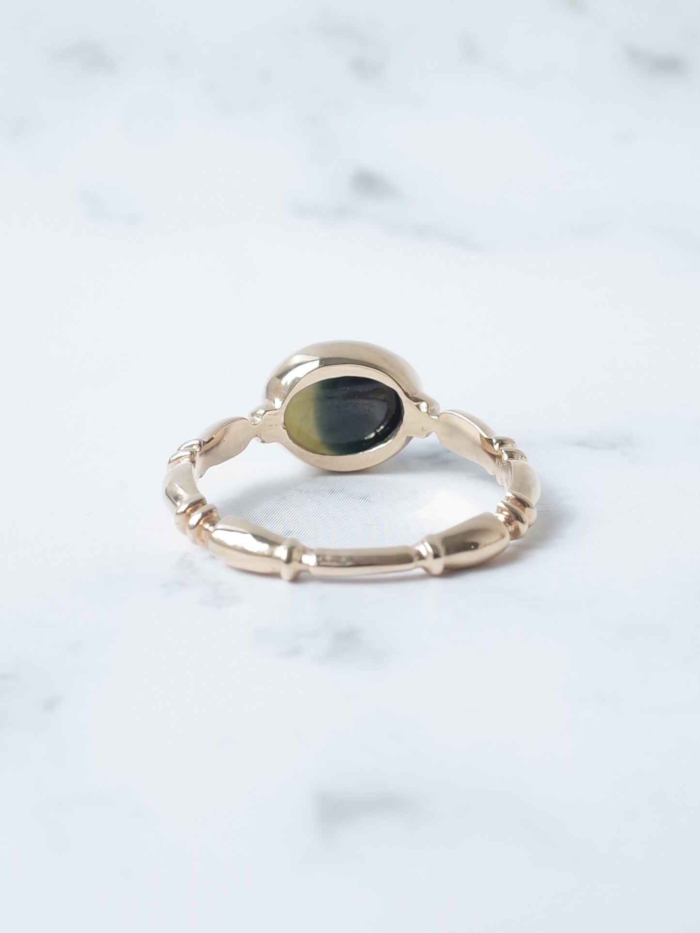 夜空に浮かぶ三日月をそのまま閉じ込めたような、神秘的な色合いのバイカラーサファイアのリング。