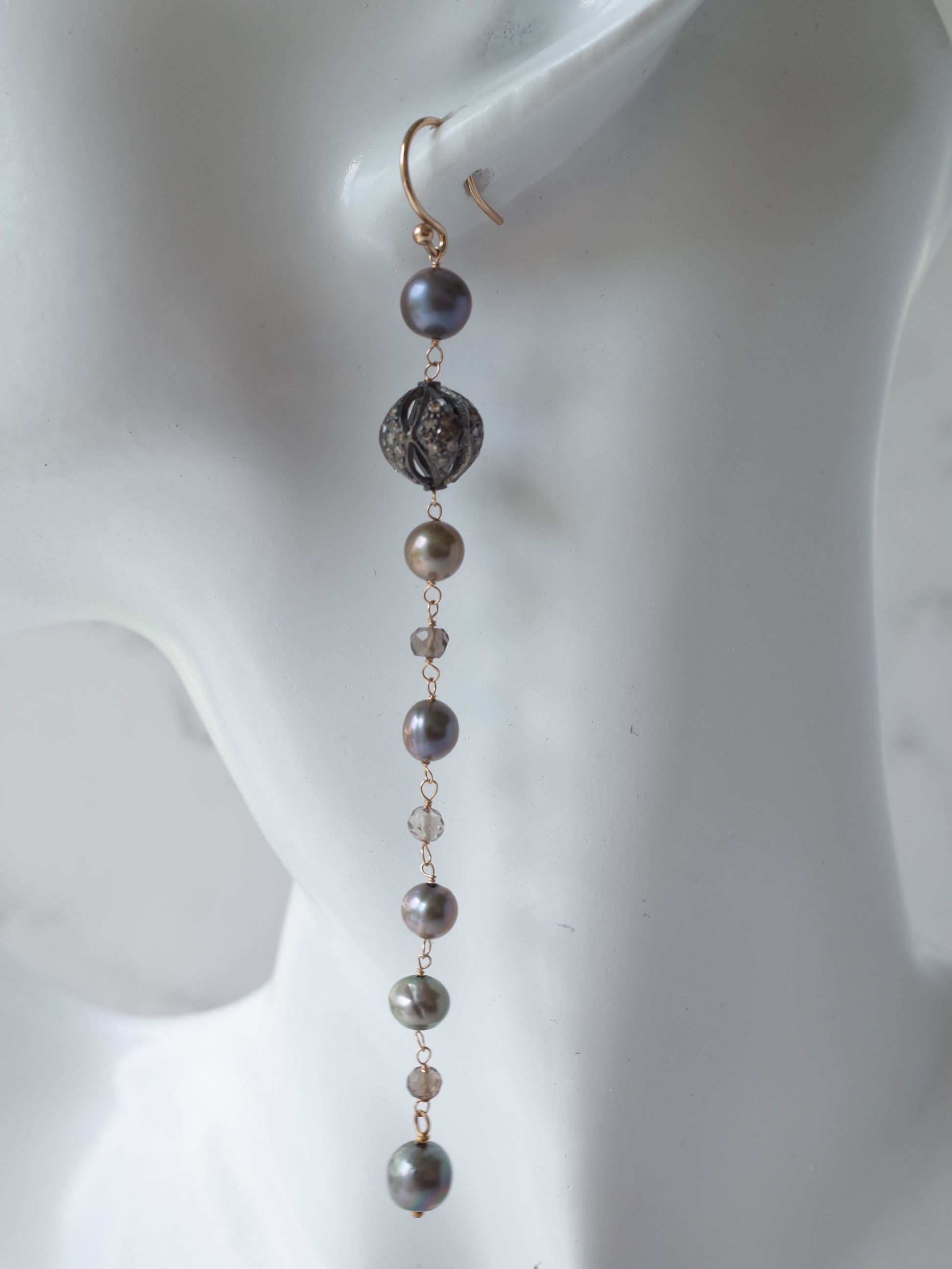 中石 : 淡水パール(染め) / スモーキークォーツ / ダイヤモンド