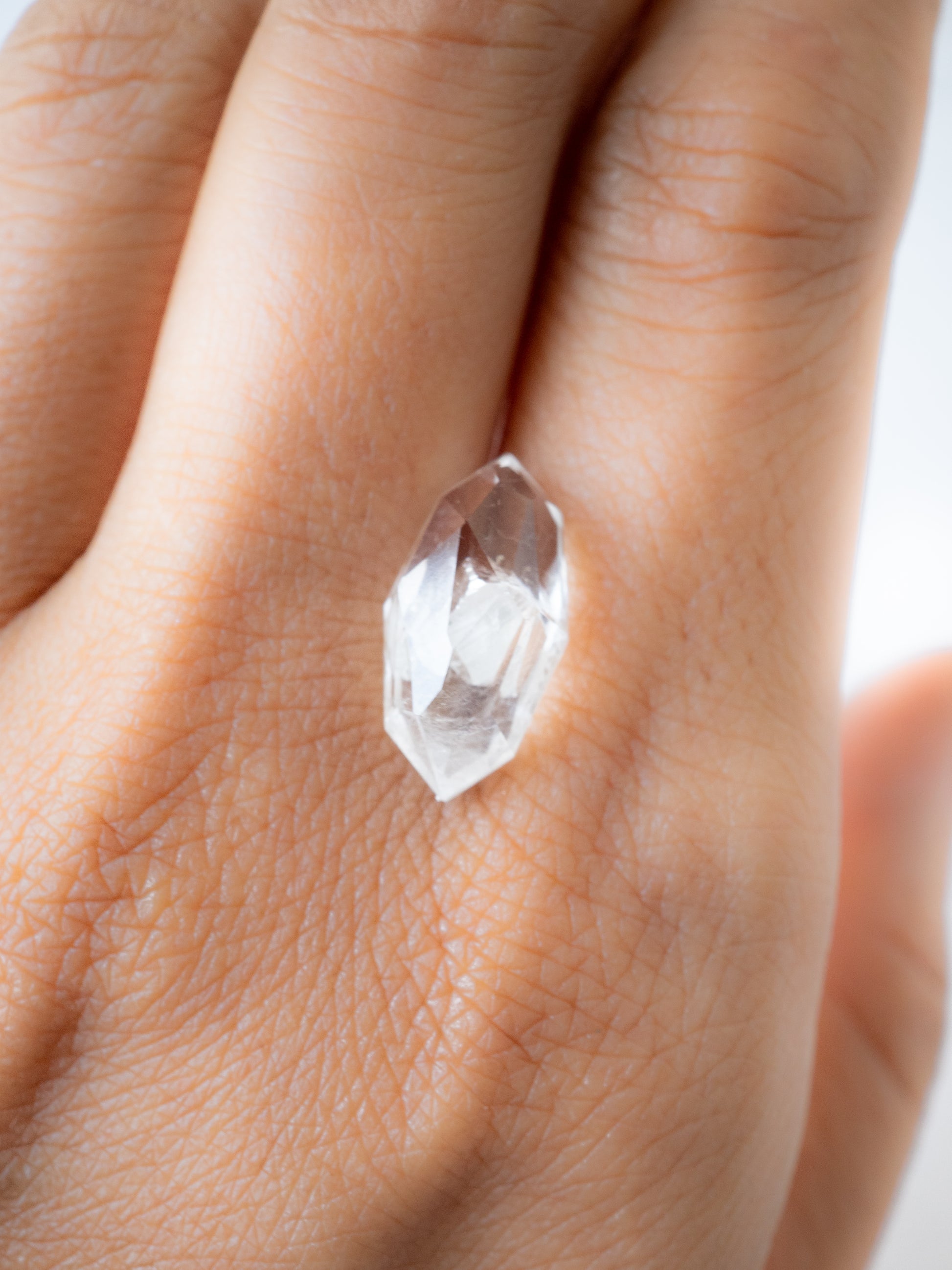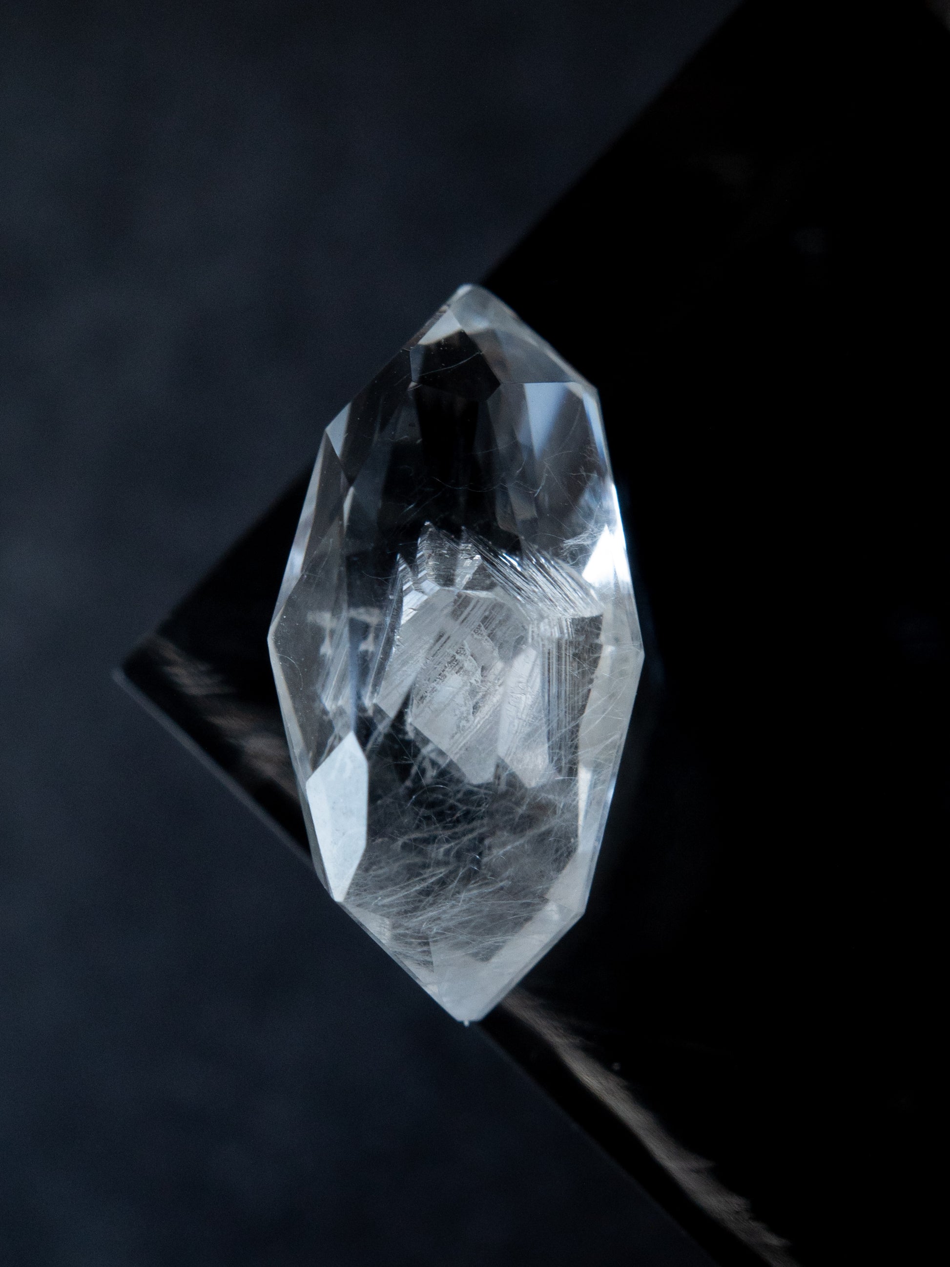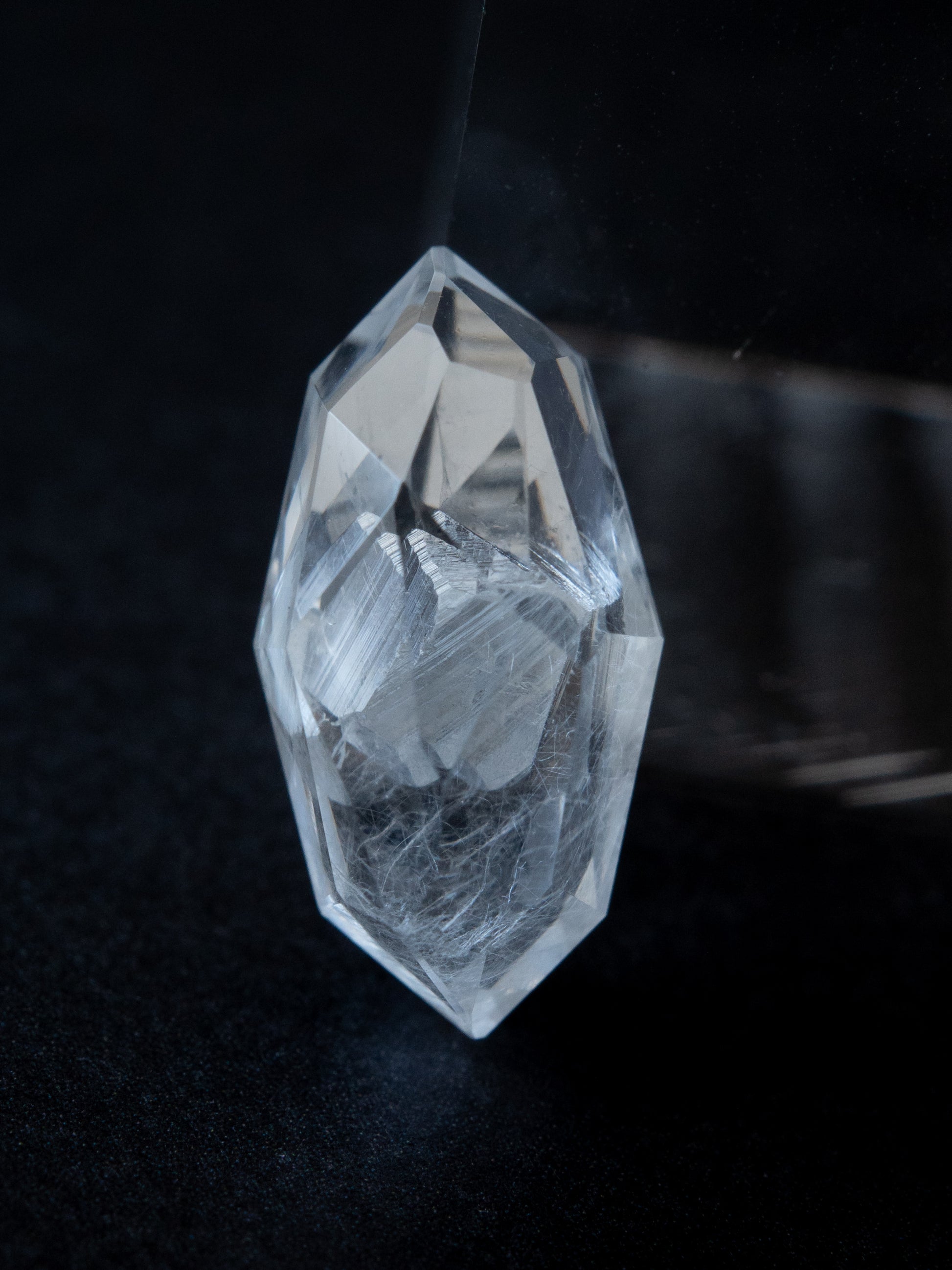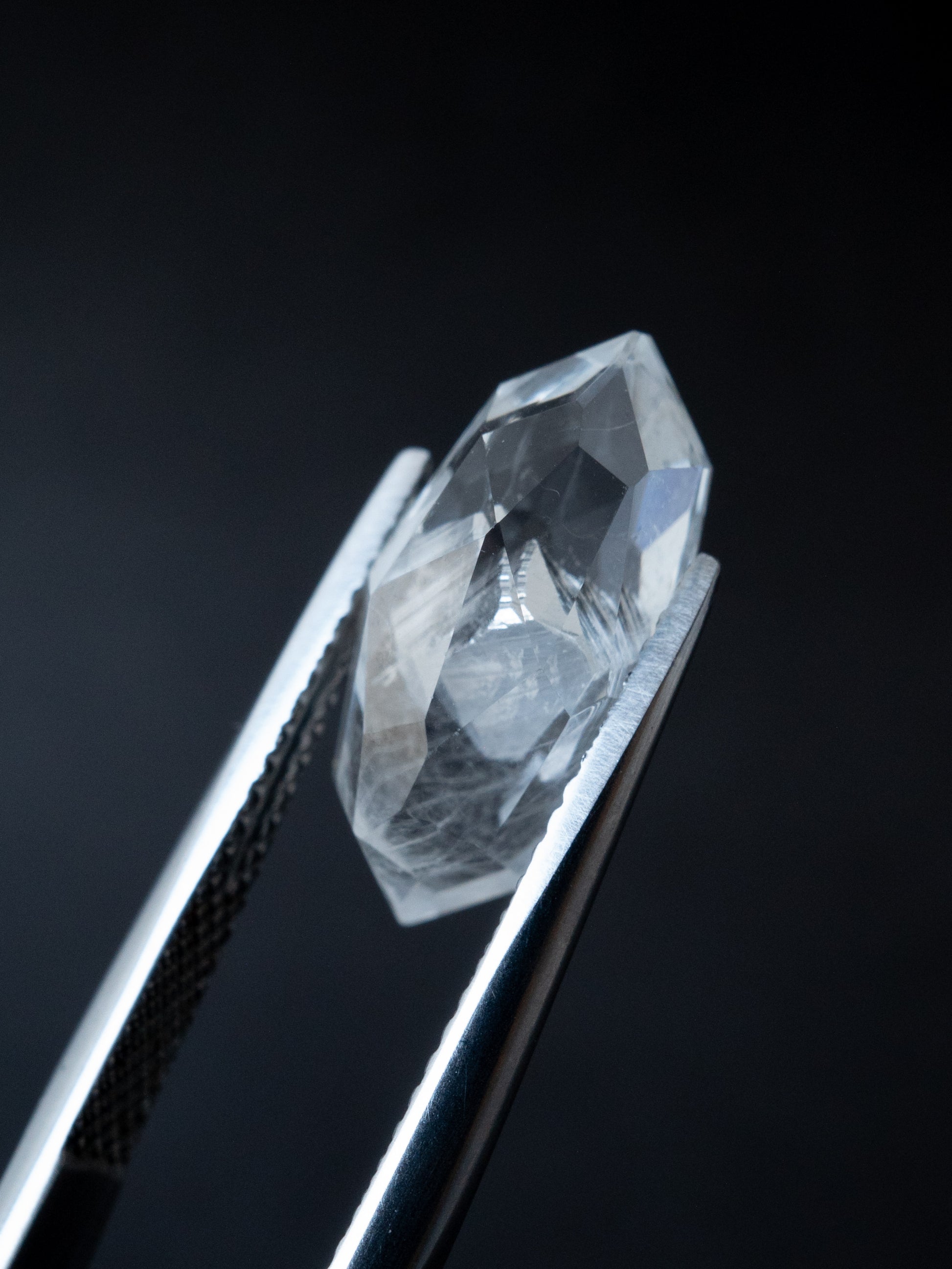 山梨県甲府市に伝統的に伝わる「手磨り」という技法は、高度な器具を使わずに手先の感覚のみで石を研磨していく昔ながらの研磨方法。計算された機械的なカットよりも臨機応変な対応ができるため、インクルージョンの魅力を最大限引き出せる手法でもあります。