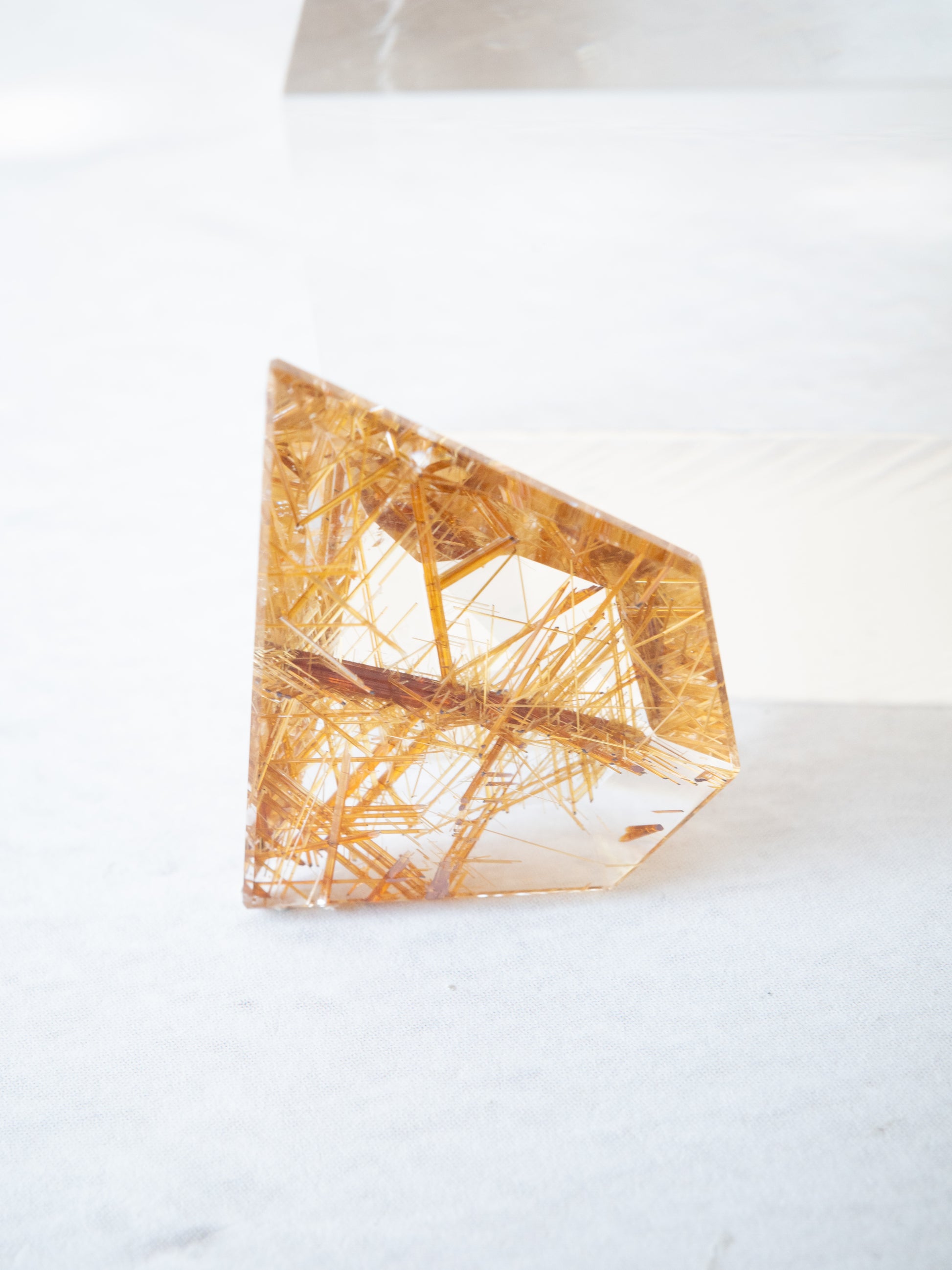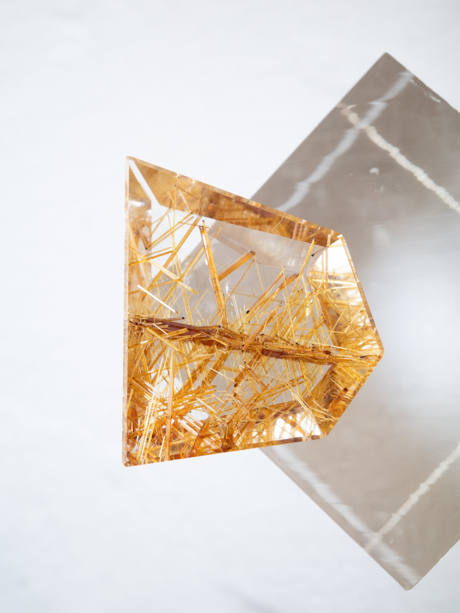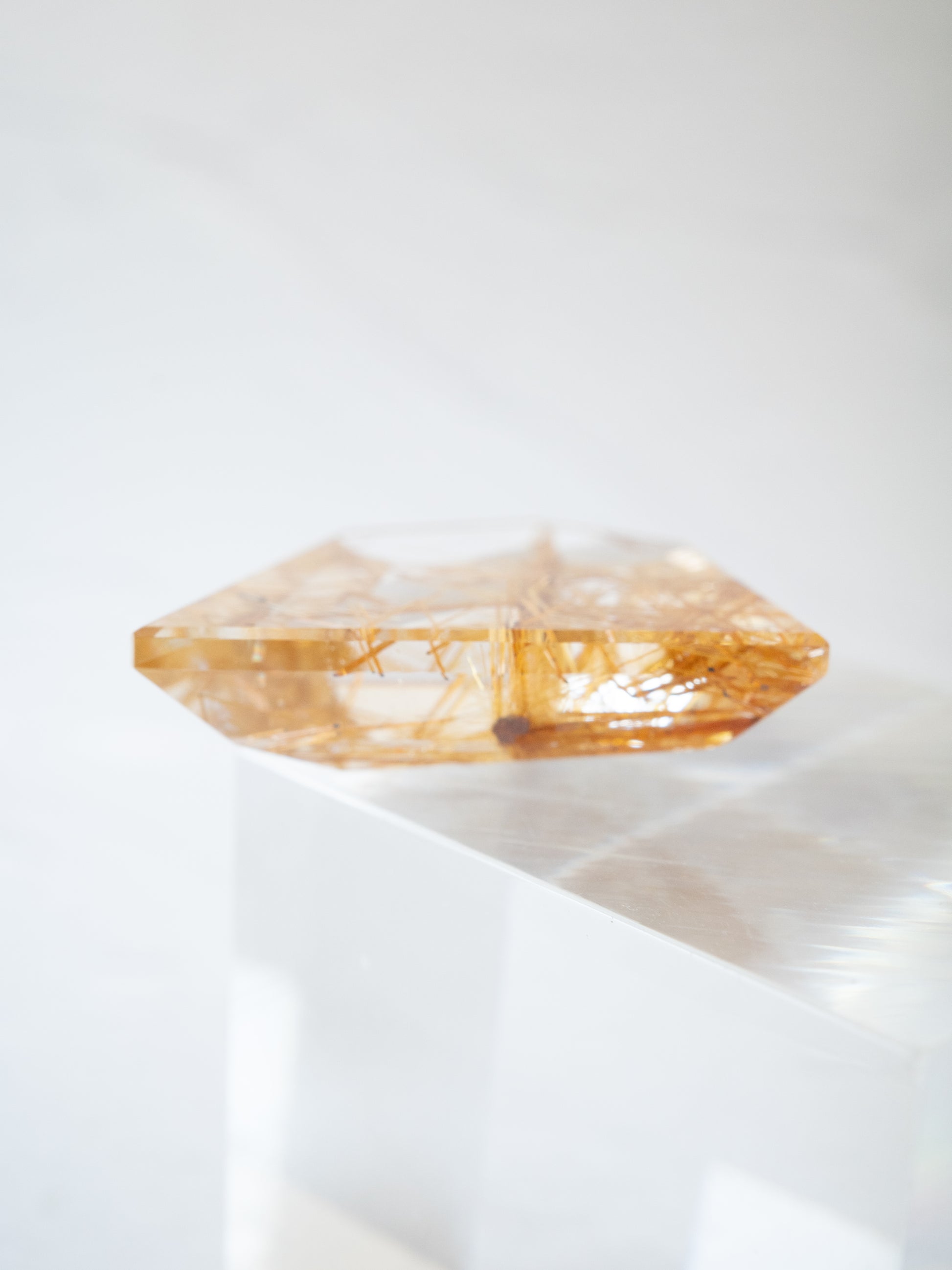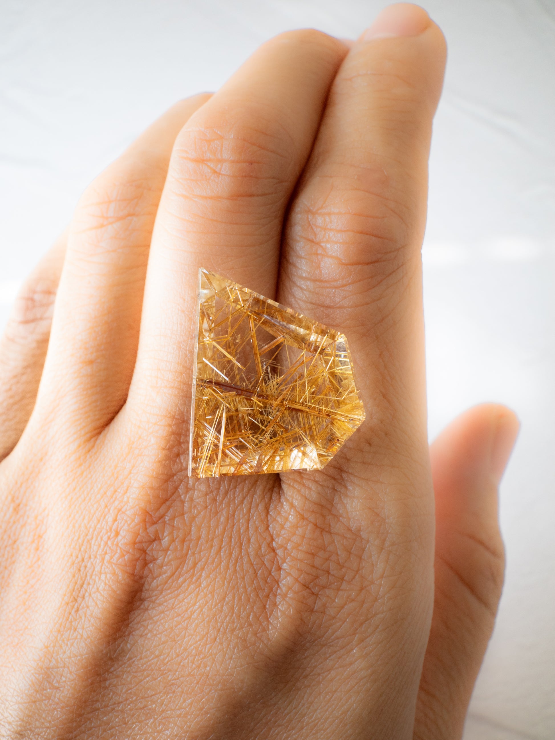 こちらは手磨り研磨師の大城かん奈さんがカットを担当してくださっている、通称『カンナカットシリーズ』。職人としての熟練した技術だけでなく、磨きながら石の個性と対話をし、一つ一つにフォーカスして魅力を引き出す素晴らしいセンスを持ち合わせた研磨師さんです。マニュアル化された研磨方法に囚われないダイナミックなカットは、唯一無二のモダンなフォルムがを生み出します。