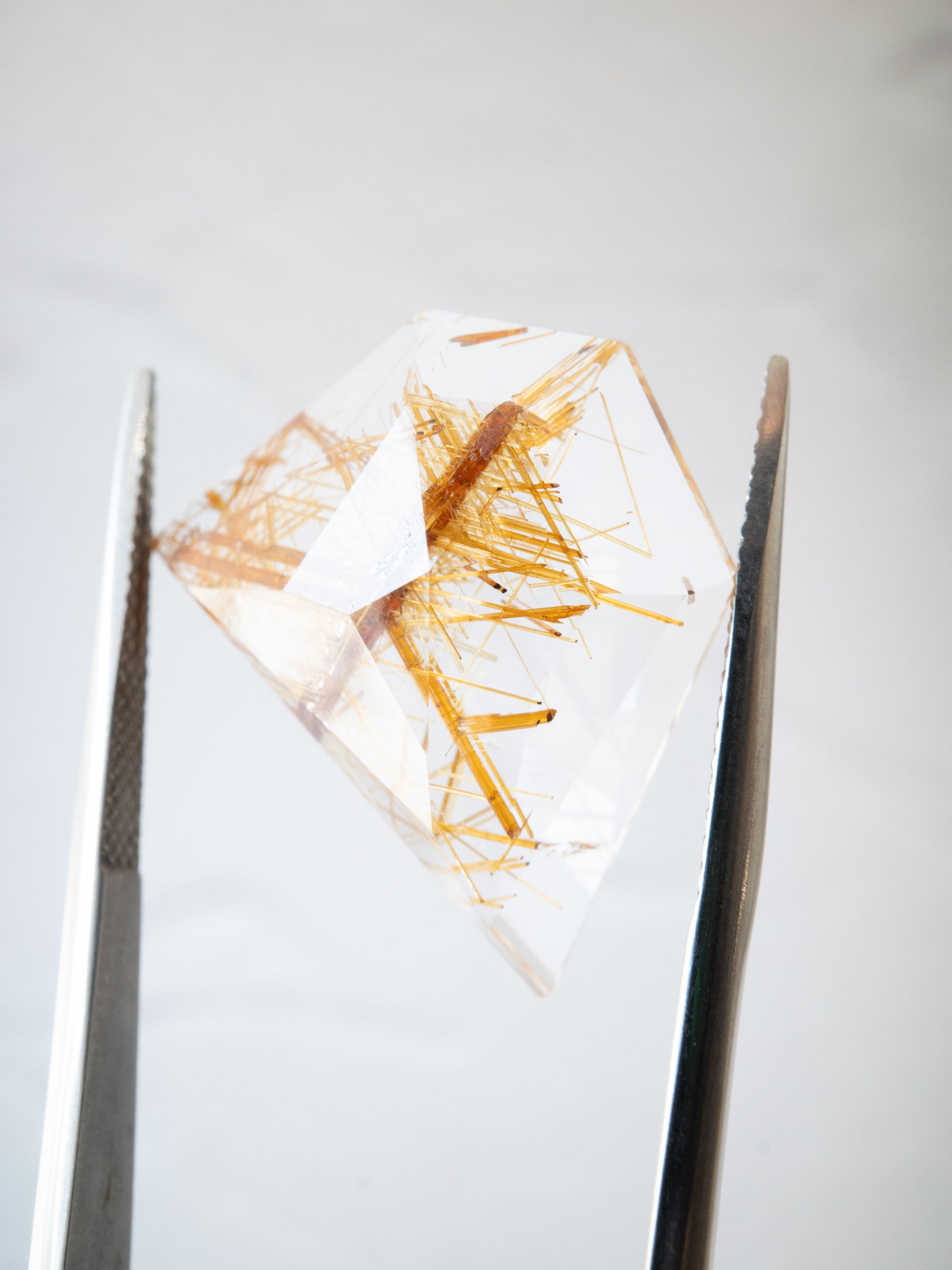 山梨県甲府市に伝統的に伝わる「手磨り」という技法は、高度な器具を使わずに手先の感覚のみで石を研磨していく昔ながらの研磨方法。計算された機械的なカットよりも臨機応変な対応ができるため、インクルージョンの魅力を最大限引き出せる手法でもあります。