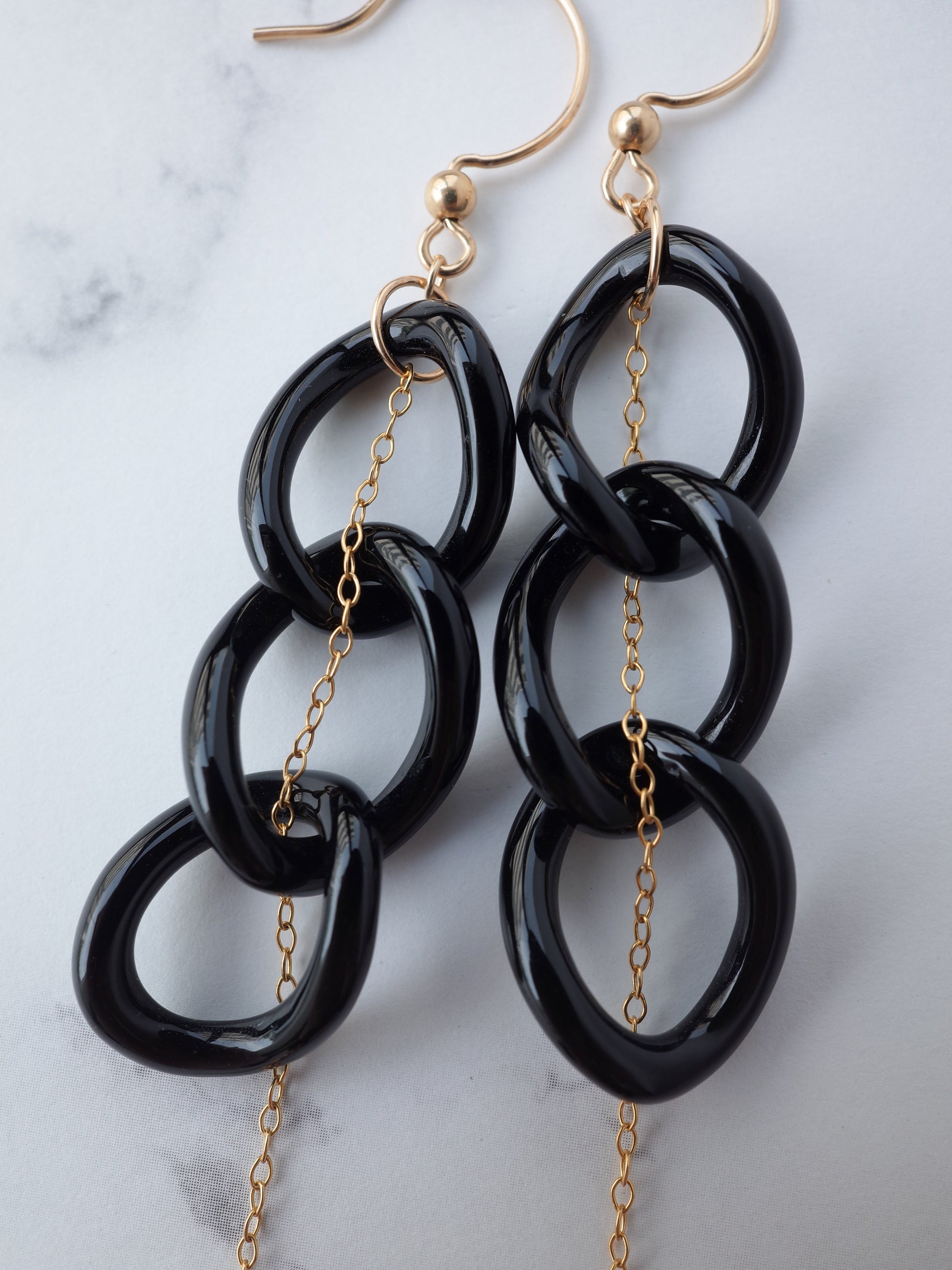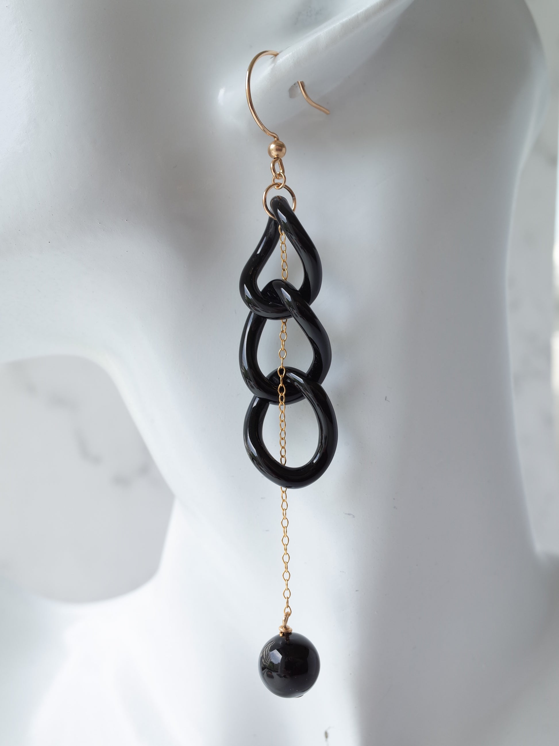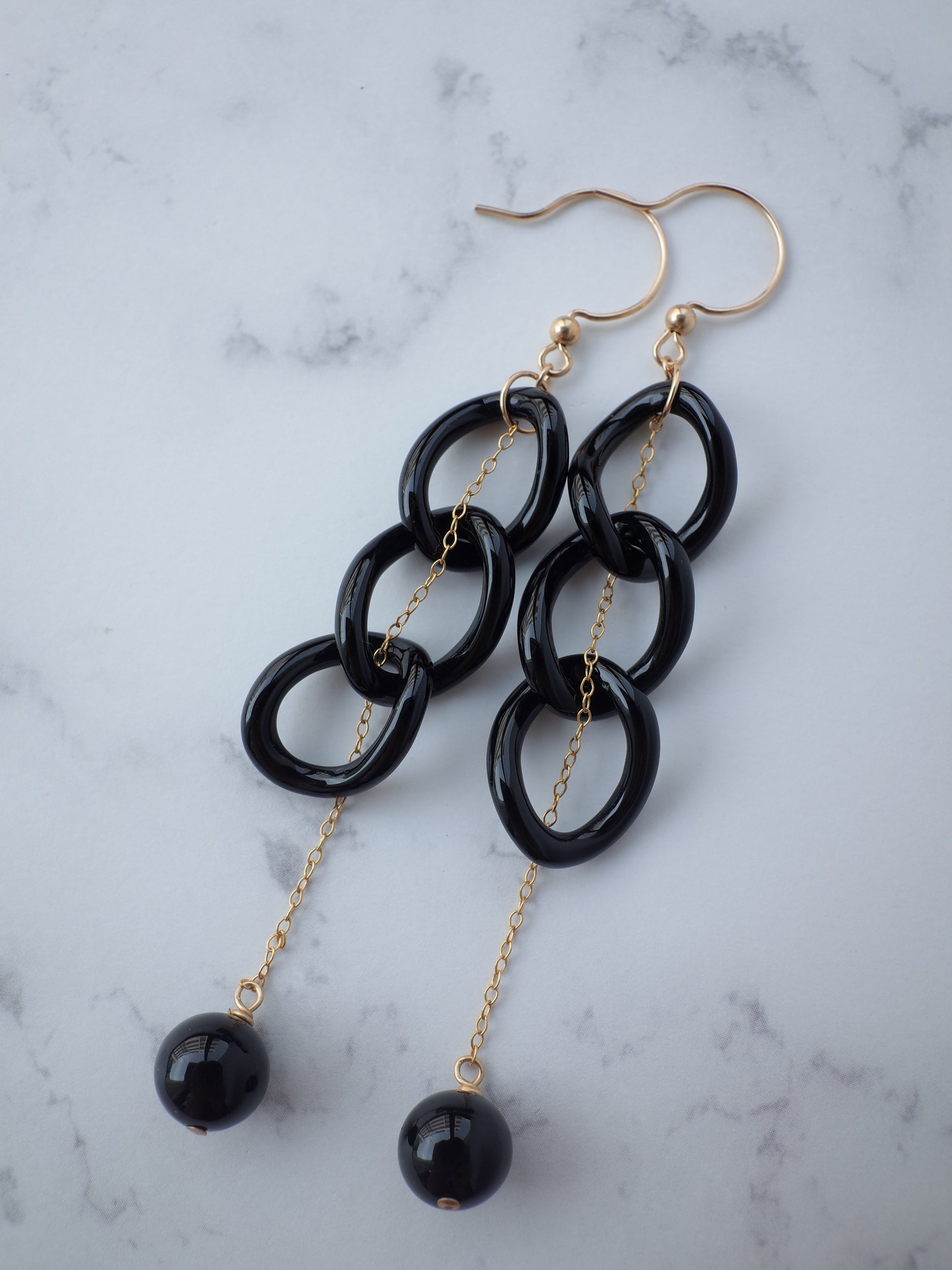 こちらは天然石をつなげた状態で彫り出した『石のチェーン』を使用したピアスです。独立した一つづつの輪をつなげているのではなく、一つの原石から繋がった状態で彫り出す高度な彫刻技法です。同じ素材の丸玉を合わせて、素材を活かしたピアスに仕立てました。是非職人の高い技術を、日々の装いの中の取り入れてみてください。