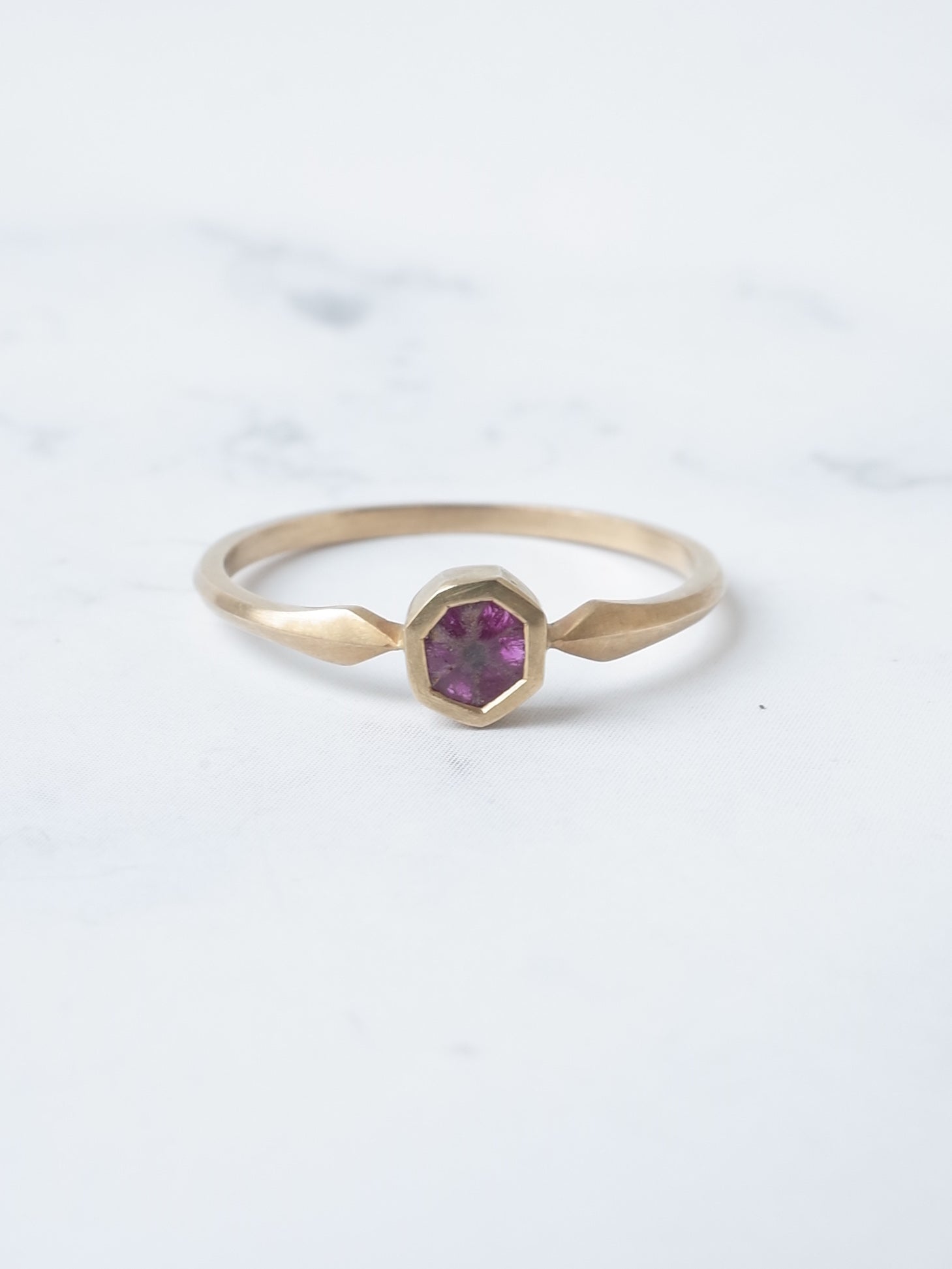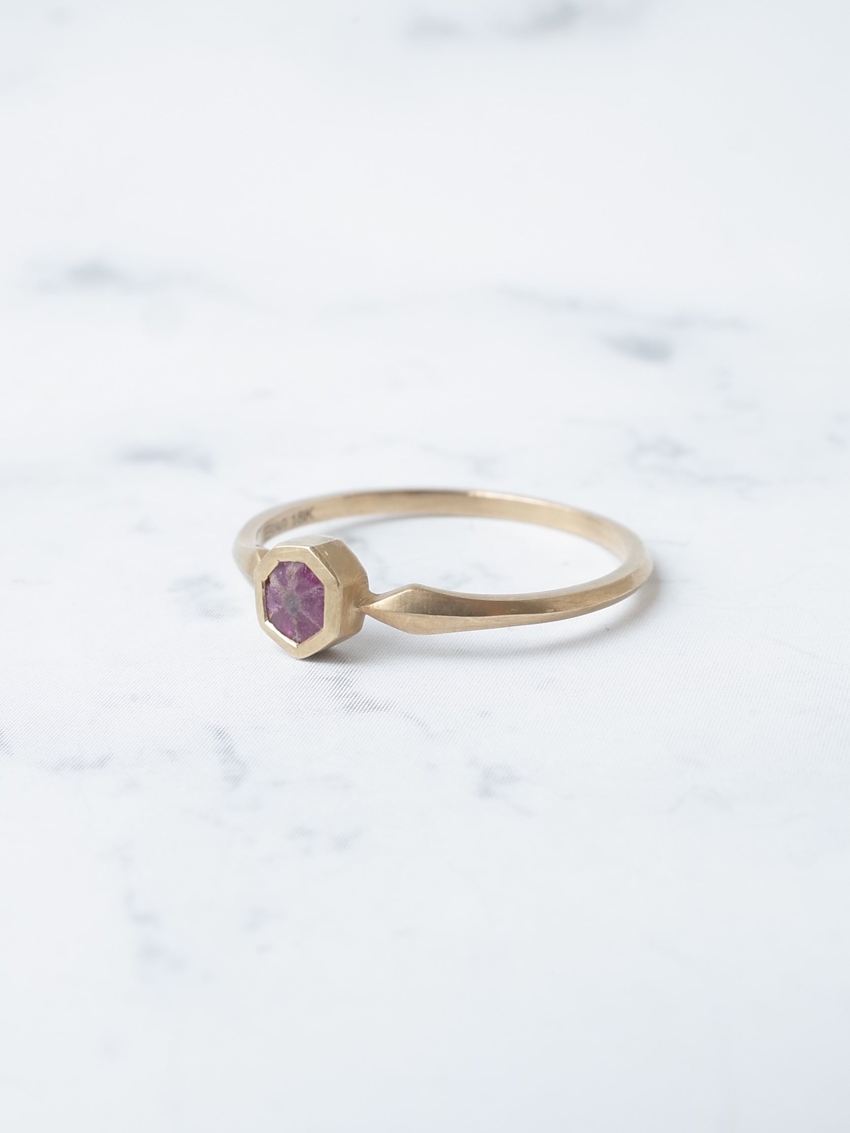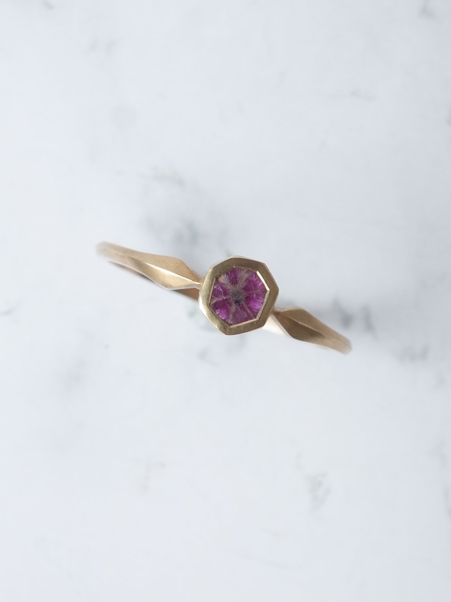 ミャンマーモゴック産の発色のよりトラピッチェルビー。まるでお花のような模様を是非お楽しみください。