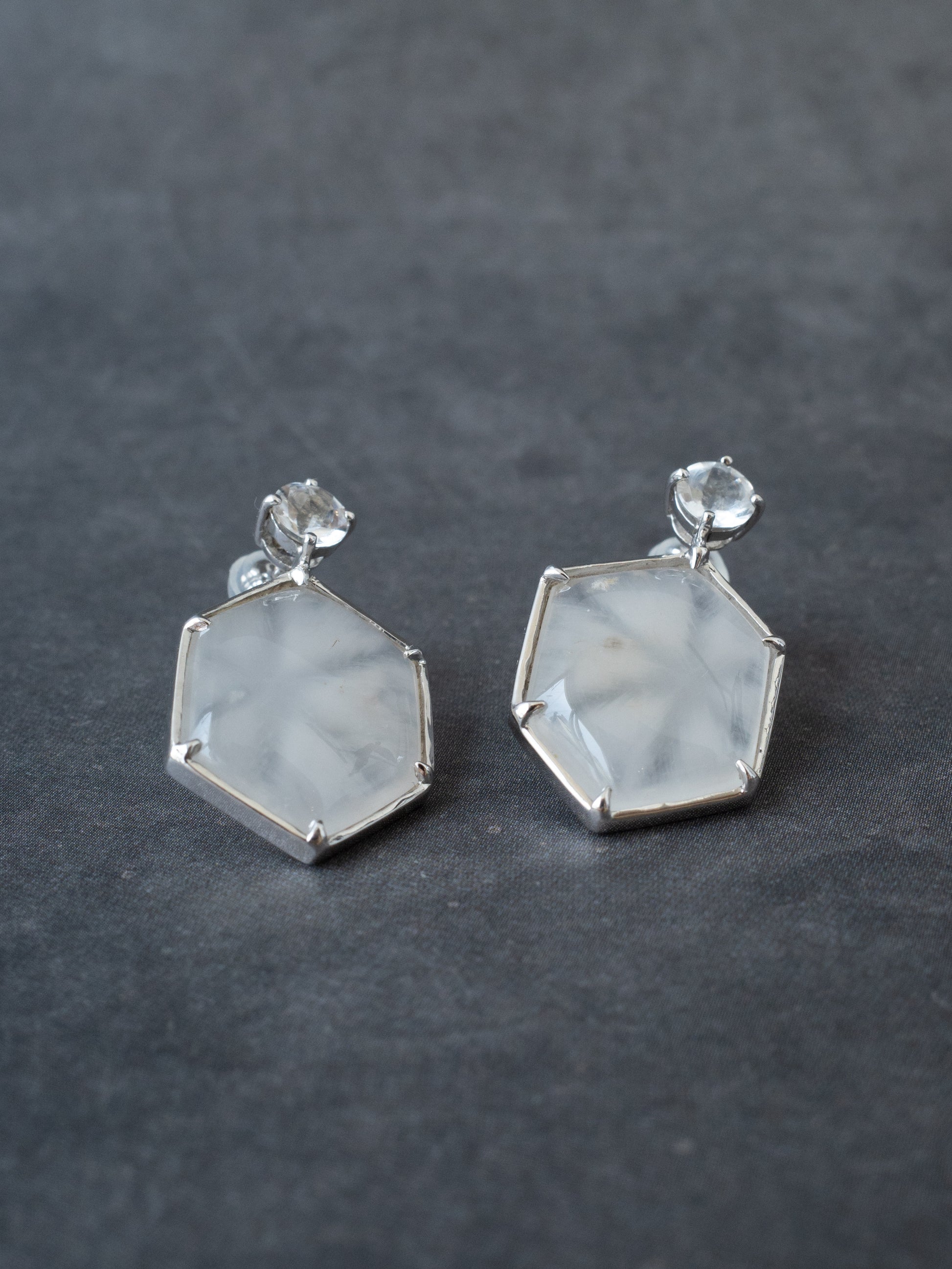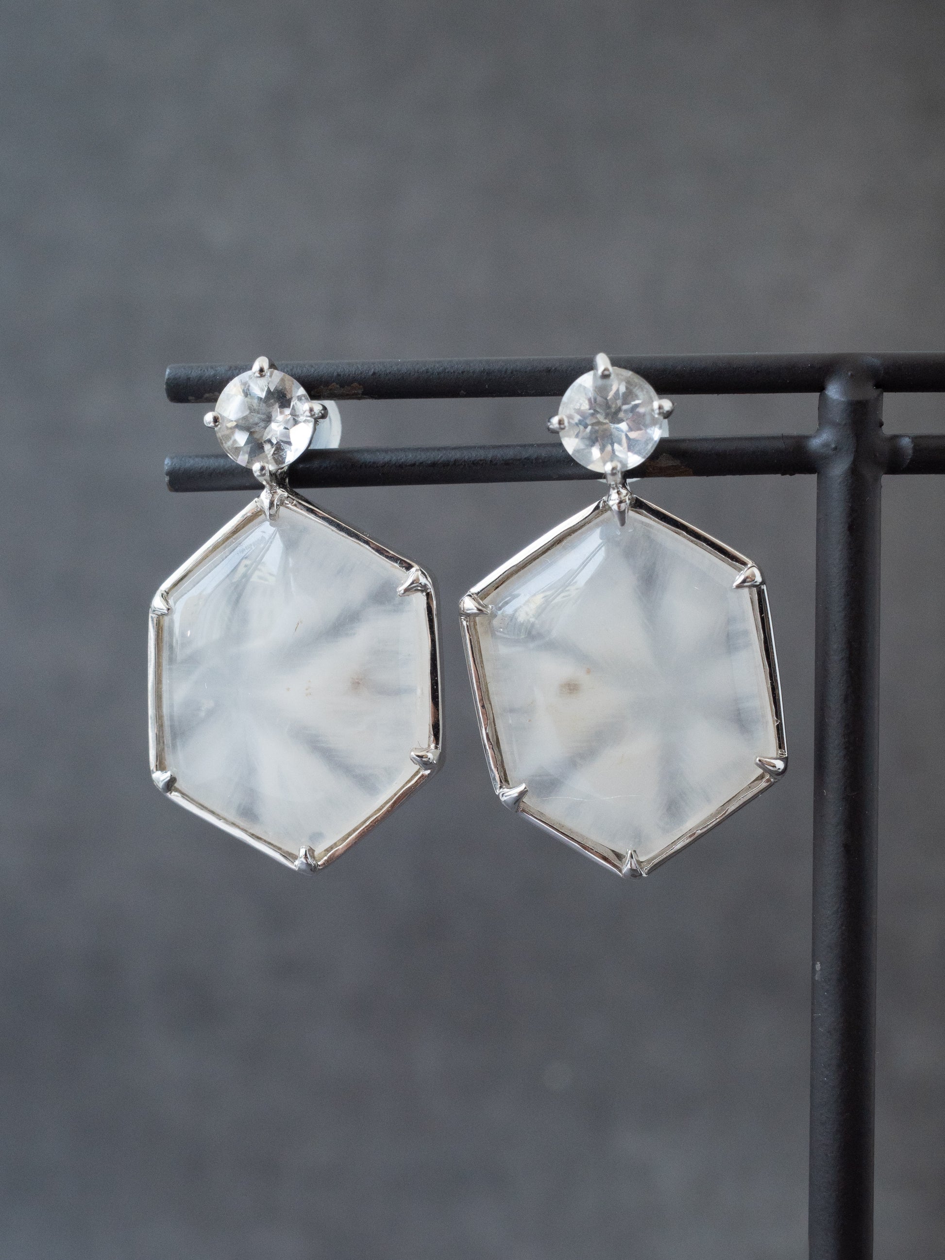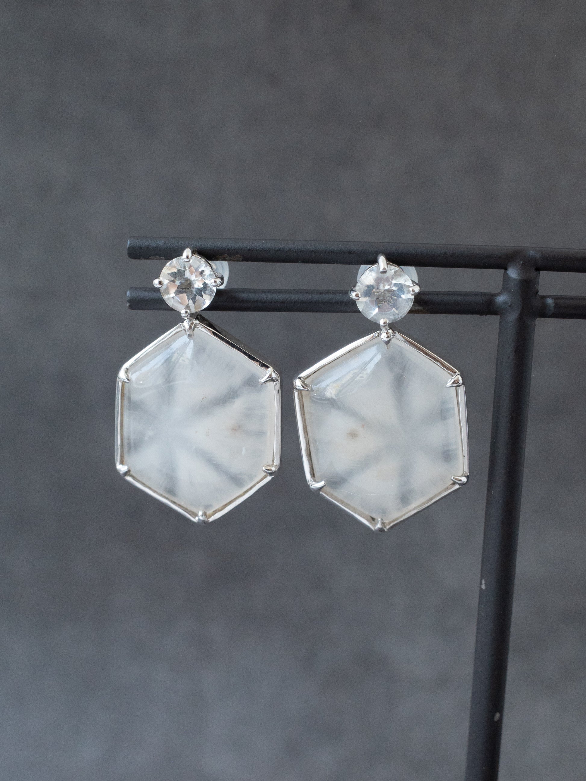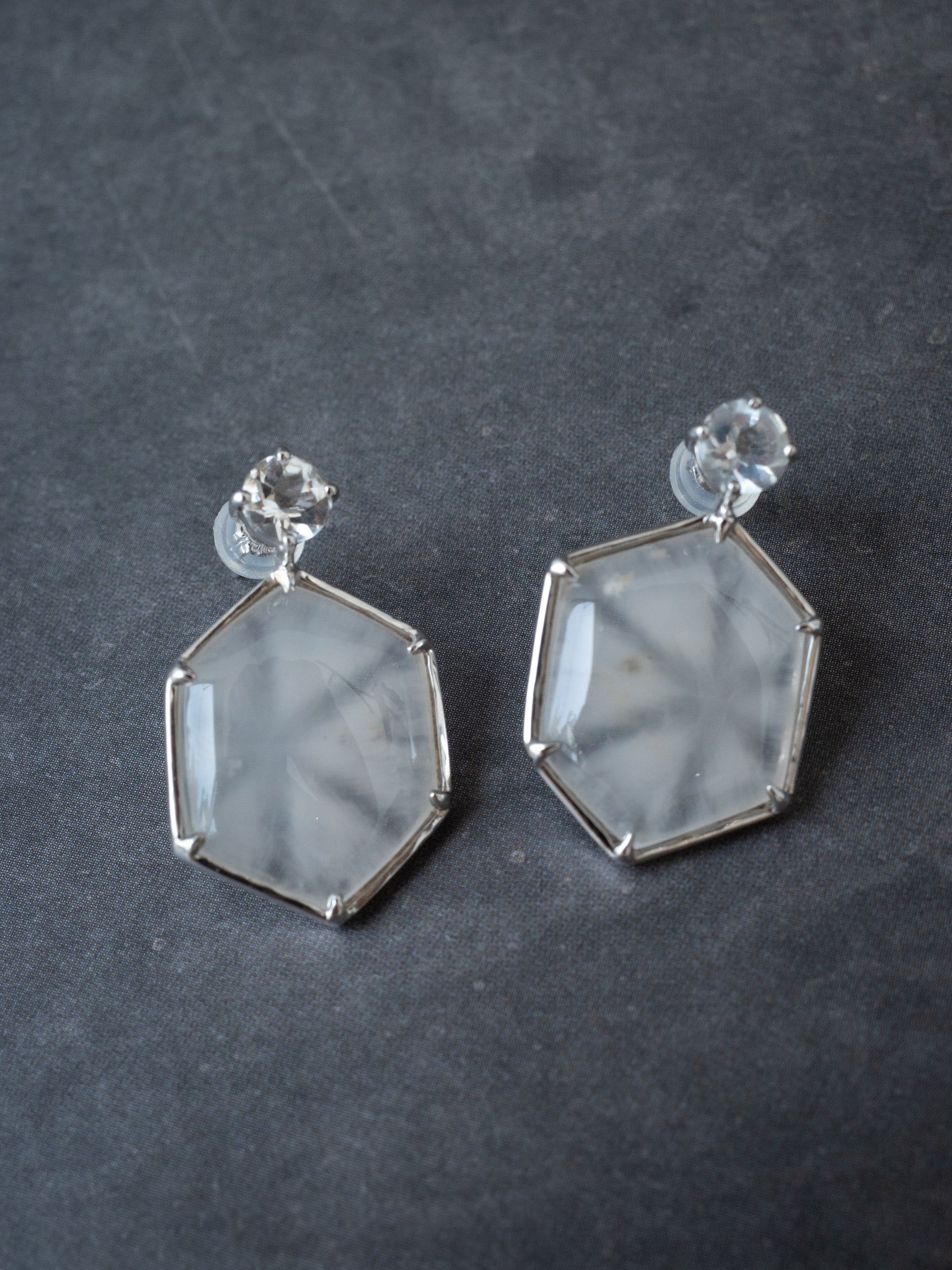 雪の結晶トラピッチェクォーツのスタッドピアス