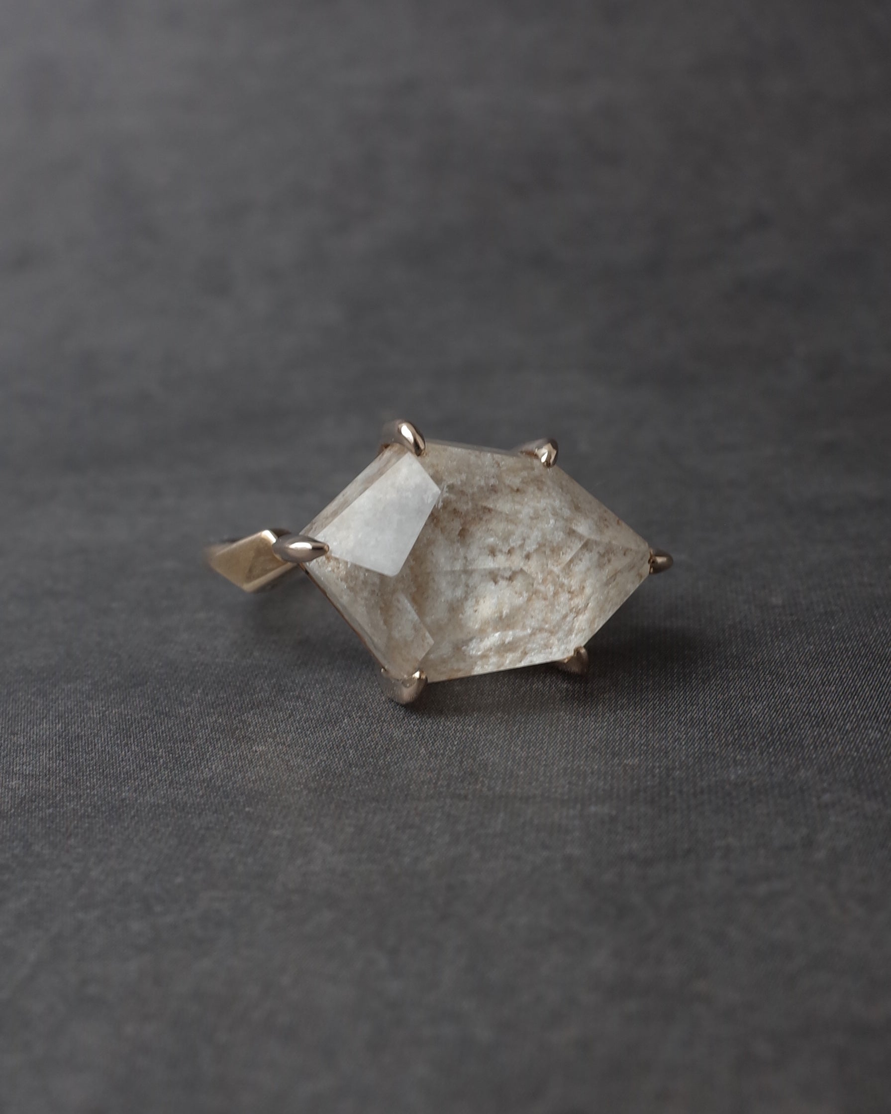 こちらは若手研磨師の大城かん奈さんがファセットを施してくださっている、通称『カンナカットシリーズ』。ランダムなカットによる反射の面白さとモダンなフォルムが魅力のコレクションです。