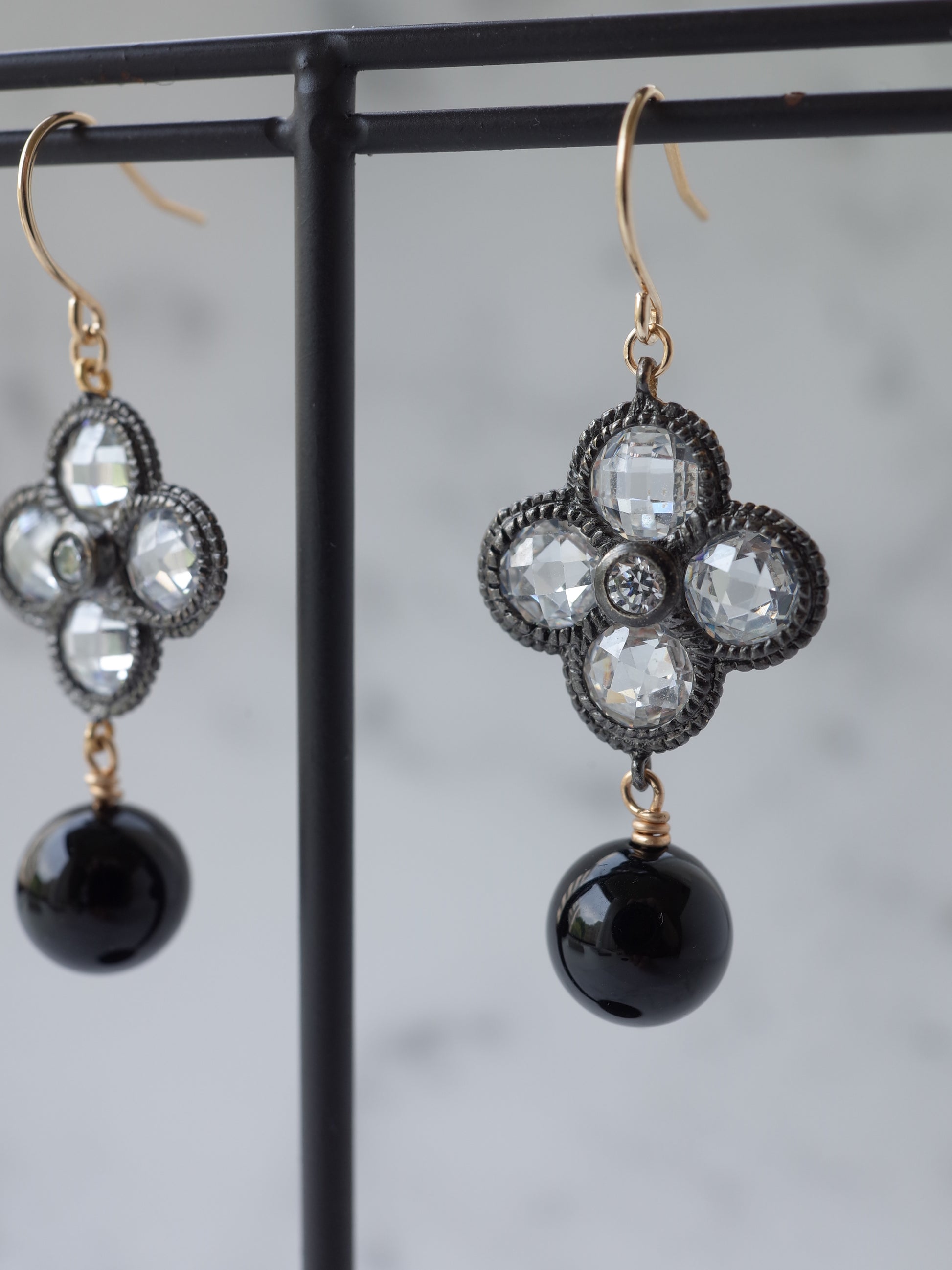 ホワイトトパーズとオニキスのフラワーピアス